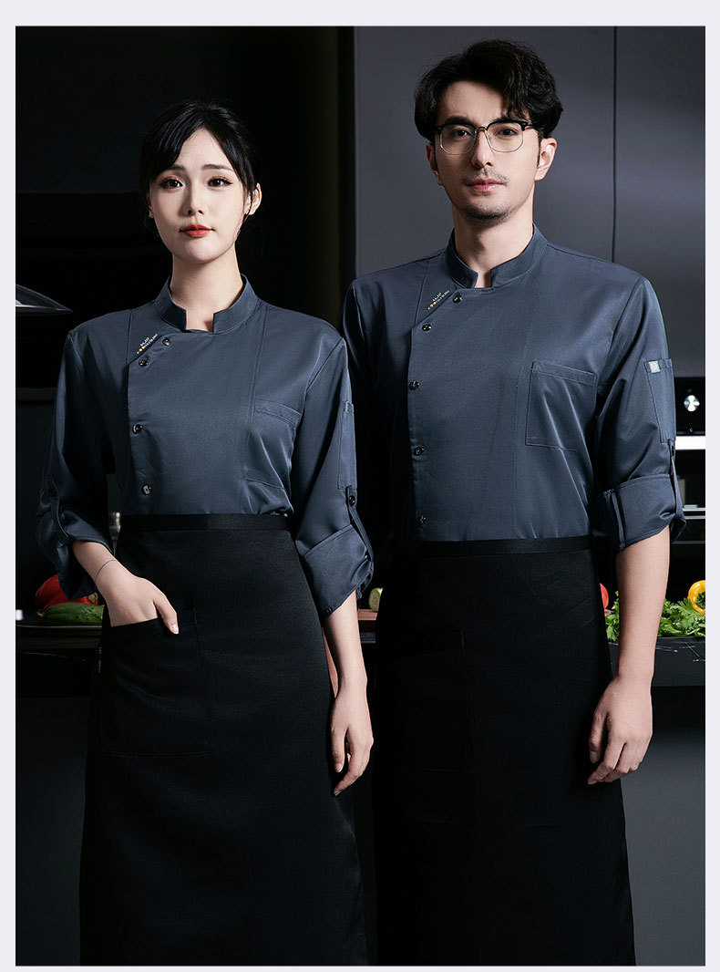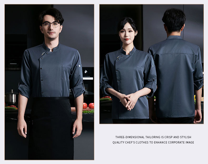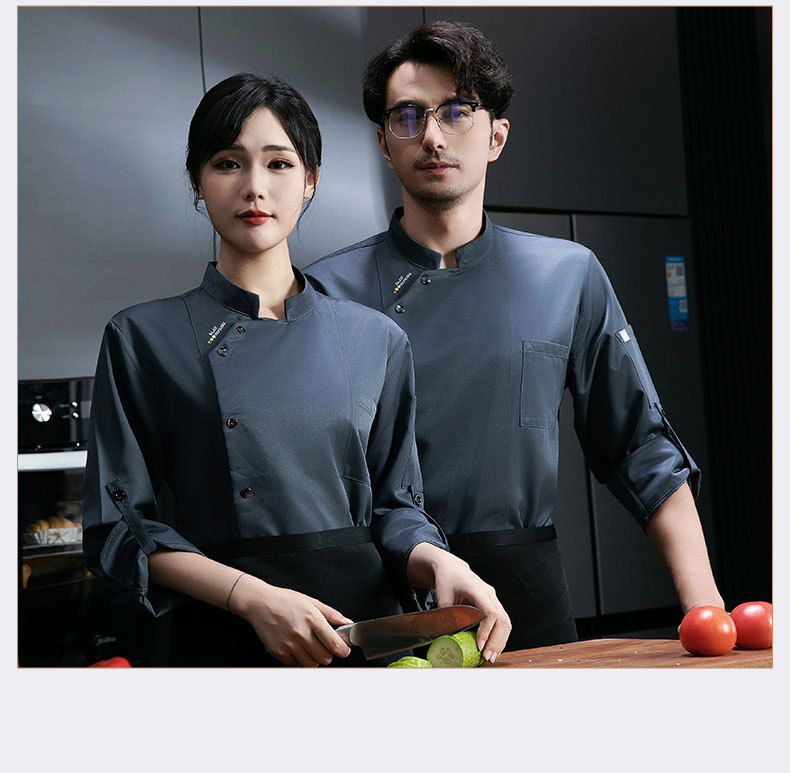 时尚潮流高端灰色厨师工作服长袖秋冬季高档厨师服装厨衣西餐logo