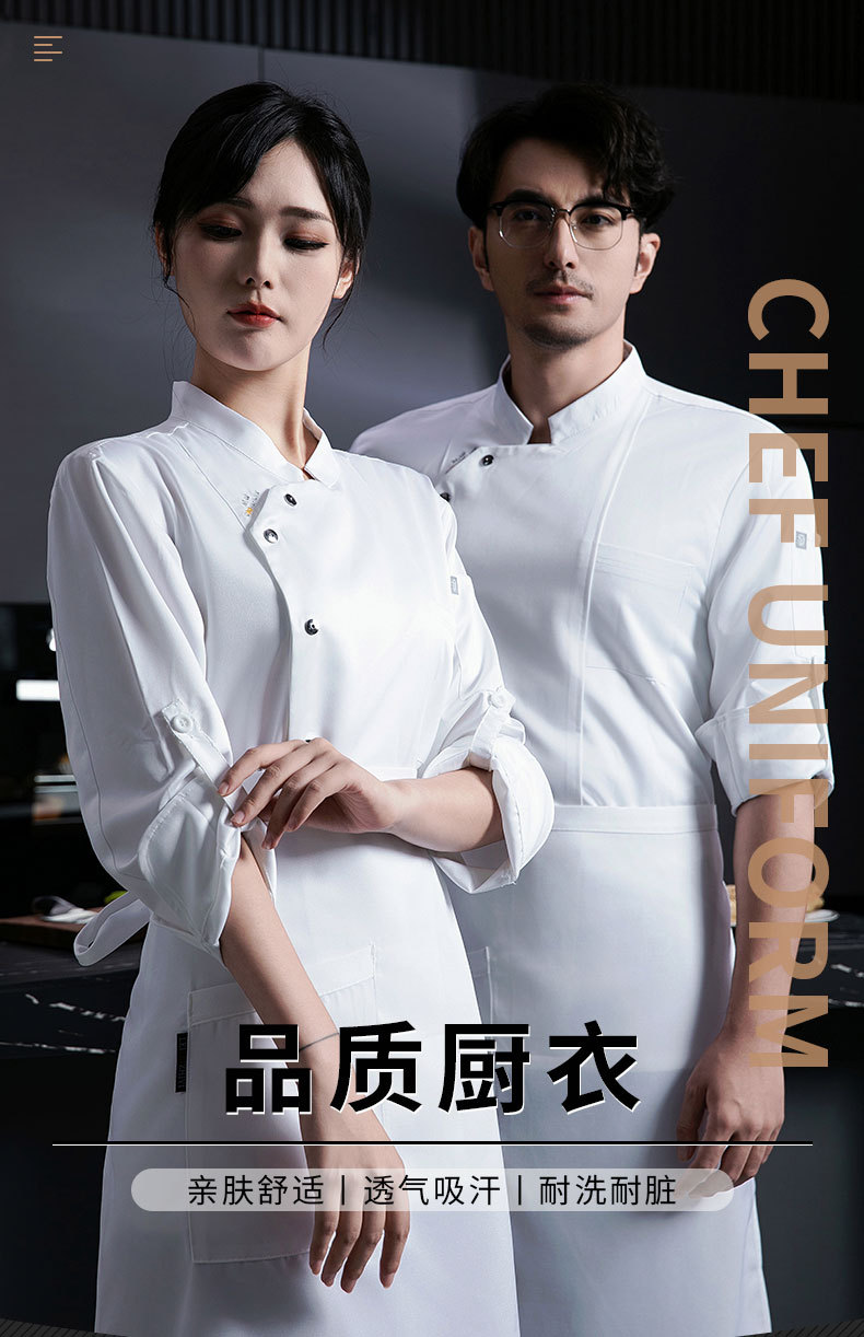 高档餐厅餐饮厨师工作服长袖男女酒店食堂后厨秋冬厨师服工装西餐