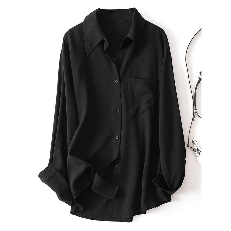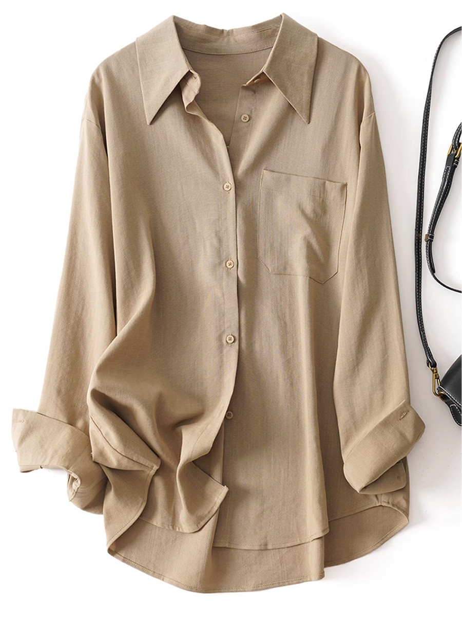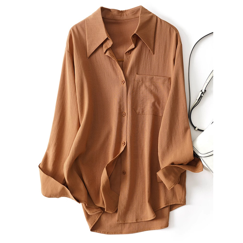 실키 피부 리프팅 가을 새로운 포인팅 칼라 DU 특수 캐주얼 셔츠 느슨한 긴 소매 셔츠