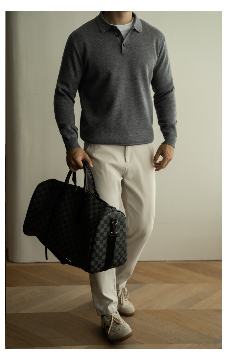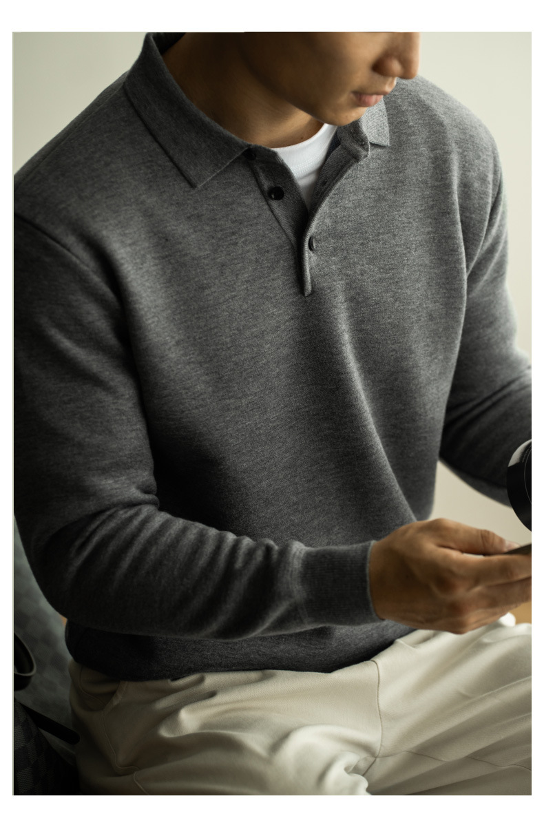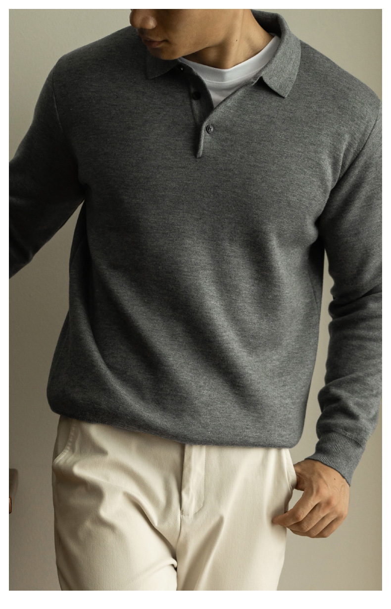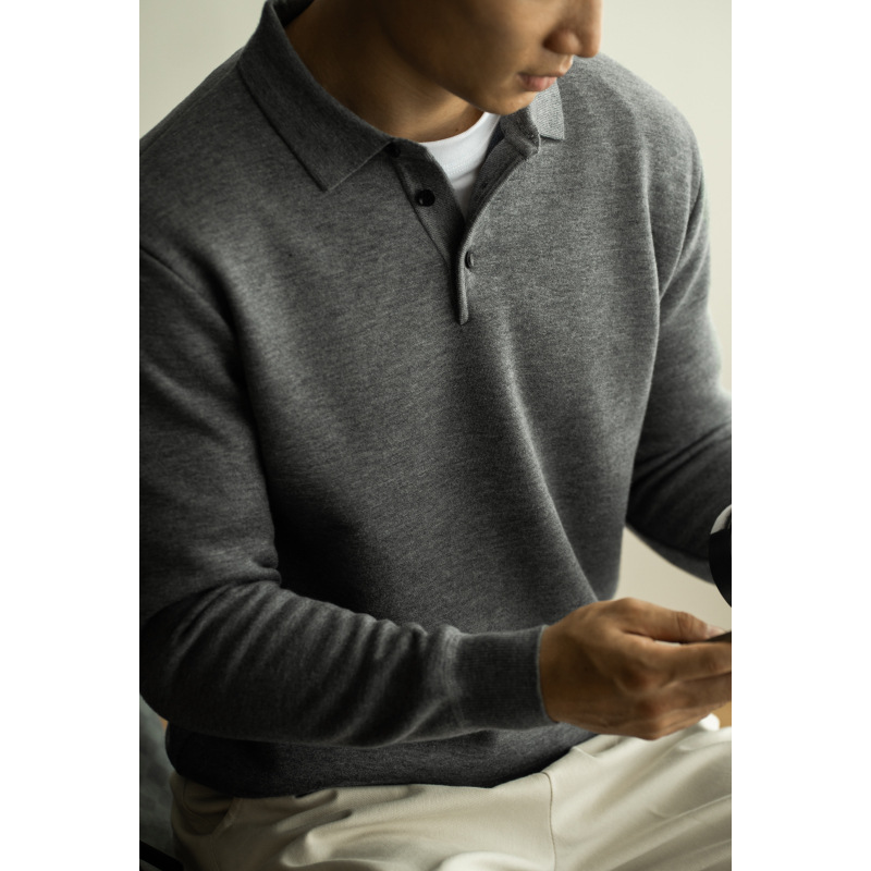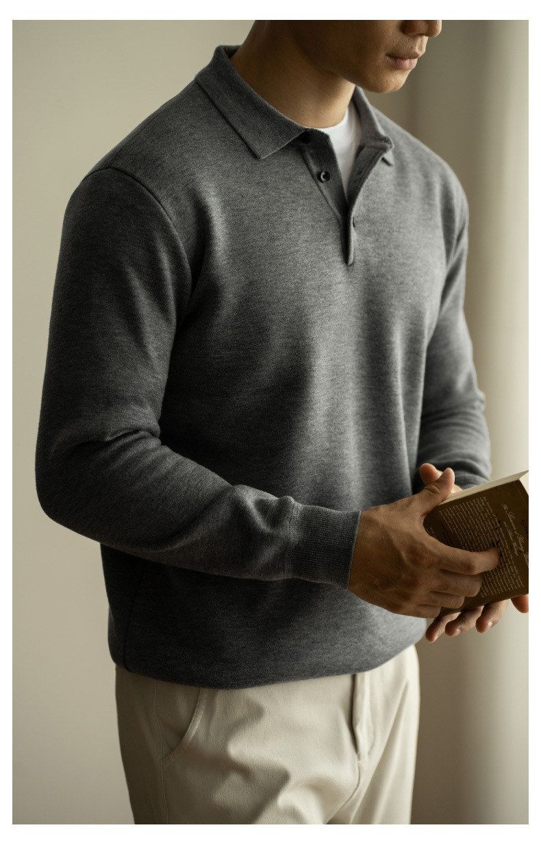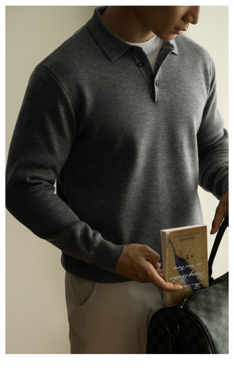SONGNAN 단색 플리스 슬림핏 긴팔 폴로 셔츠 남성용 2025 봄 신상품 라이트 비즈니스 캐주얼 카라스토어 가기