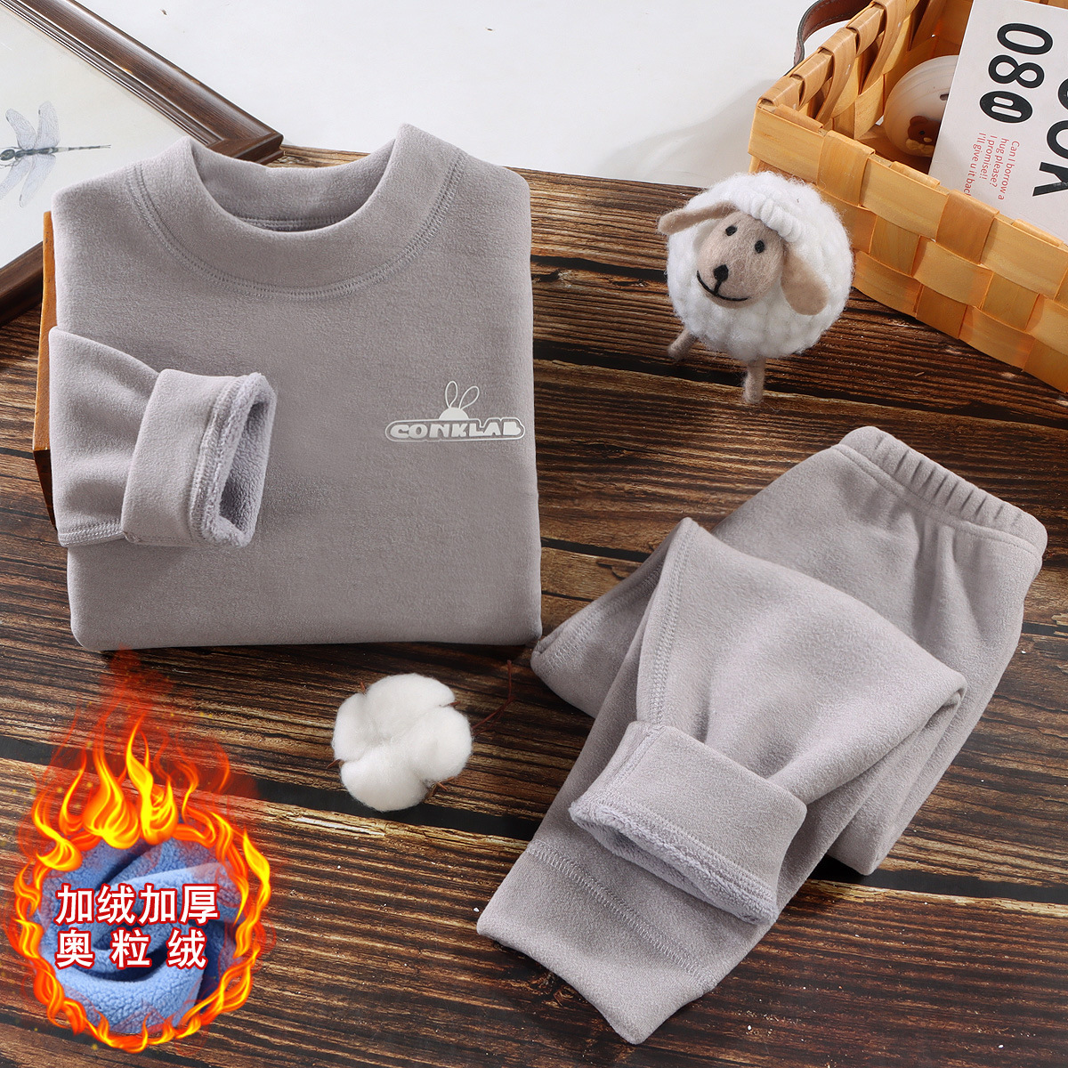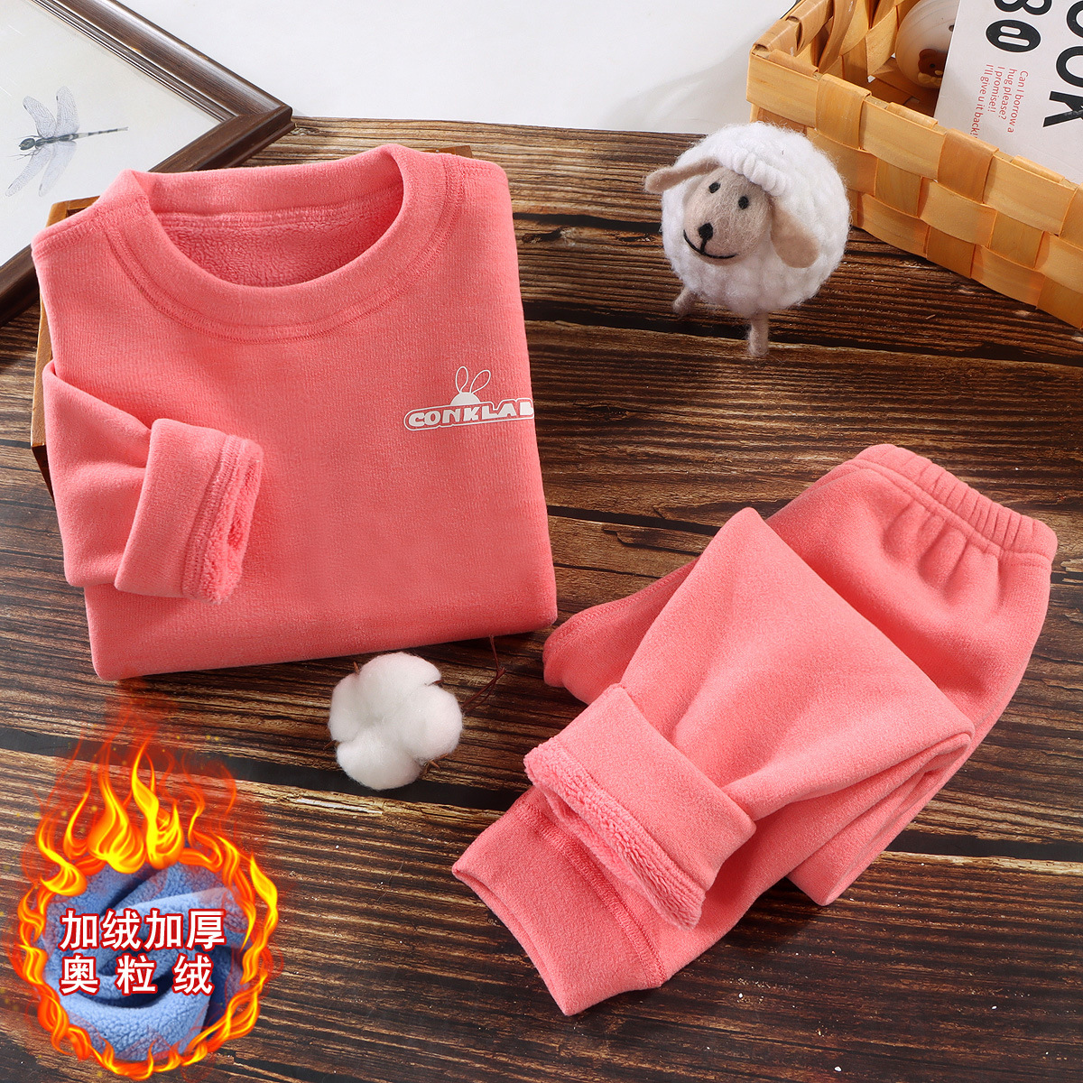 어린이 열 속옷 세트 아기의 올림픽 곡물 벨벳 두꺼운 가을 옷 가을 바지 큰 어린이 뼈 없는 기모 가을과 겨울 잠옷