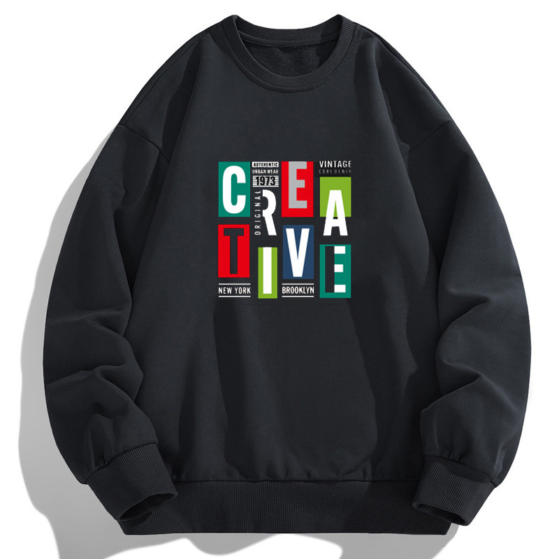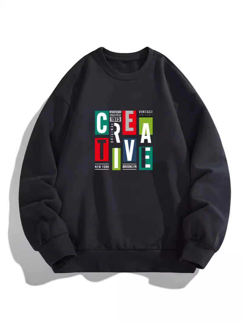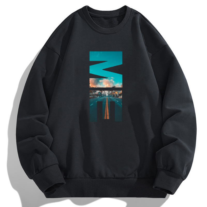 크로스보더 대형 남성용 스웨트셔츠 프린트 트렌디 티셔츠, 라운드넥 루즈핏 캐주얼 긴팔 스웨트셔츠 캐주얼 풀오버스토어 가기