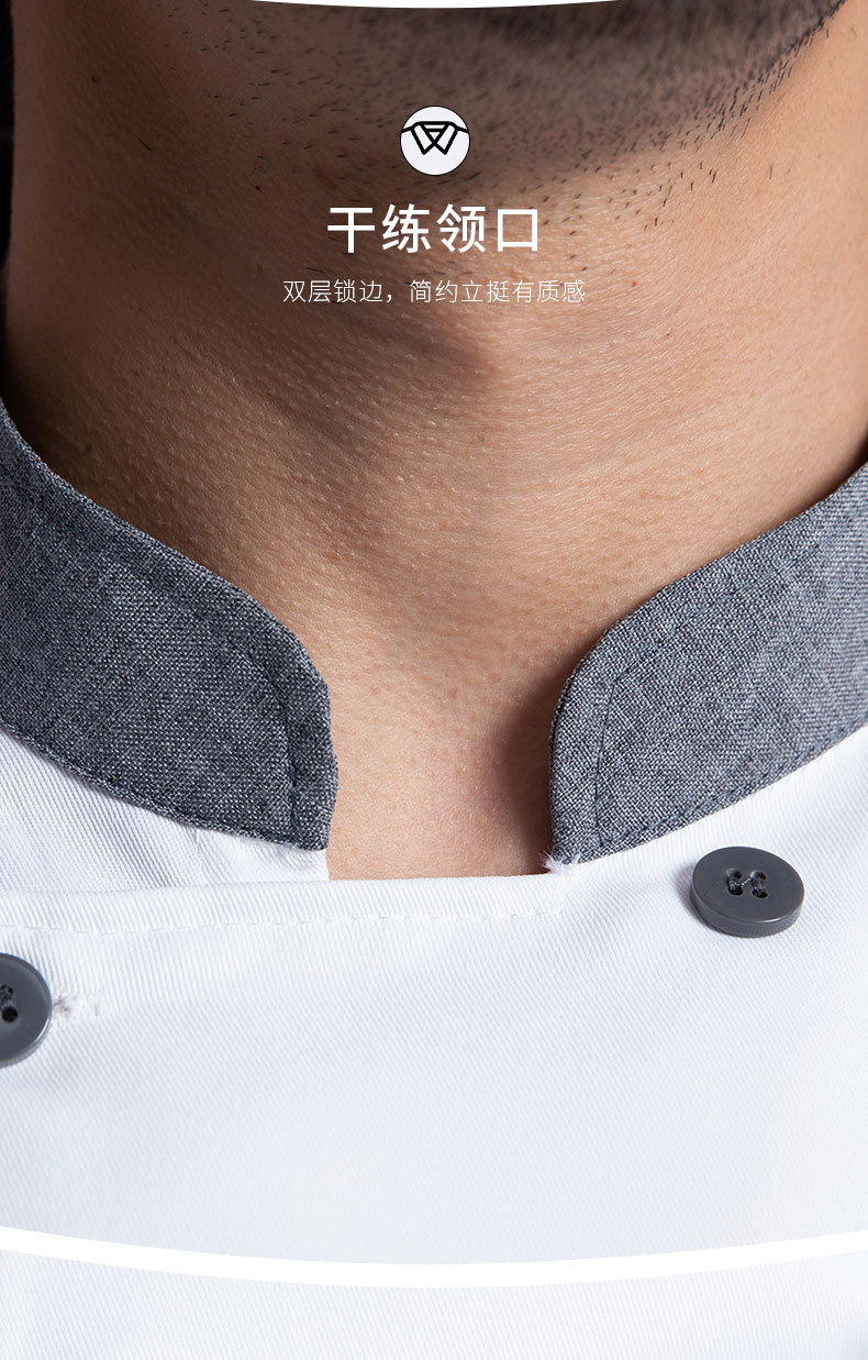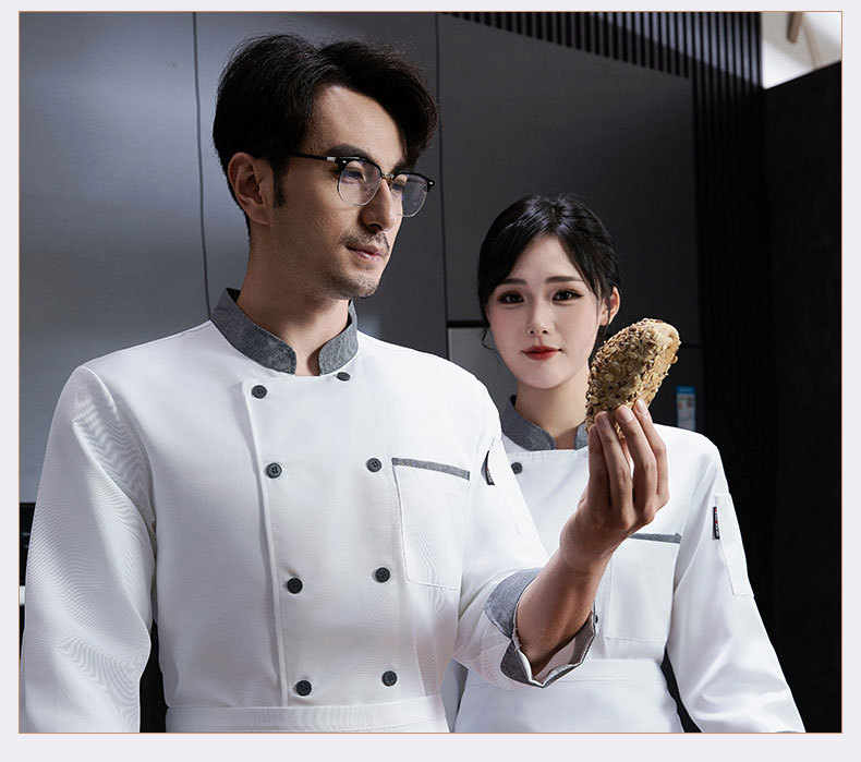 时尚潮流高端灰色厨师工作服长袖秋冬季高档厨师服装厨衣西餐logo