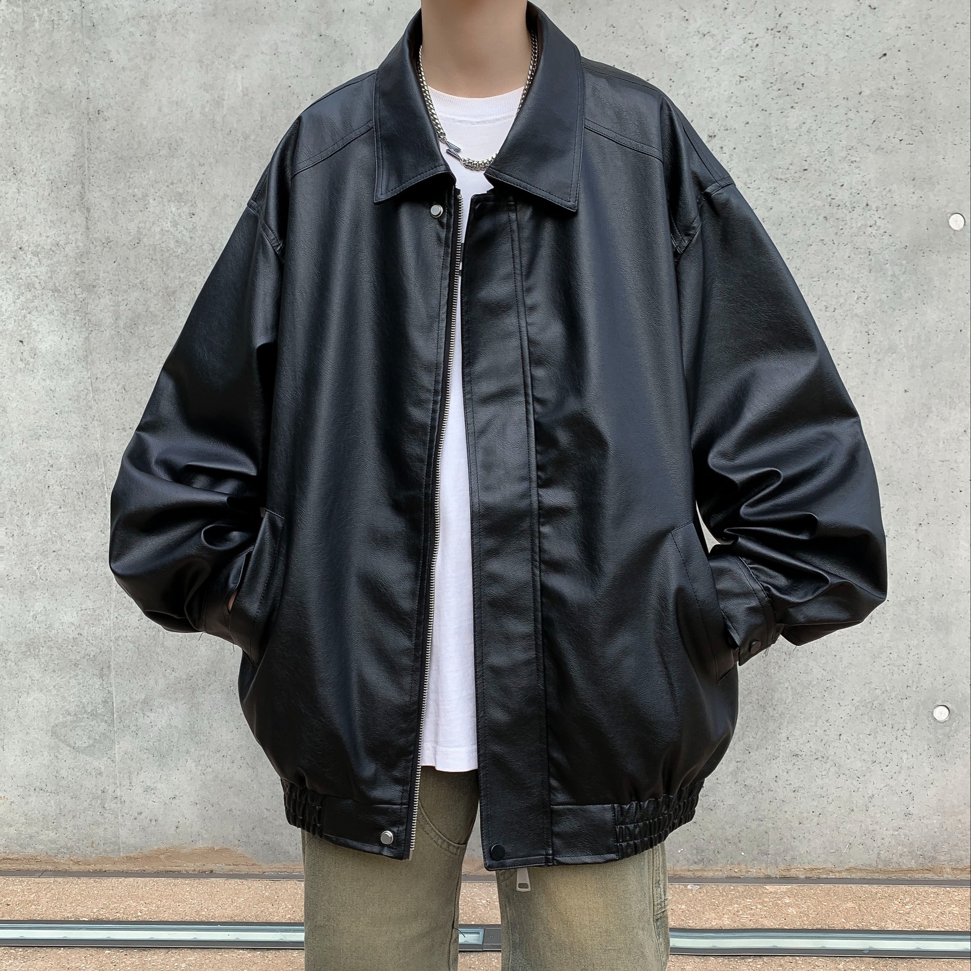 가을 2024 새로운 미국 빈티지 오토바이 카메라 가죽 하이 퀄리티 더블 가죽 남자의 느슨한 유행 거리