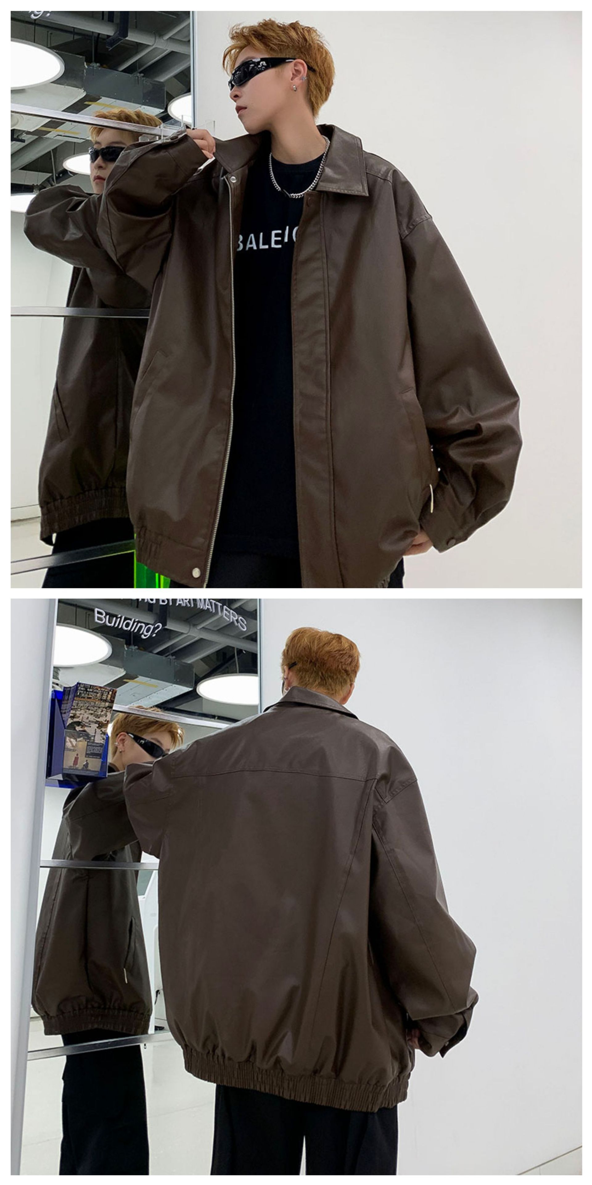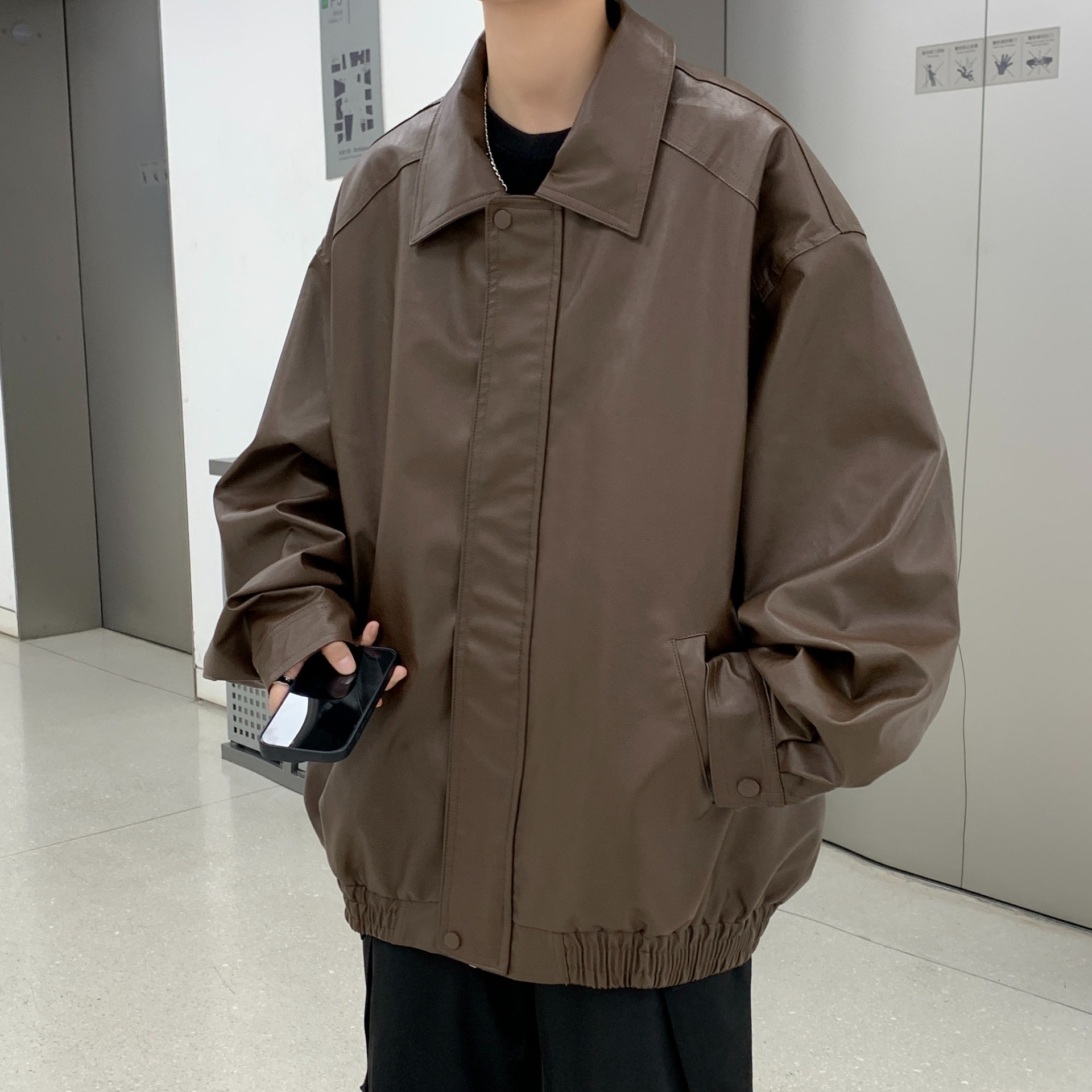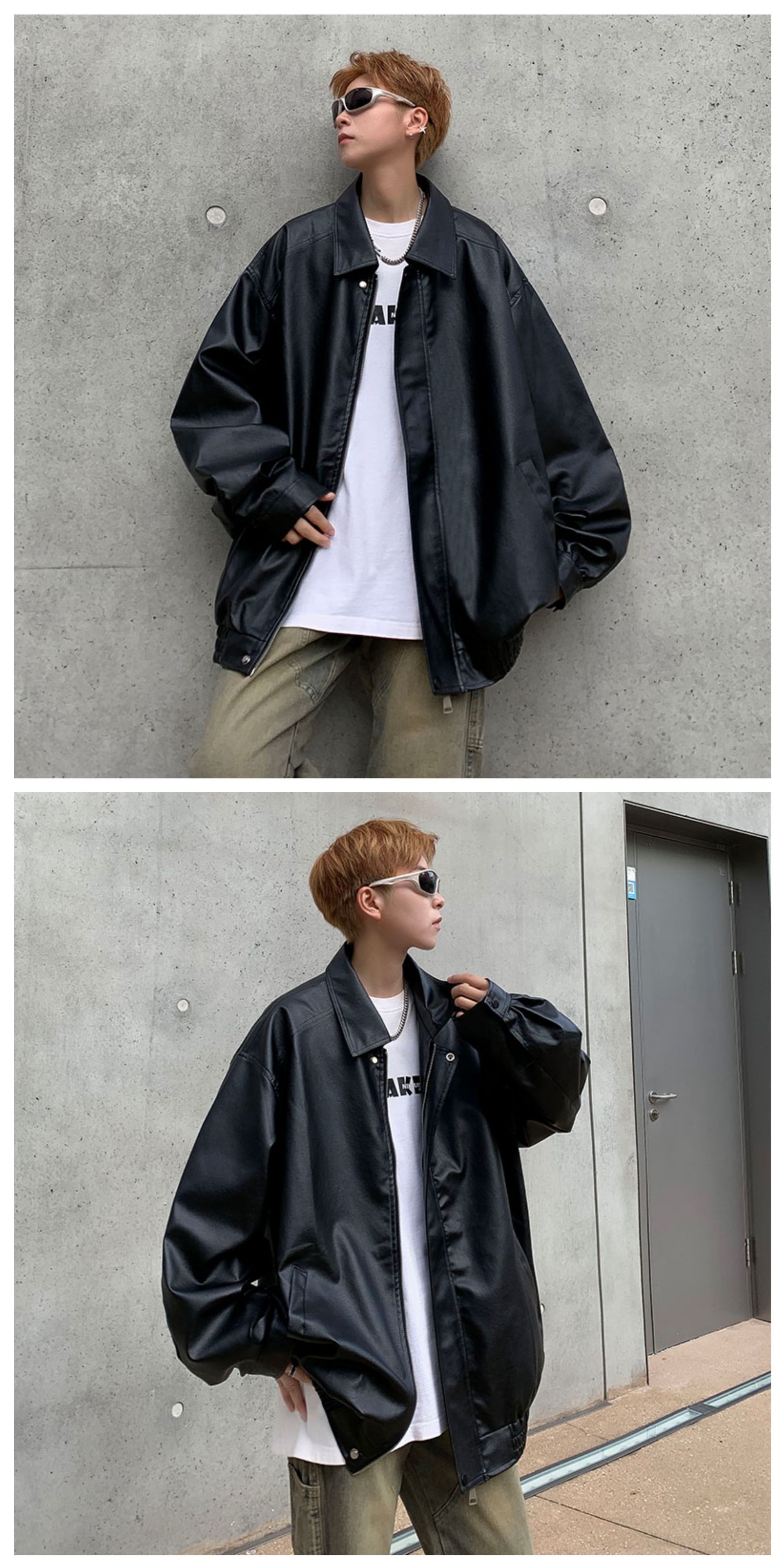 가을 2024 새로운 미국 빈티지 오토바이 카메라 가죽 하이 퀄리티 더블 가죽 남자의 느슨한 유행 거리스토어 가기