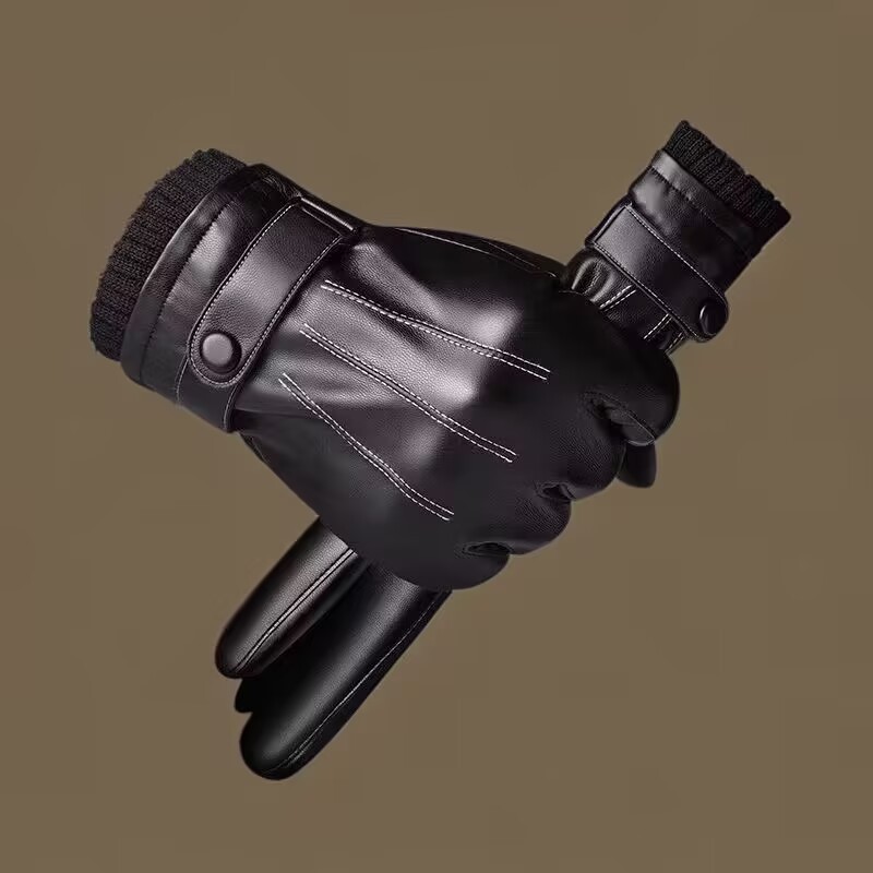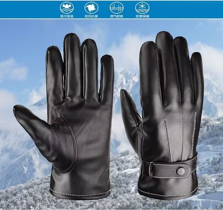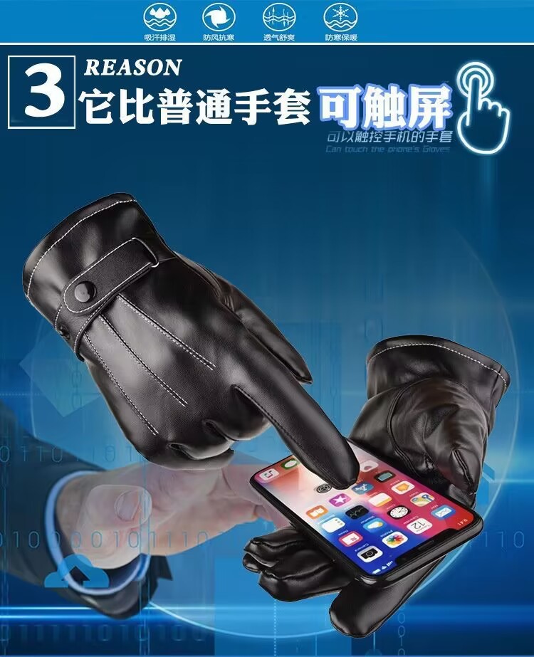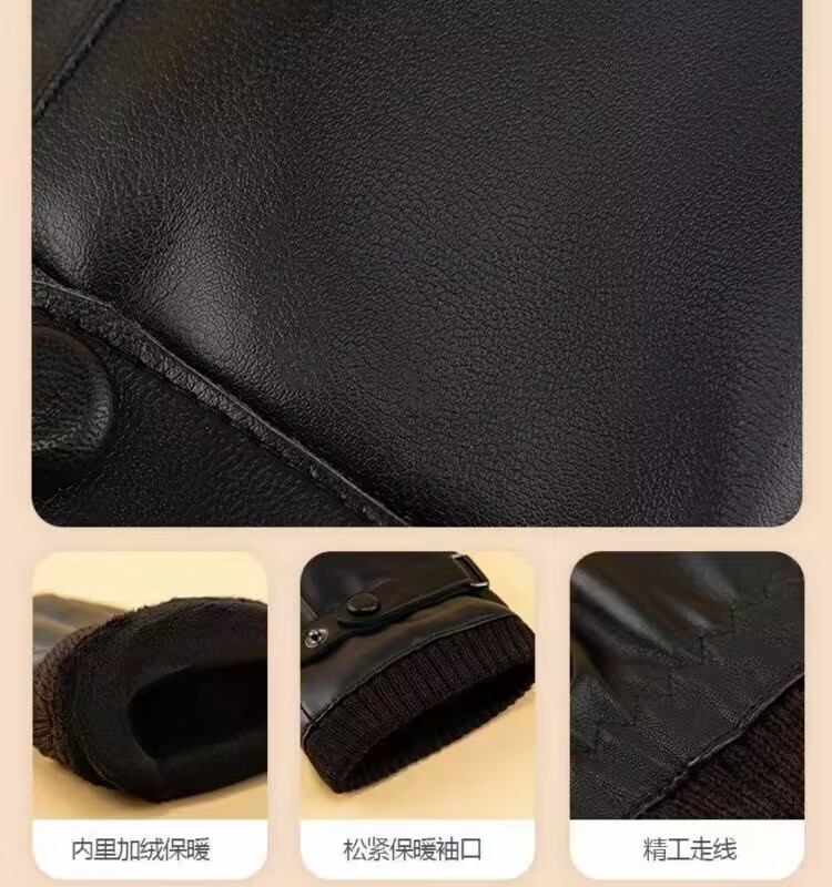 터치 스크린 PU 가죽 장갑 남성 PU 가을과 겨울 한국 사이클링 모조 가죽 기모 따뜻한 여성 스키 장갑 도매