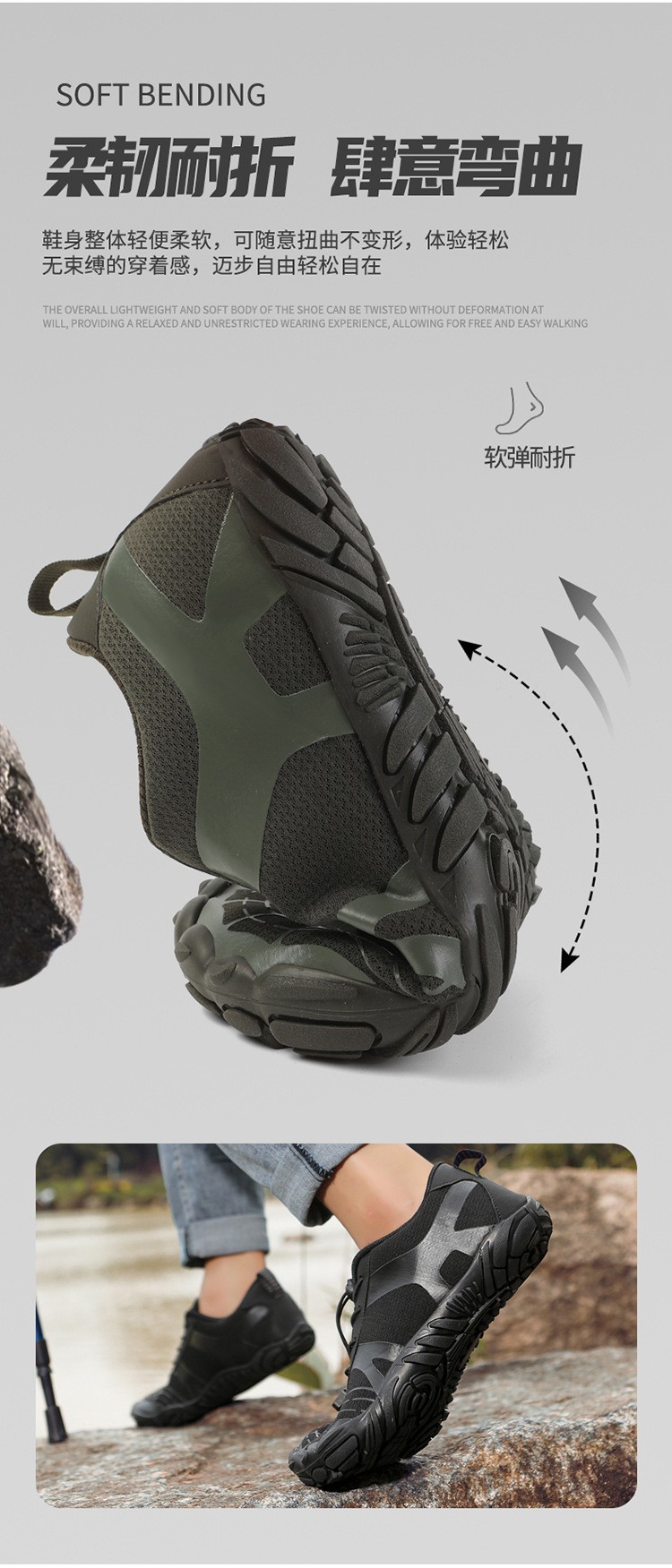 5 개의 손가락 신발 추적 신발 국경 간 새로운 하이킹 신발 플러스 사이즈 하이킹 암벽 등반 신발 컷 방지 미끄럼 편안한 경량 두껍게