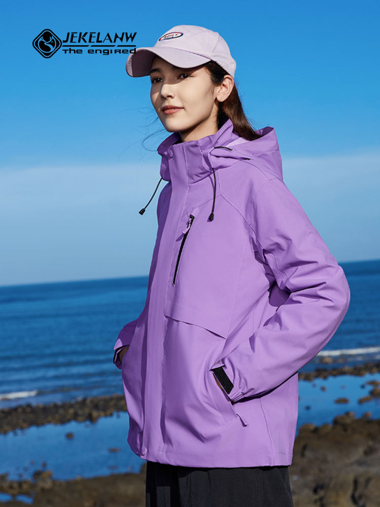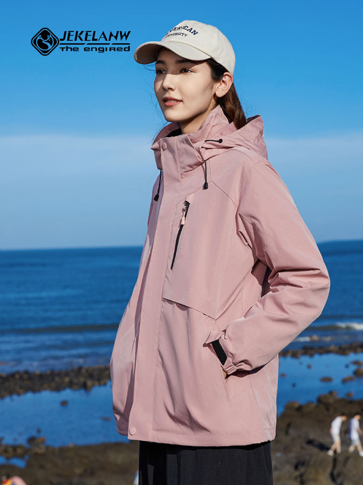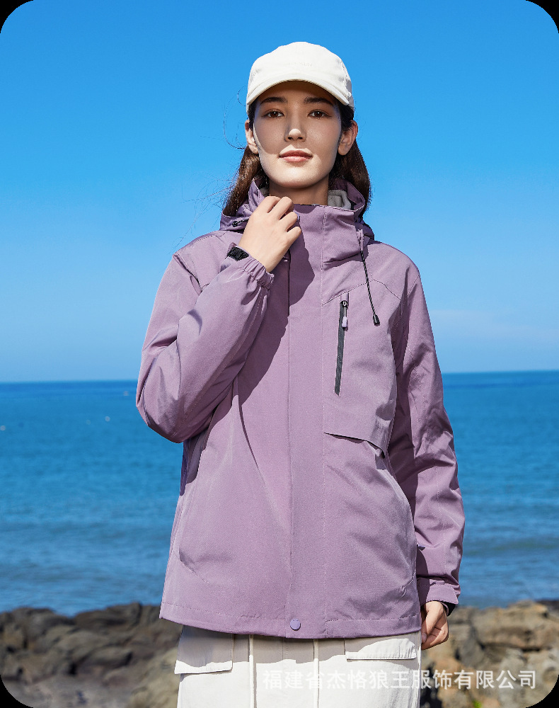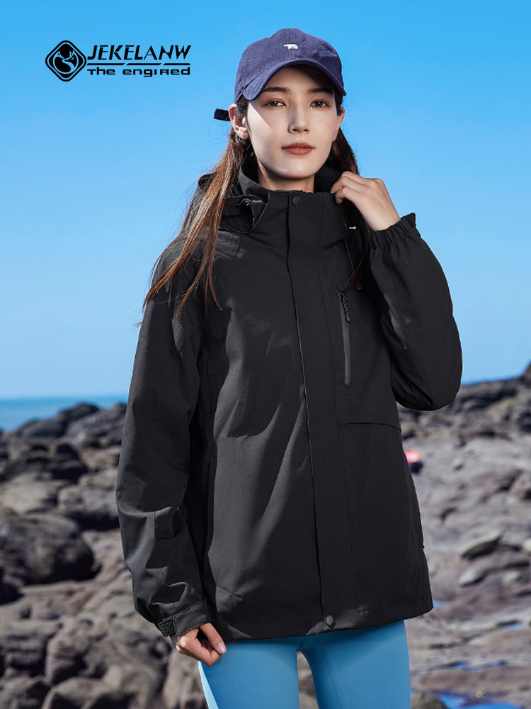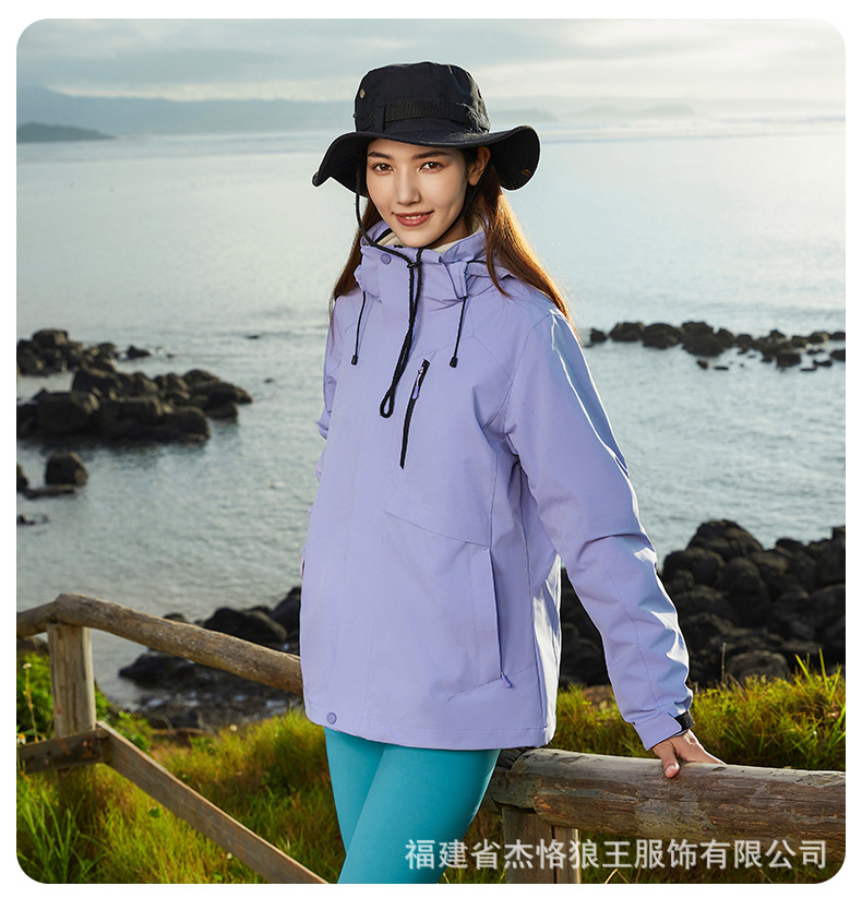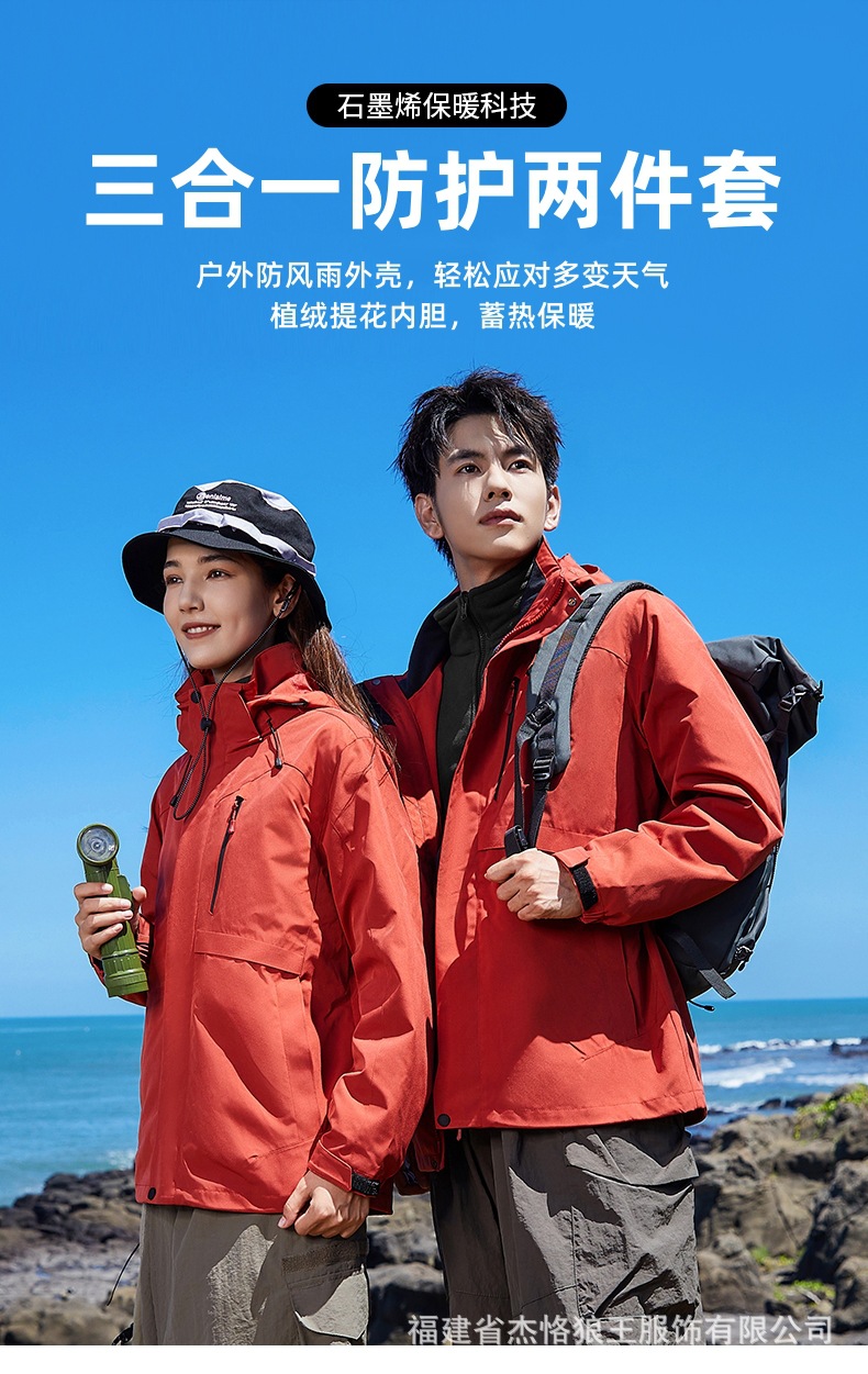 Jie Ke Wolf King 야외 다운 러시 옷 여성 여행 등산 세트 핫 엄마 마운틴 하이 엔드 비방 도구 인쇄 로고스토어 가기