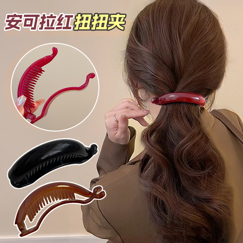 한국식 심플한 기질 트위스트 클립 여성용 단색 머리핀 2024 뒷머리용 새 스타일 머리핀 바나나 클립 헤어 액세서리스토어 가기