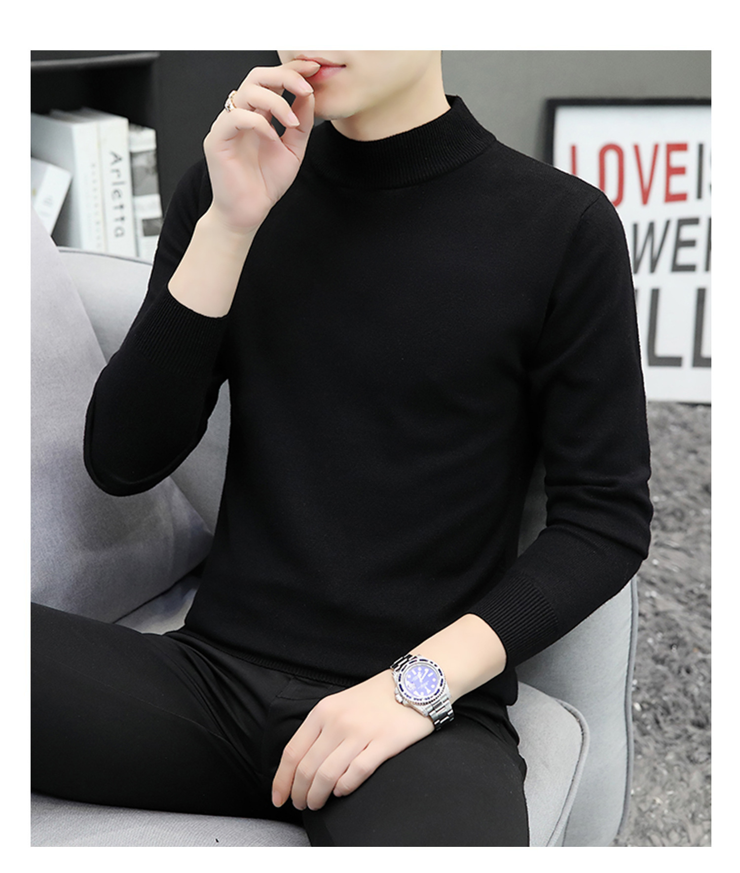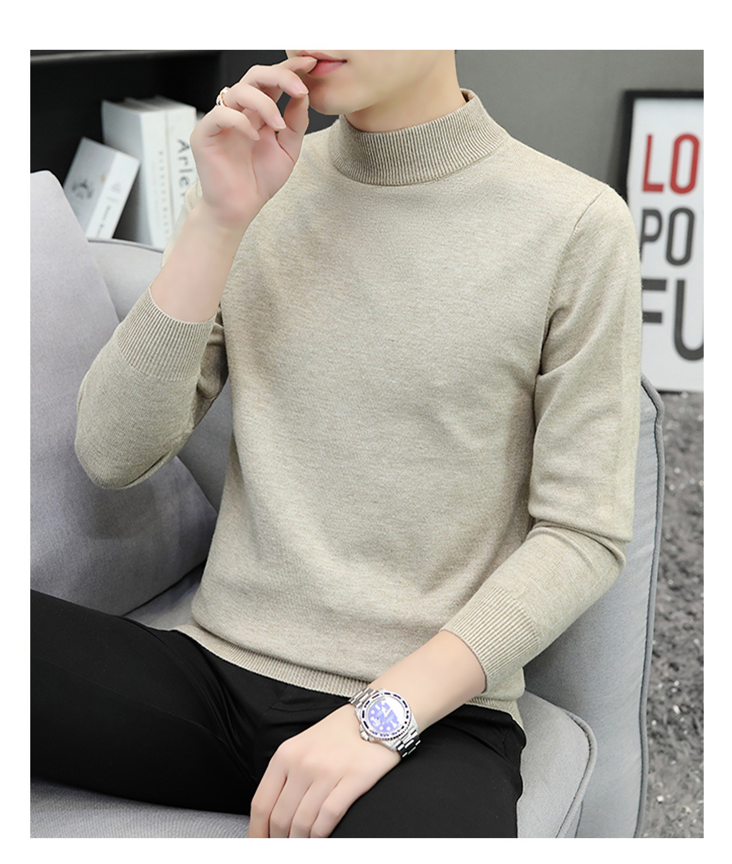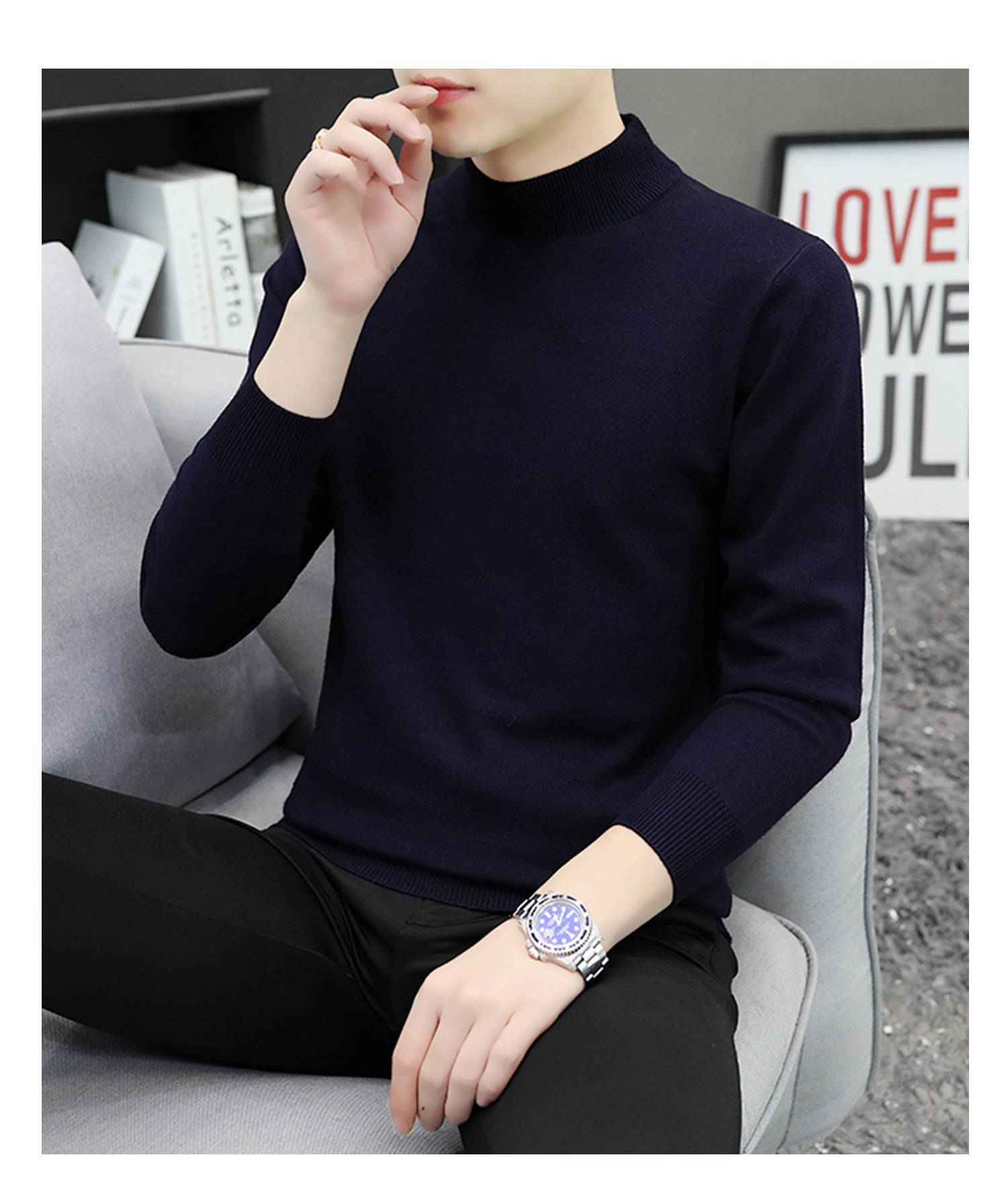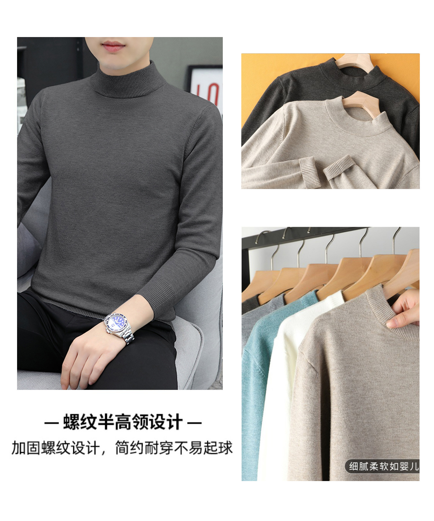 하프 터틀넥 스웨터 남성 스웨터 가을과 겨울 잘 생긴 미들 칼라 내베이스 셔츠 따뜻한 스웨터 올 매치 새로운 도착스토어 가기