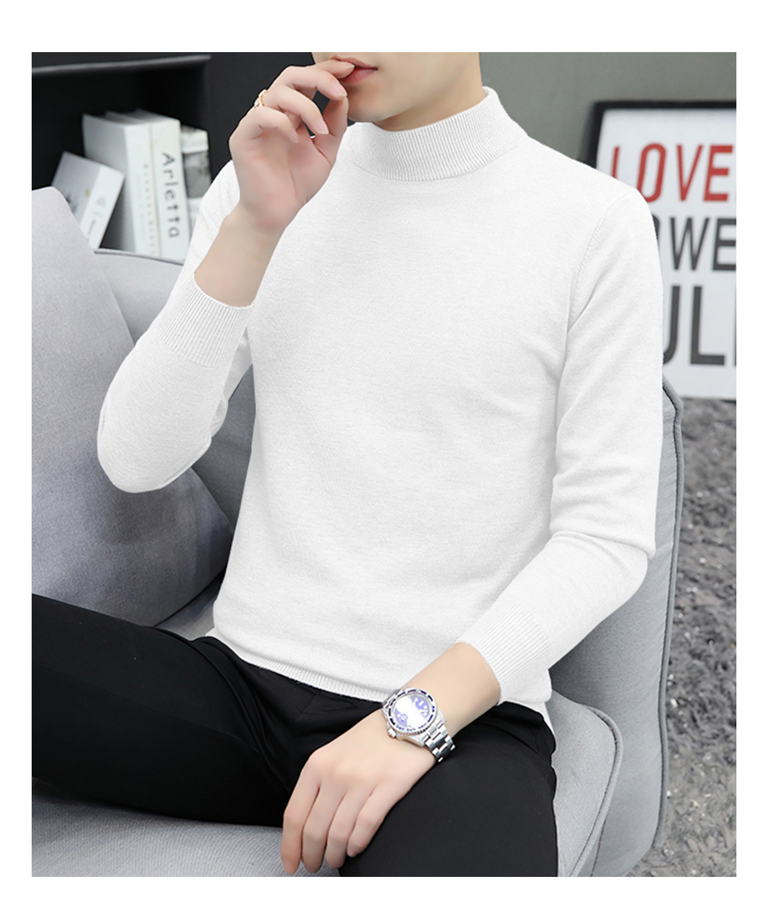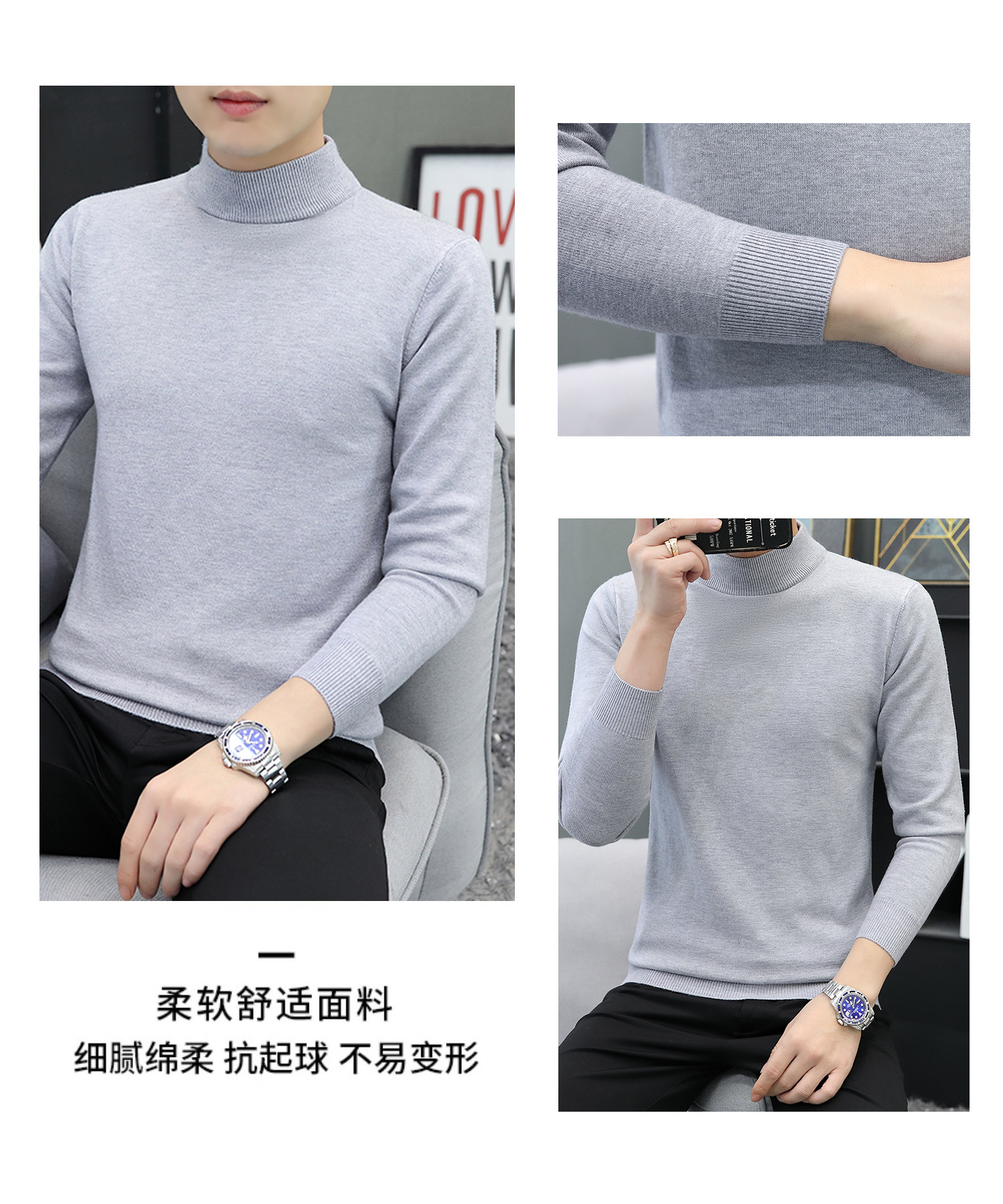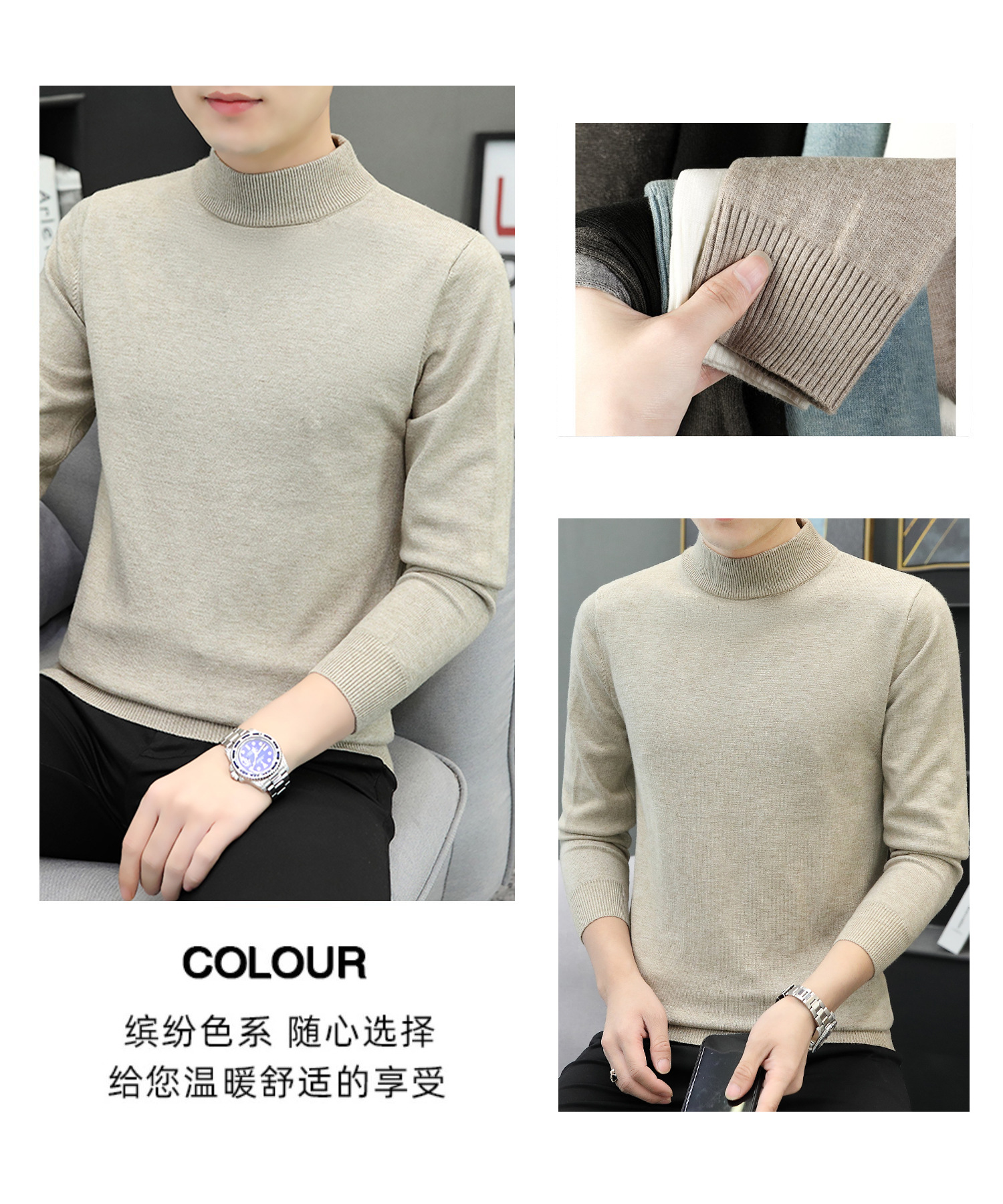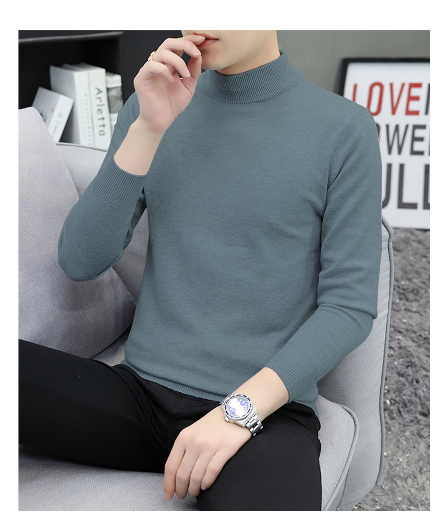 하프 터틀넥 스웨터 남성 스웨터 가을과 겨울 잘 생긴 미들 칼라 내베이스 셔츠 따뜻한 스웨터 올 매치 새로운 도착스토어 가기