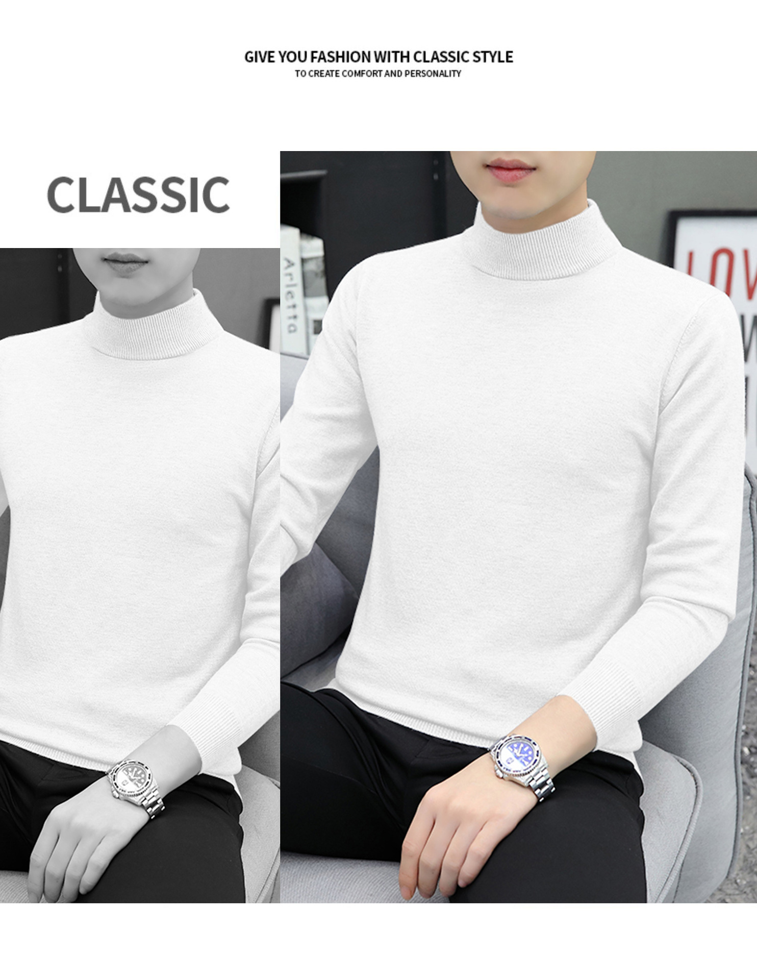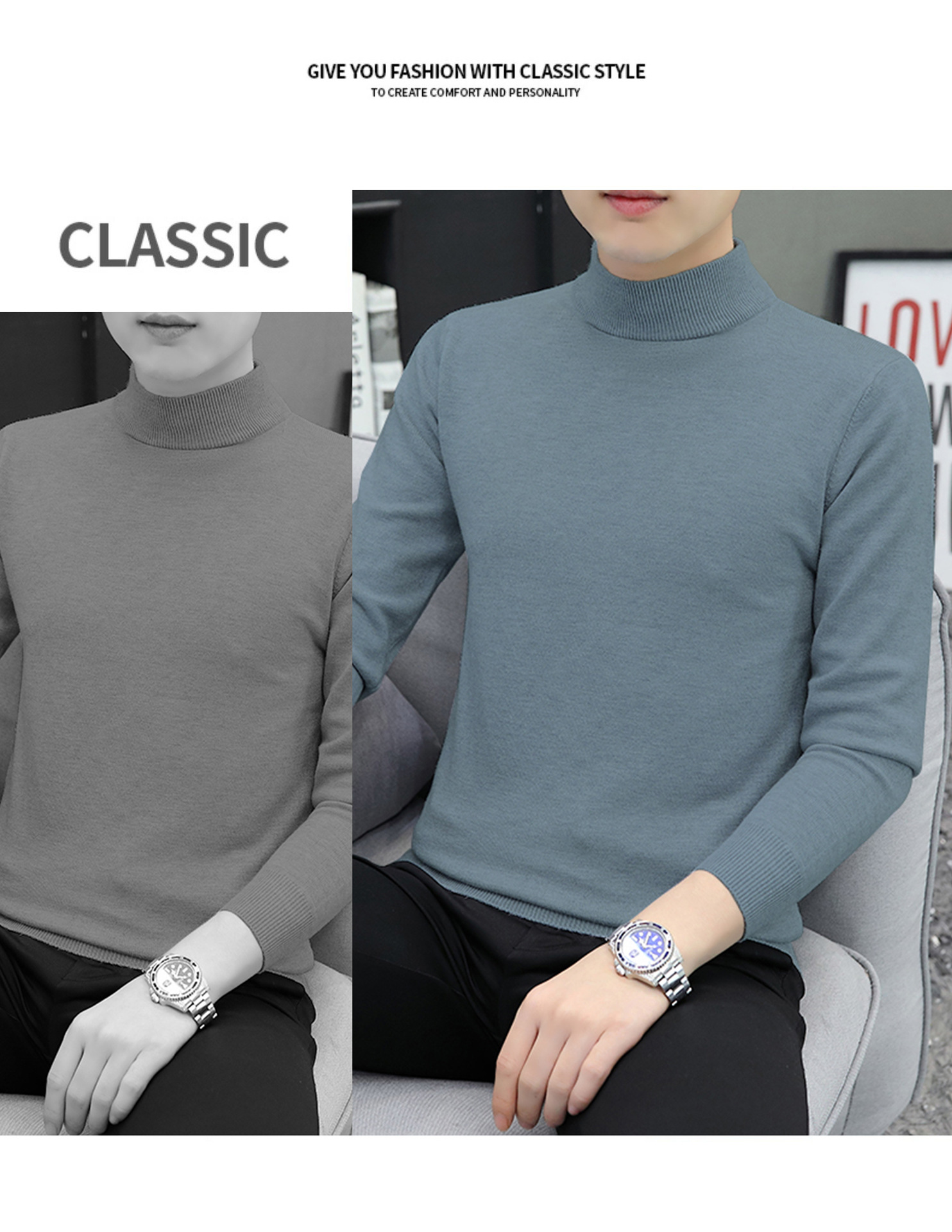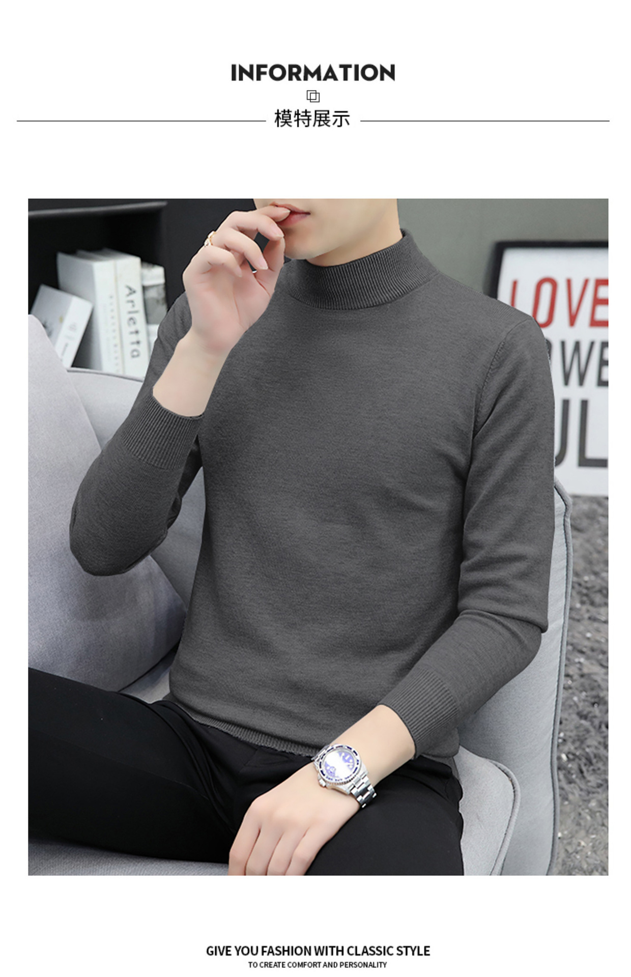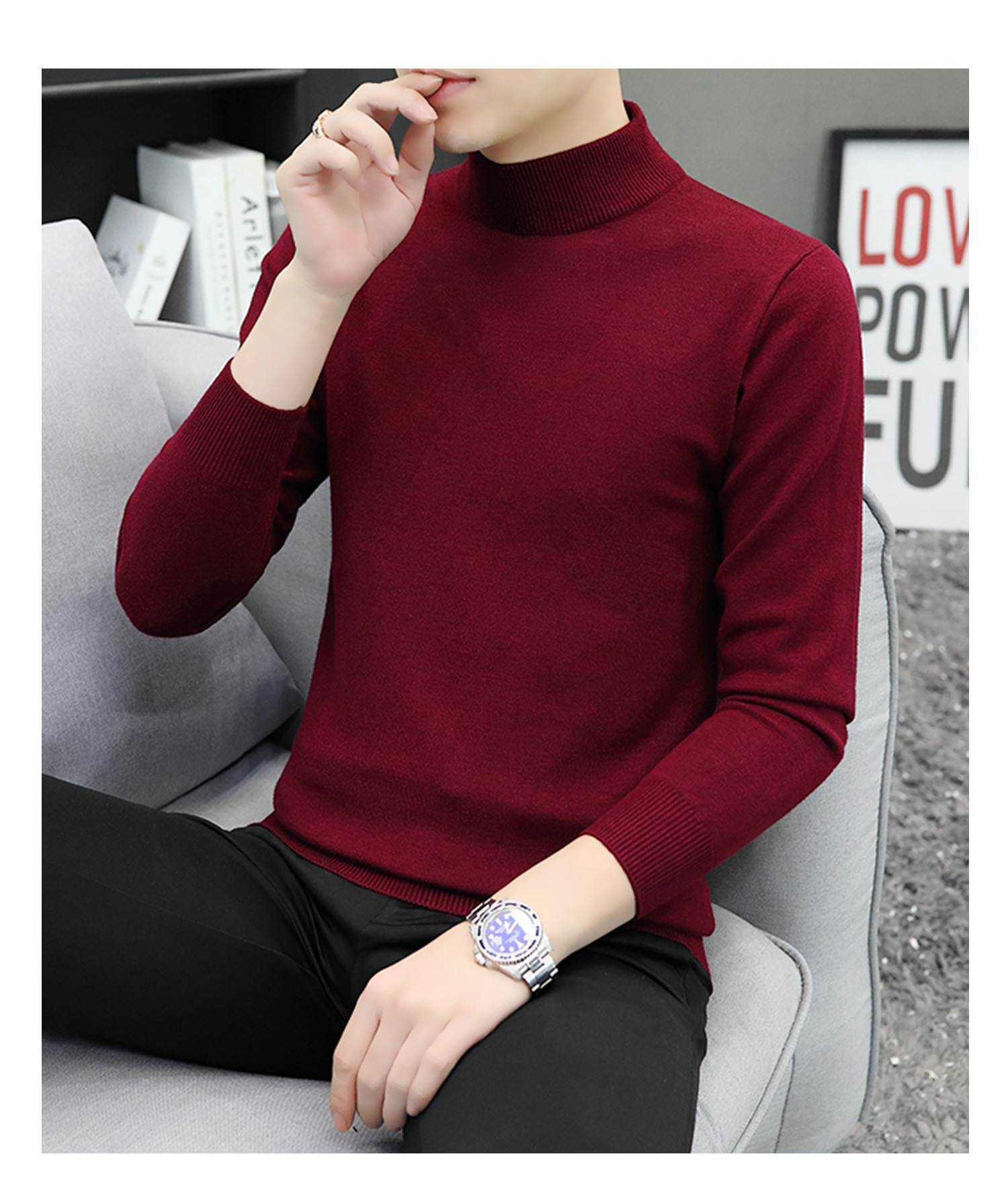 하프 터틀넥 스웨터 남성 스웨터 가을과 겨울 잘 생긴 미들 칼라 내베이스 셔츠 따뜻한 스웨터 올 매치 새로운 도착스토어 가기