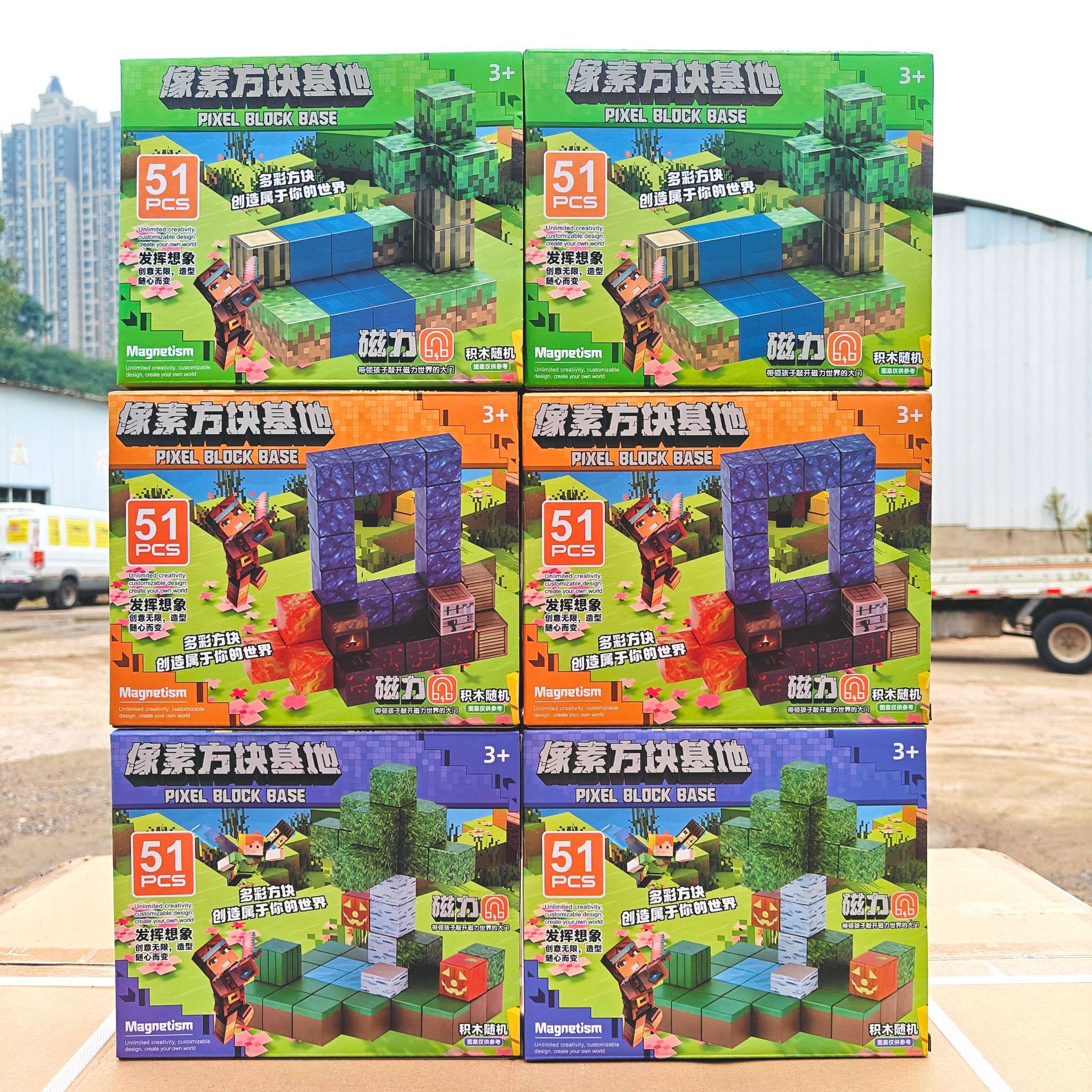 【磁力方块款式都是随机的,可能和彩盒上的场景不符,介意请勿拍】