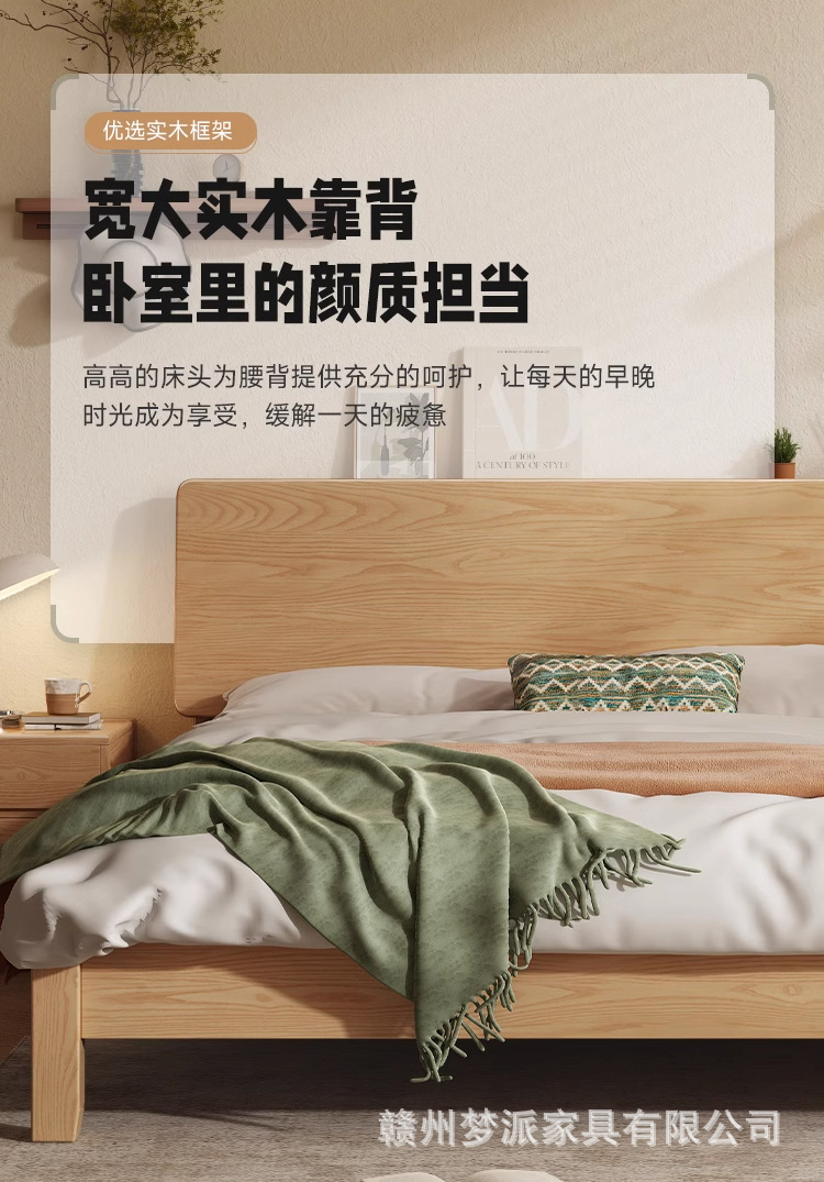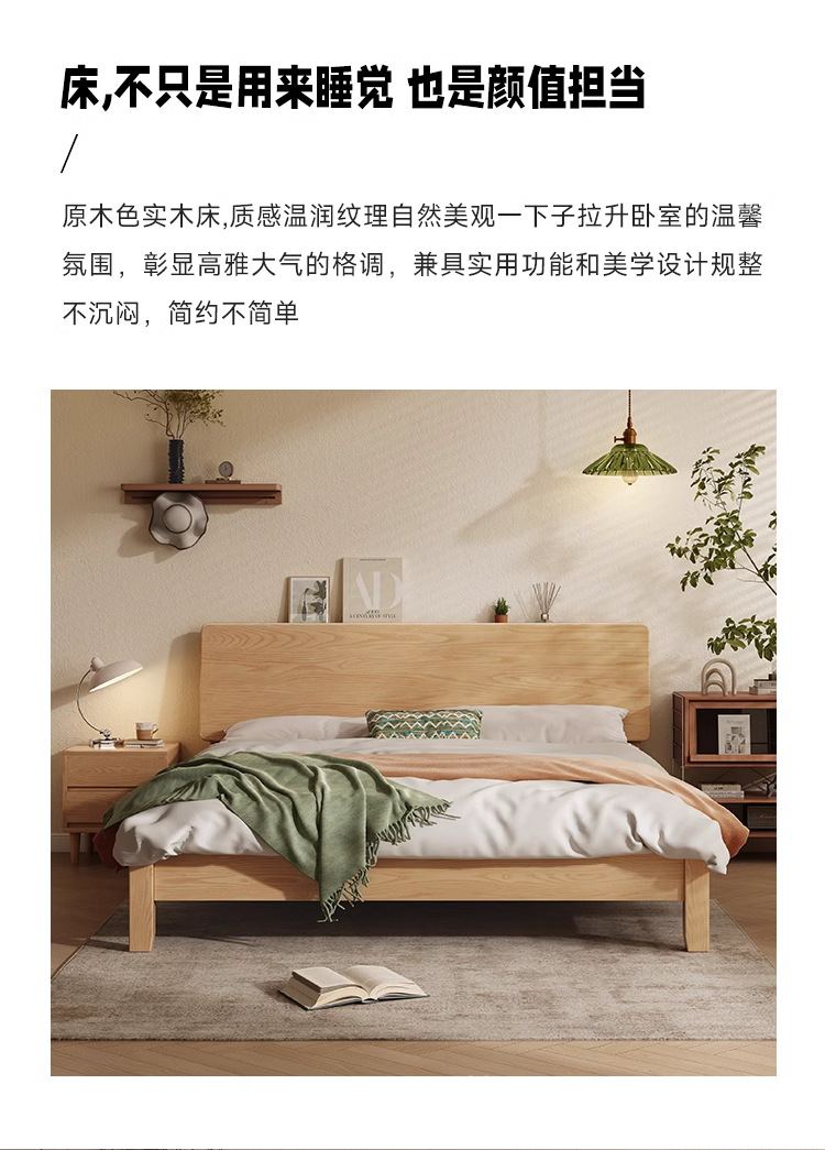 노르딕 애쉬 솔리드 우드 침대 1.8 m 마스터 침실 더블 침대 현대 간단한 1.5 m 로그 윈드 침대 임대 룸스토어 가기