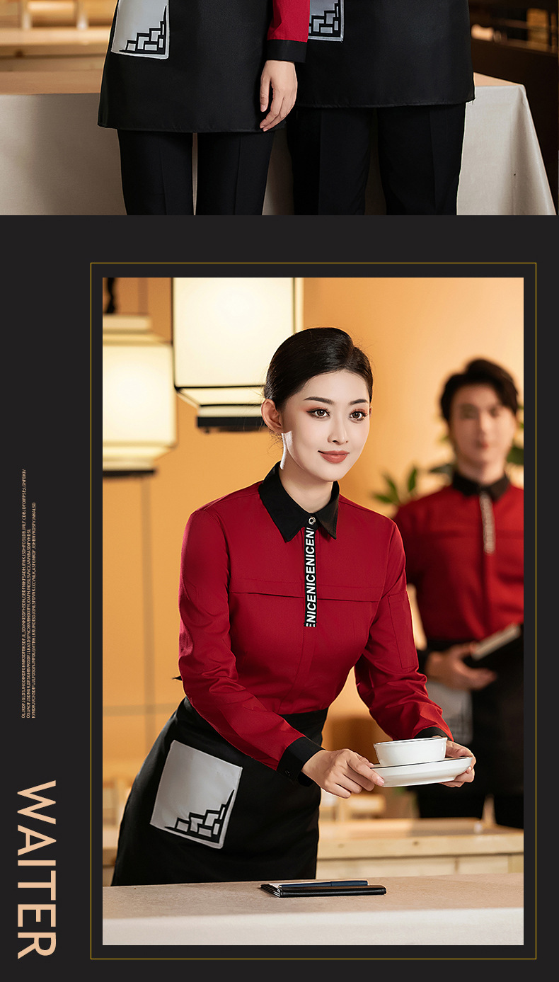 餐厅工作服餐饮咖啡店酒店前台服务员秋冬季长袖女烘焙蛋糕奶茶店