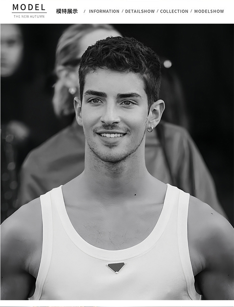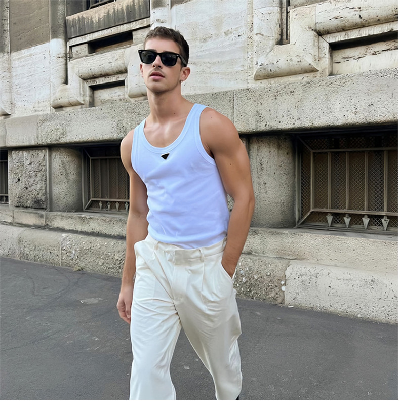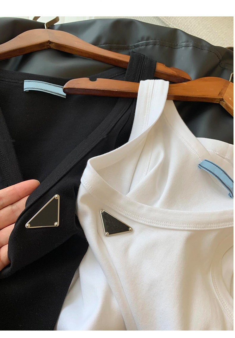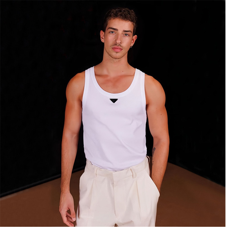 Nanyou 하이 퀄리티 P 남성 금속 삼각형 로고 민소매 셔츠 코튼 조끼는 재고 세대가 될 수 있습니다스토어 가기