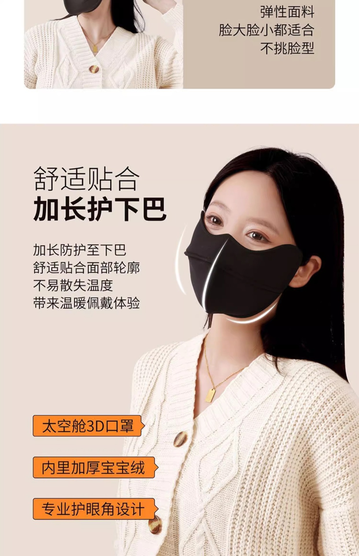 가을과 겨울 따뜻한 마스크 방풍 콜드 마스크 3 차원 추적없는 여성의 세련된 슬리밍 수정 된 얼굴 세척 가능스토어 가기