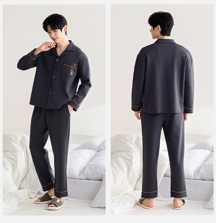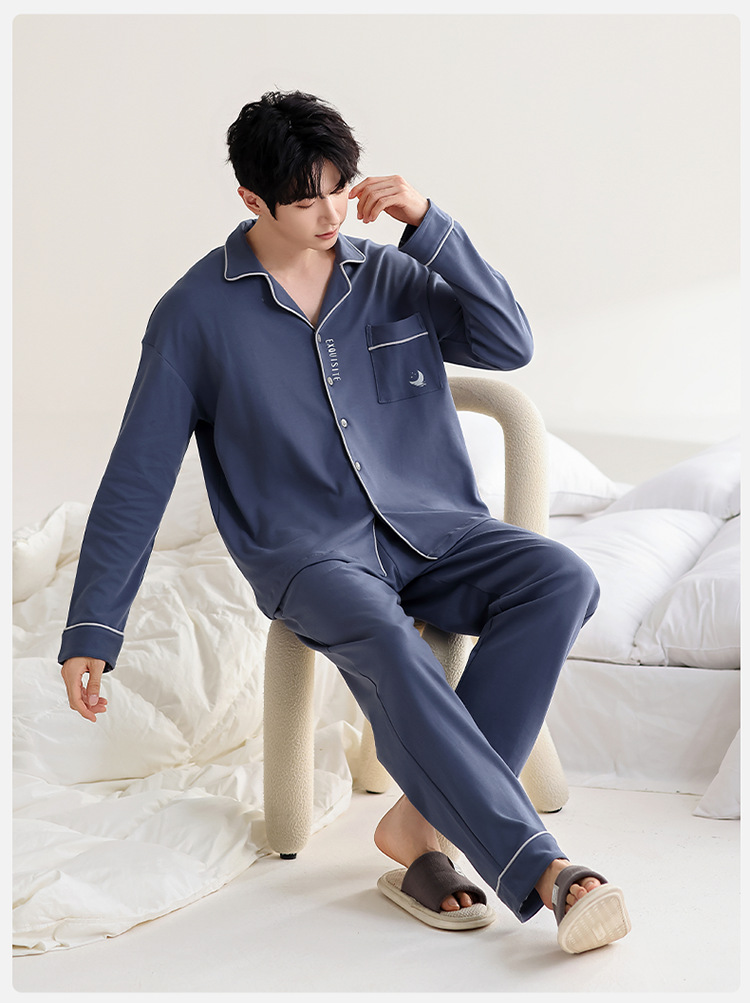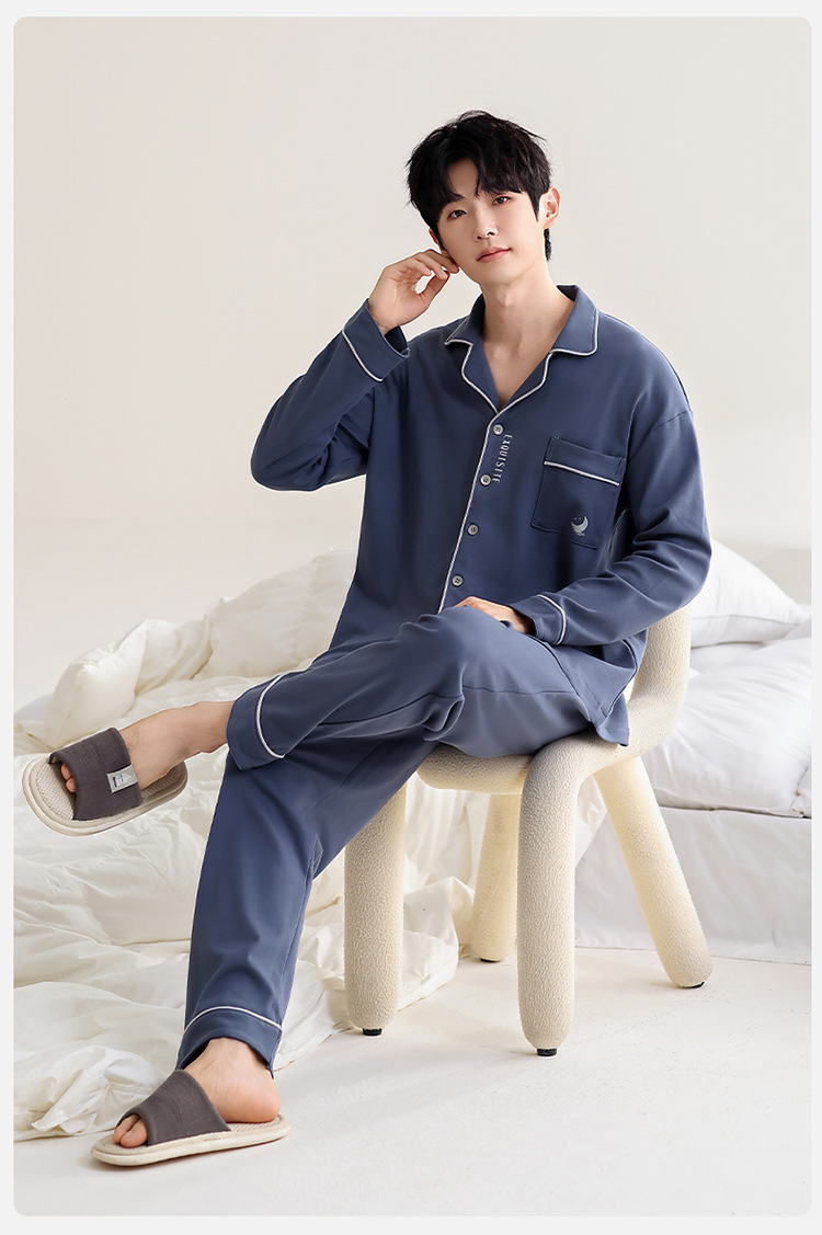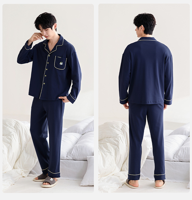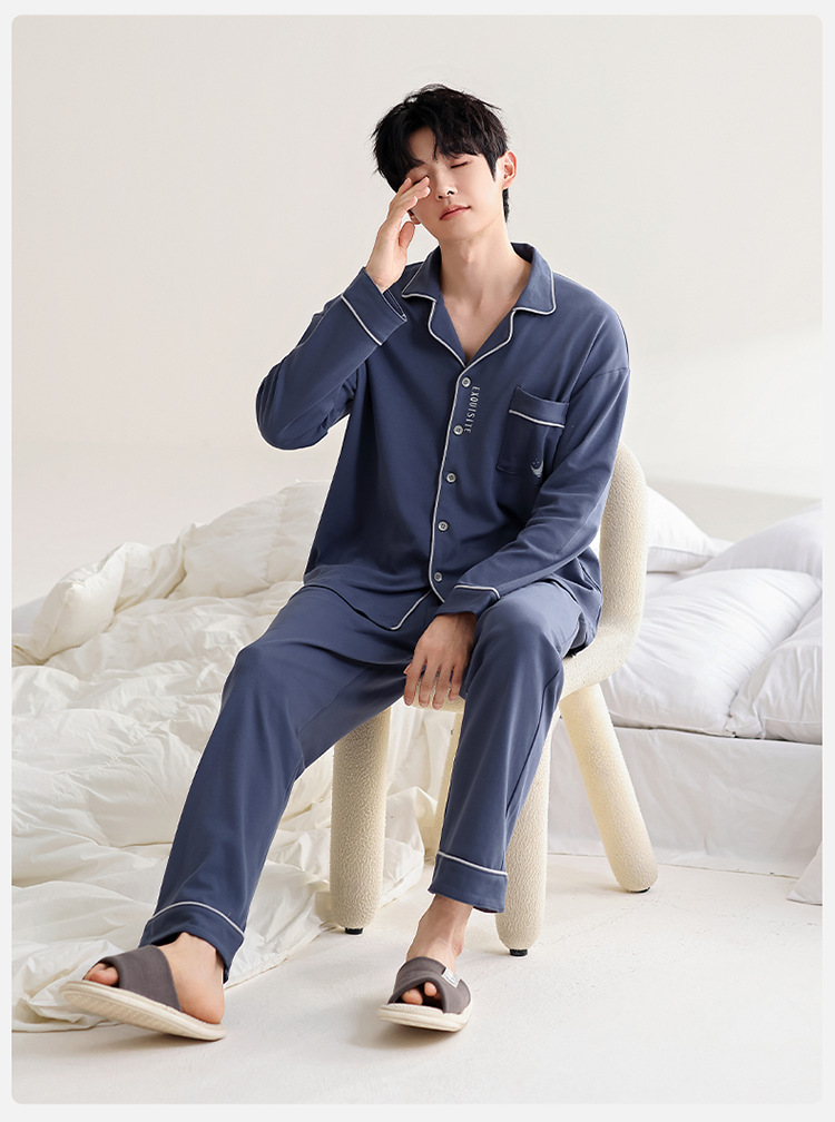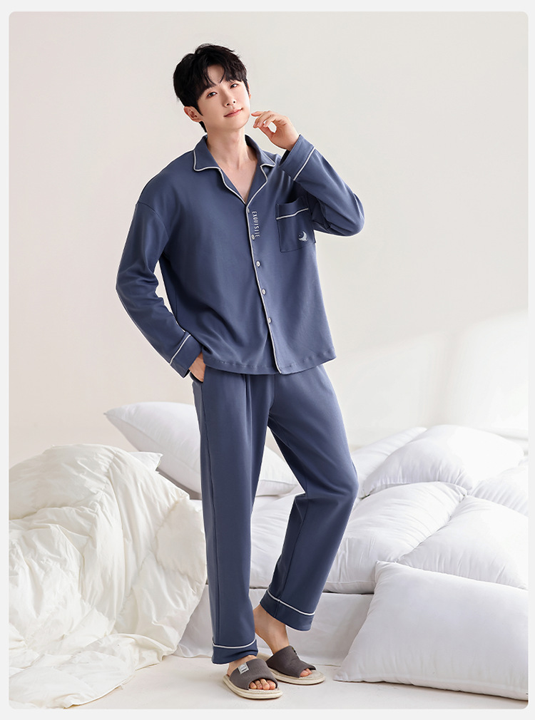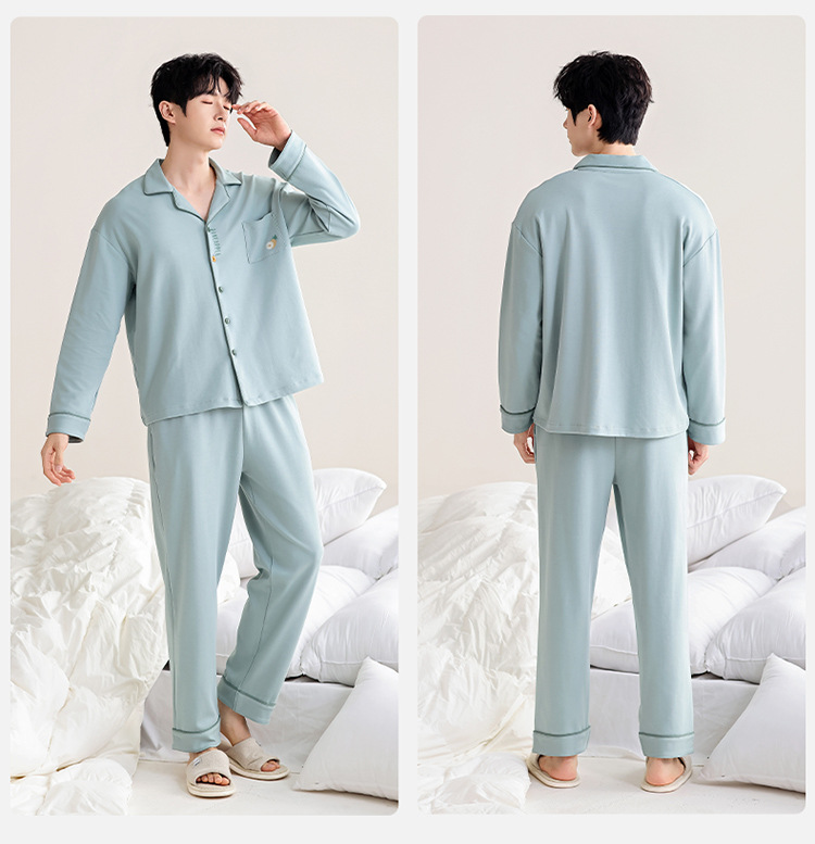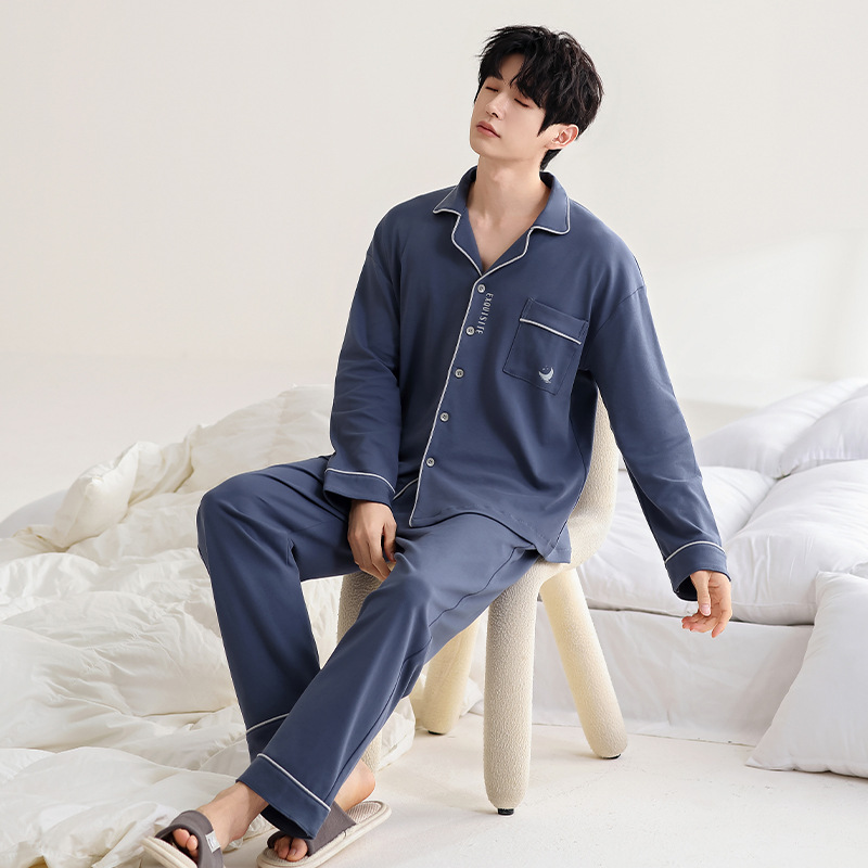 100% 면 잠옷 남자 가을 긴 소매 플러스 사이즈 십대 및 학생을위한 느슨한 카디건 겉옷 홈 의류 세트스토어 가기
