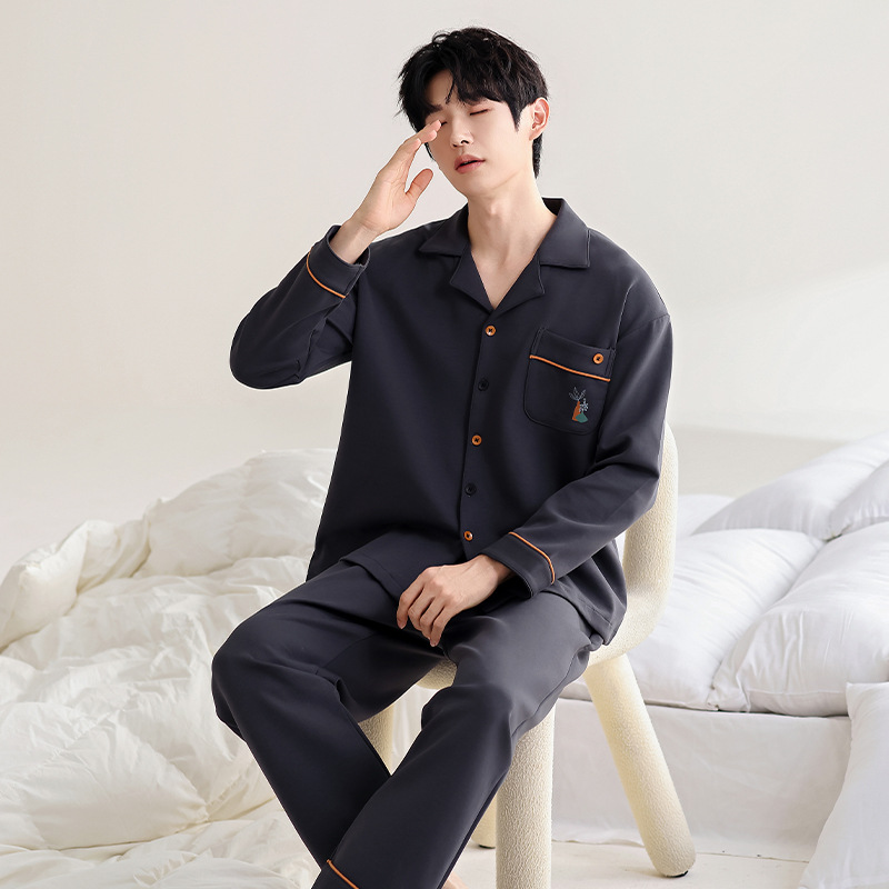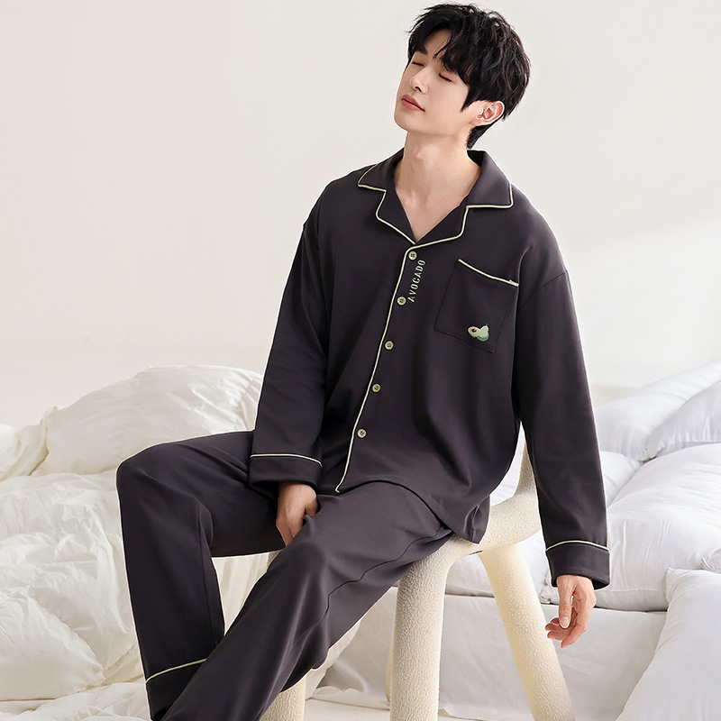 100% 면 잠옷 남자 가을 긴 소매 플러스 사이즈 십대 및 학생을위한 느슨한 카디건 겉옷 홈 의류 세트