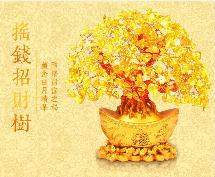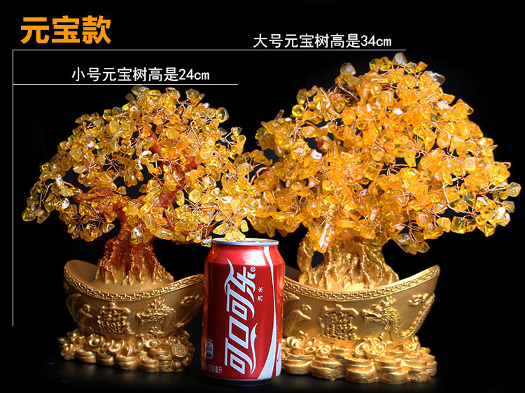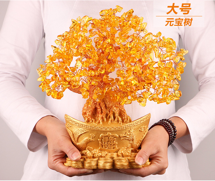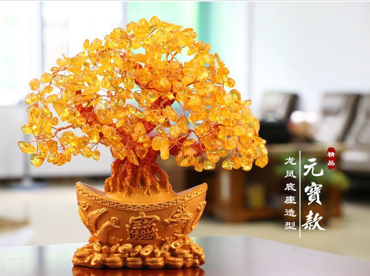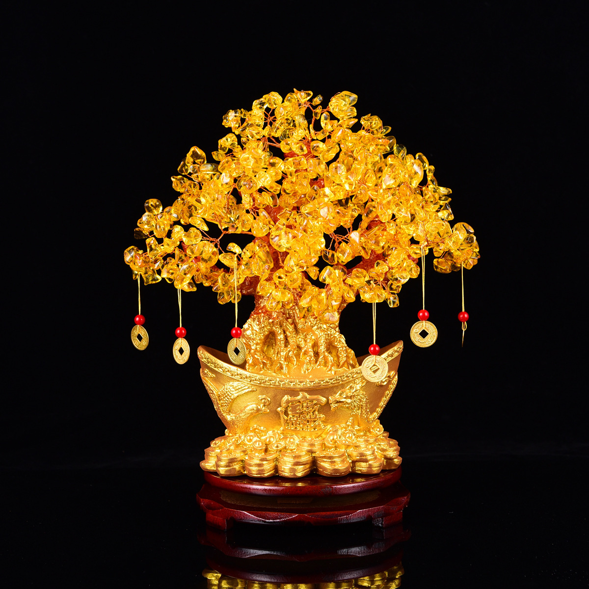 노란색 크리스탈 현금 소 장식품 작은 포춘 트리 홈 창조적 인 와인 캐비닛 홈 장식 액세서리 TV 캐비닛 포춘 잉곳 나무
