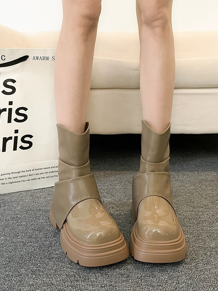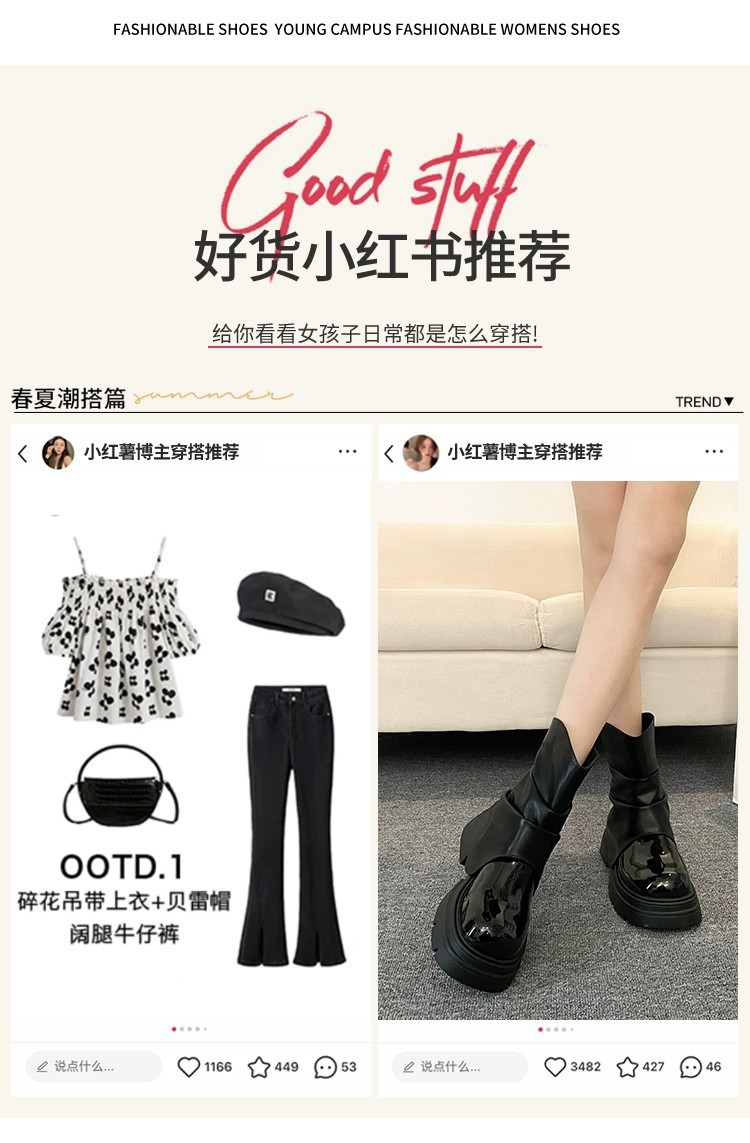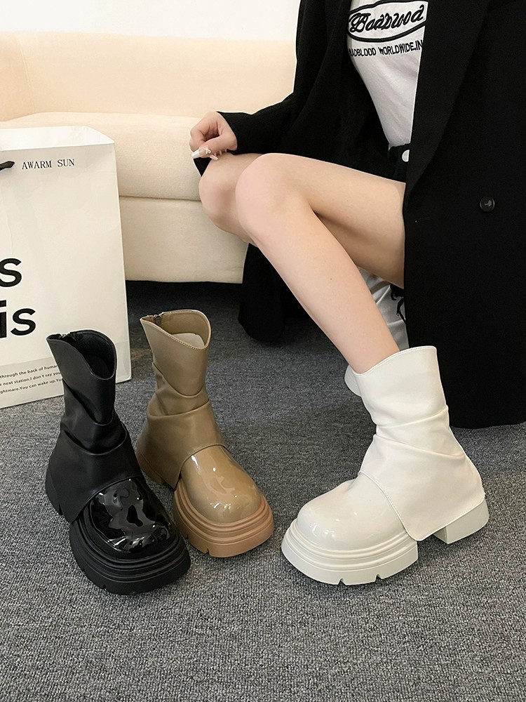 여성용 프렌치 스타일 숏부츠 도매 봄 여름 신상품 스커트와 함께 입기 좋은 두꺼운 밑창 키높이 팬츠 부츠 마틴 부츠스토어 가기