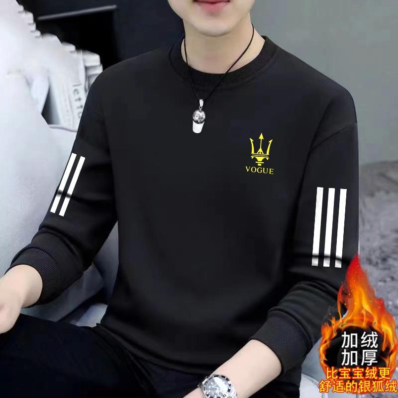 [가을과 겨울 필수] 남자 땀 2024 가을 겨울 뉴 기모 라운드 넥 느슨한 후드 탑 긴 소매