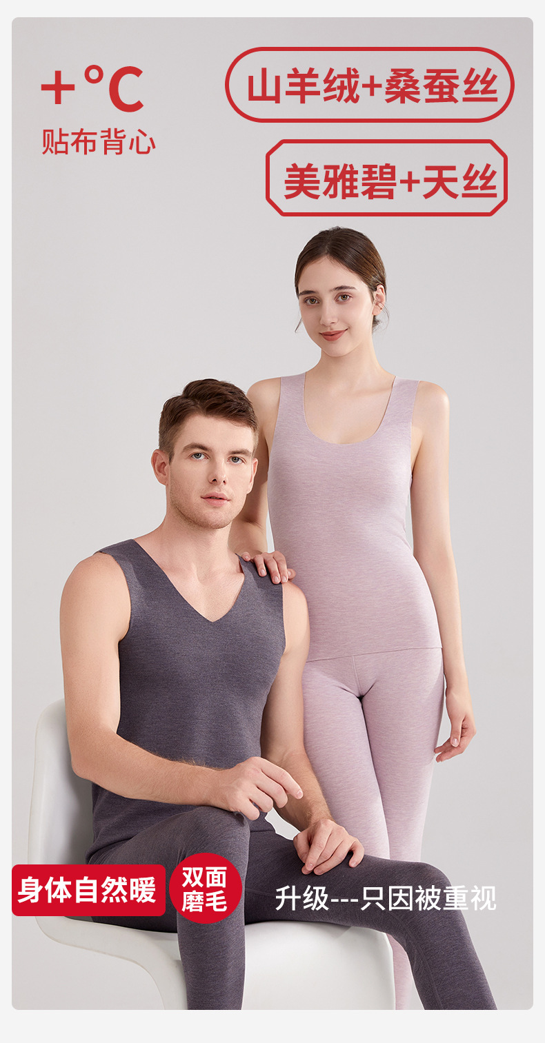 가을 겨울 무봉제 독일산 보온 조끼 남녀공용 실크 캐시미어 발열 조끼 두꺼운 커플용 정전기 방지