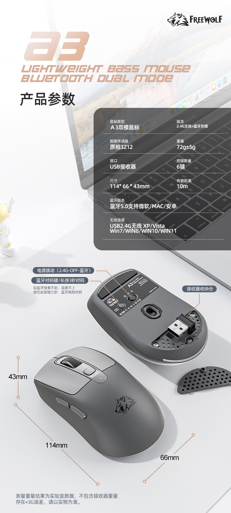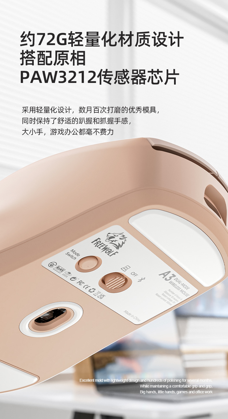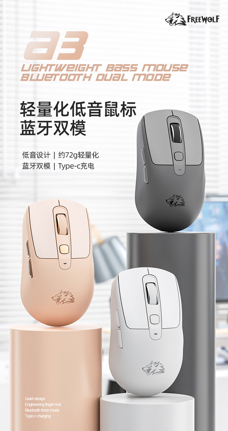 型号:自由狼A3蓝牙+2.4G无线双模鼠标