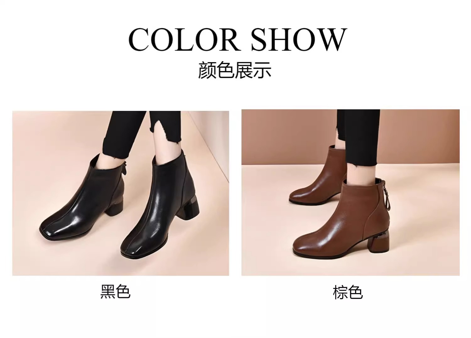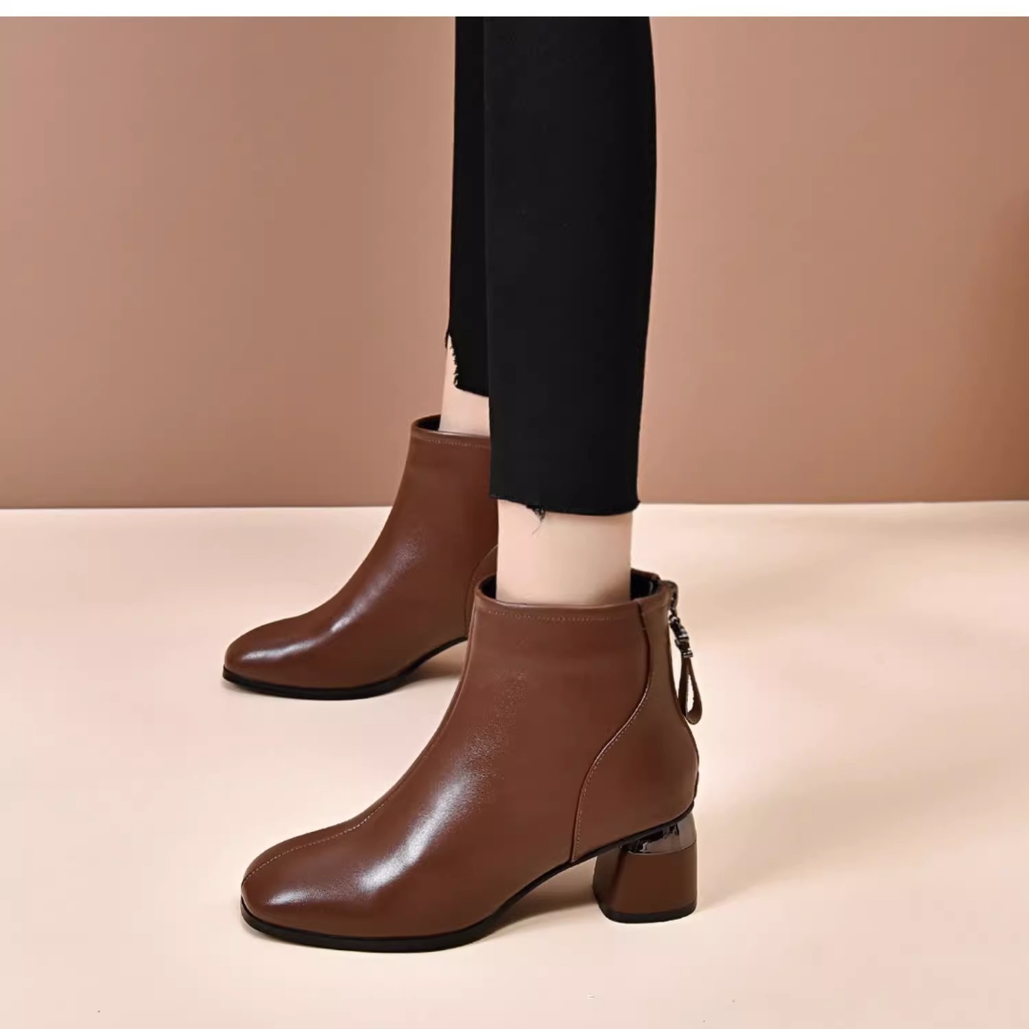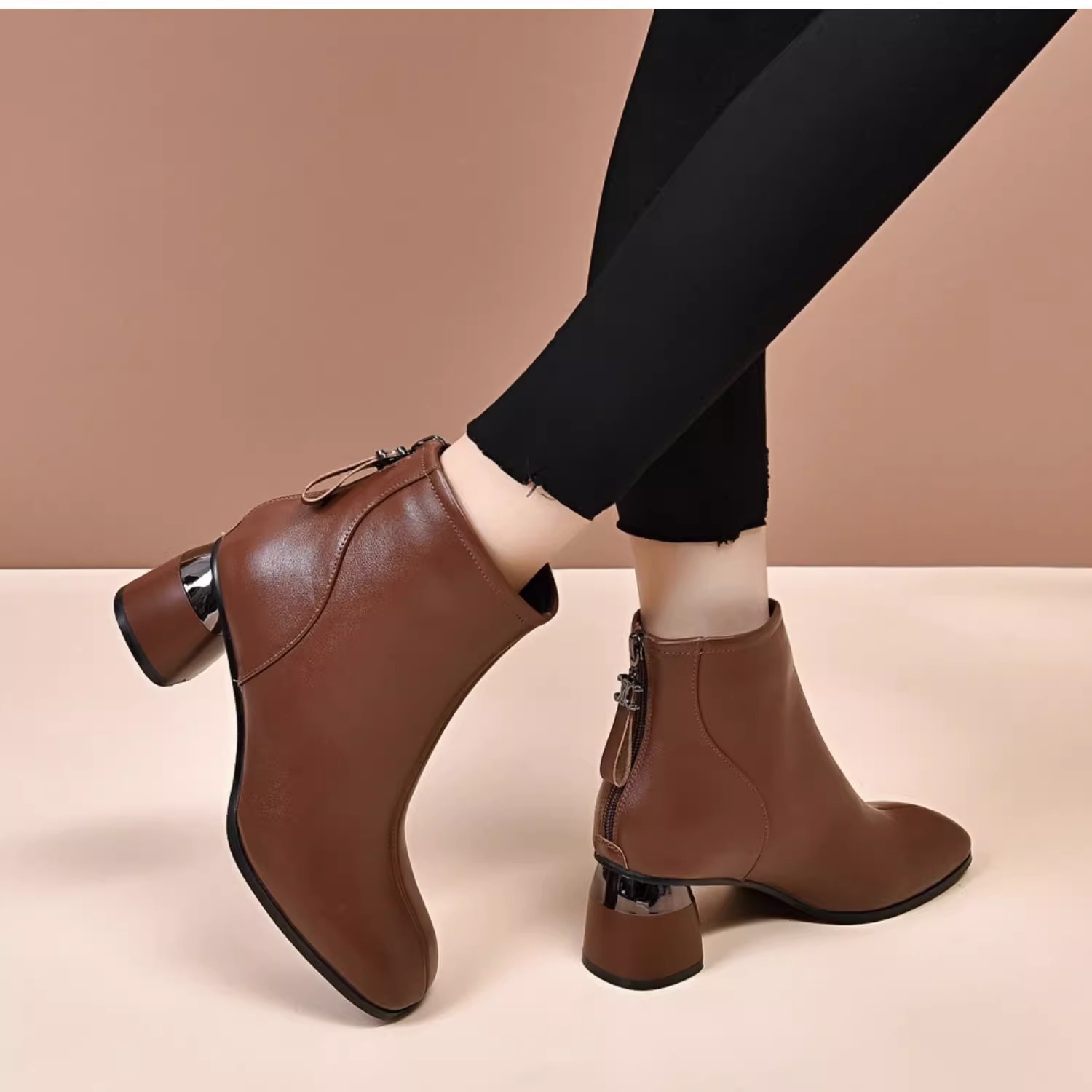 여성용 스퀘어토 하이힐 숏부츠, 봄/가을용 가죽 부츠, 2025년 신상 소가죽 패션 부츠, 솜 안감 두꺼운 굽 패션 부츠
