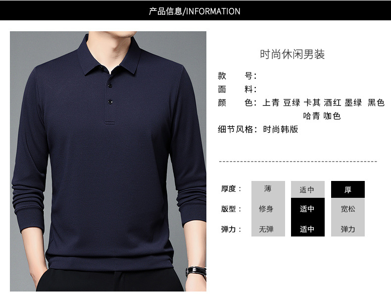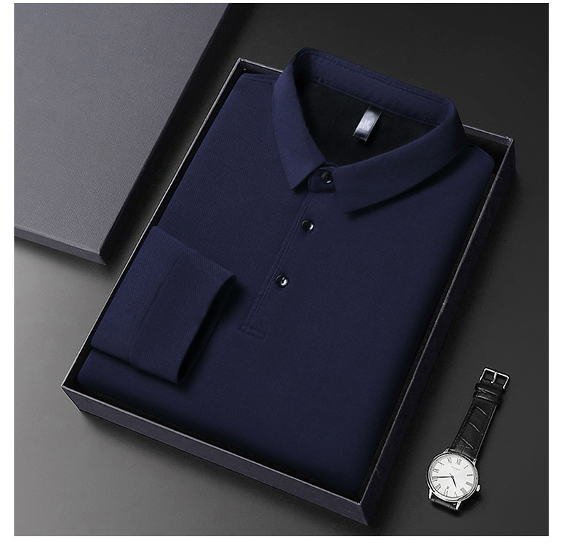 국경 간 대외 무역 가을과 겨울 와플 기모 두꺼운 폴로 셔츠 긴팔 남성 비즈니스 패션 아빠베이스 셔츠 조수스토어 가기