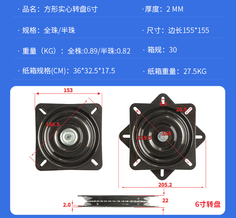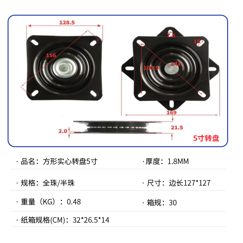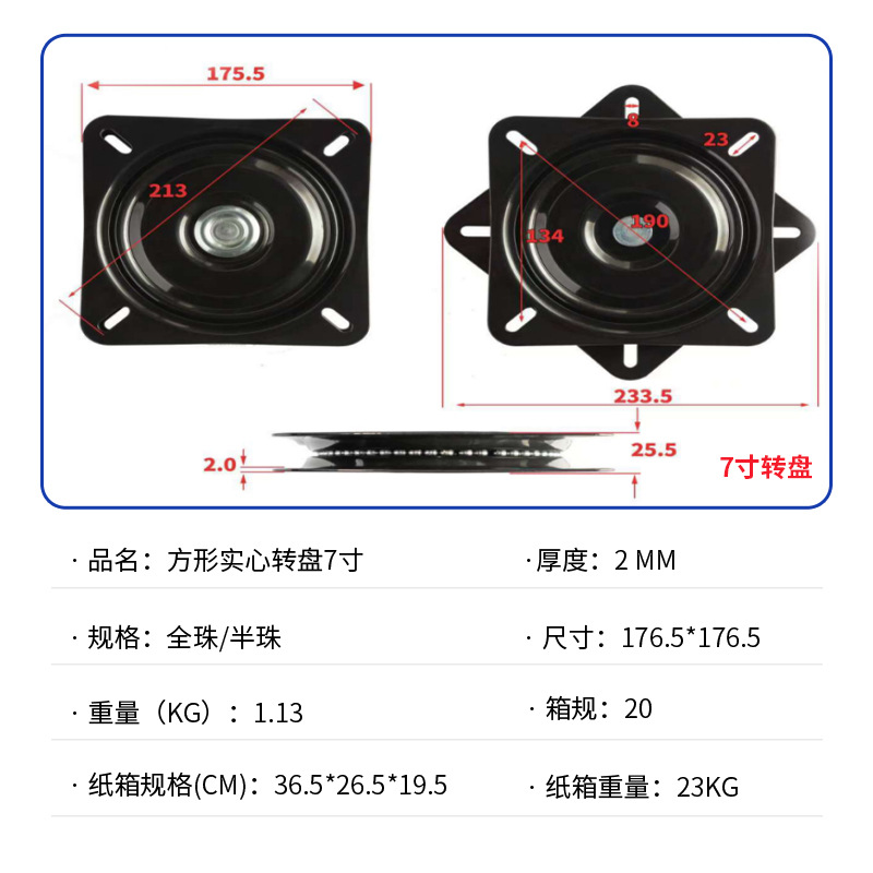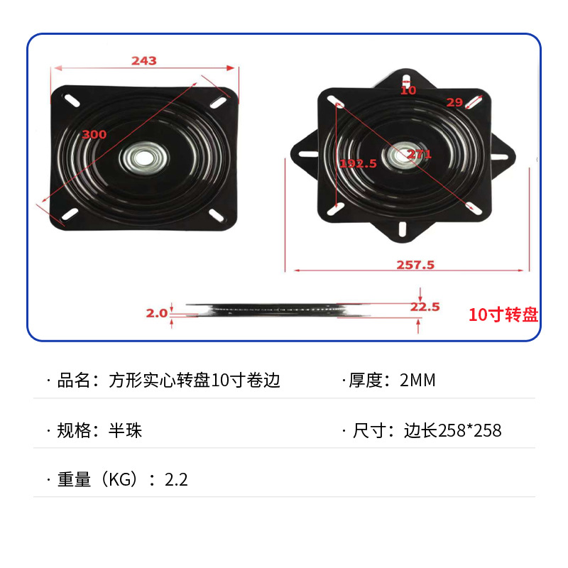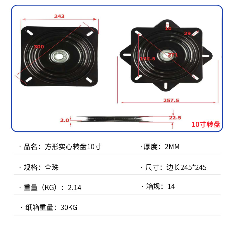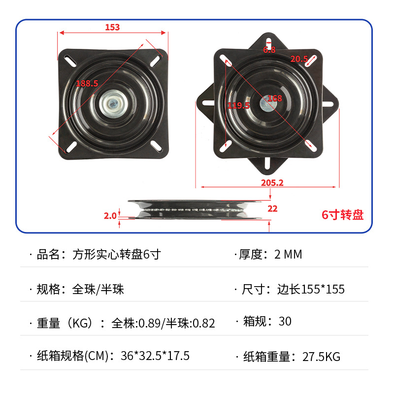 솔리드 스퀘어 턴테이블 제조 업체 도매 가구 액세서리 하드웨어 전체 구슬 사무실 의자 회전 유니버설 베이스 턴테이블스토어 가기