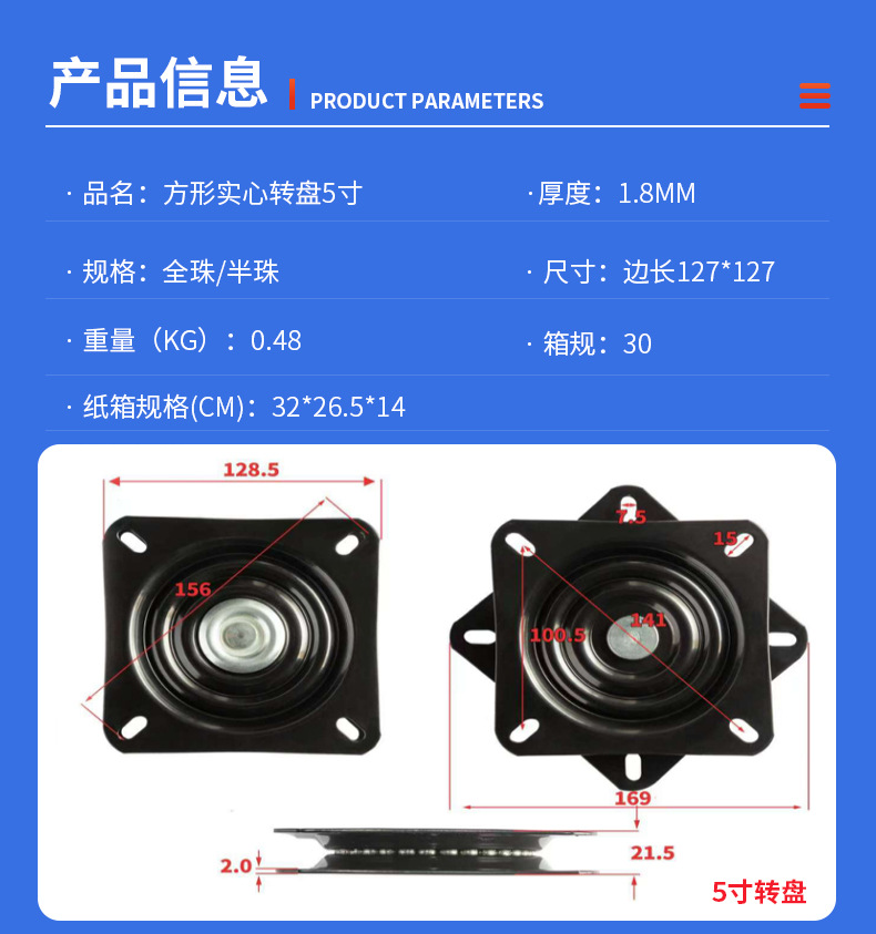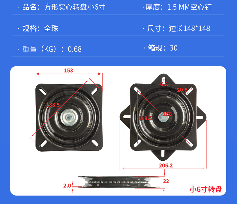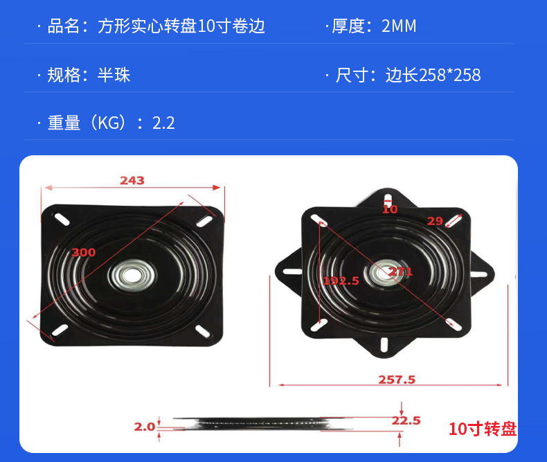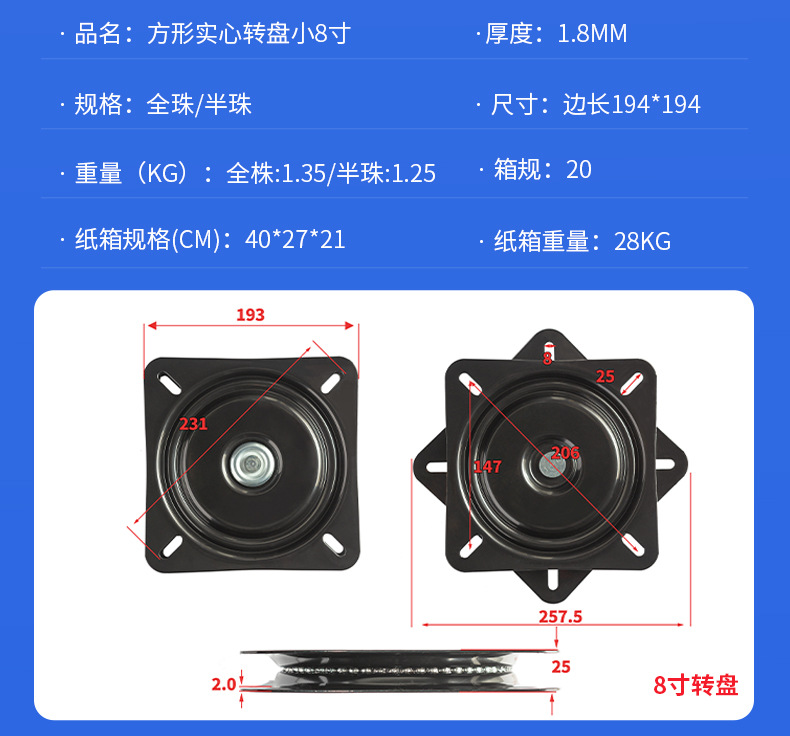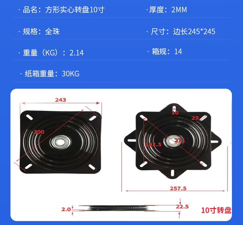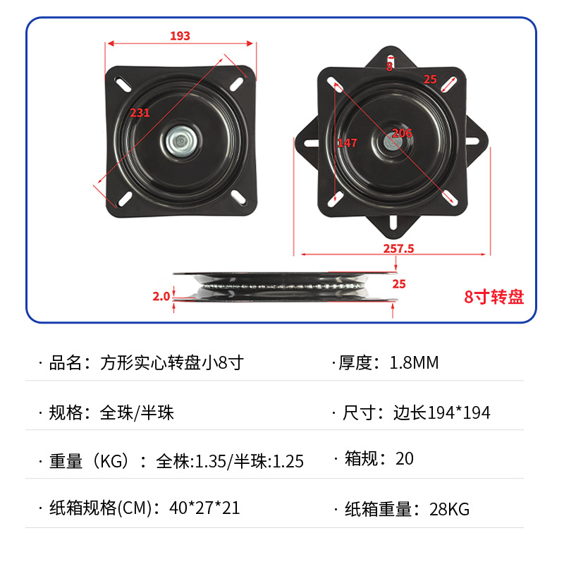 솔리드 스퀘어 턴테이블 제조 업체 도매 가구 액세서리 하드웨어 전체 구슬 사무실 의자 회전 유니버설 베이스 턴테이블스토어 가기
