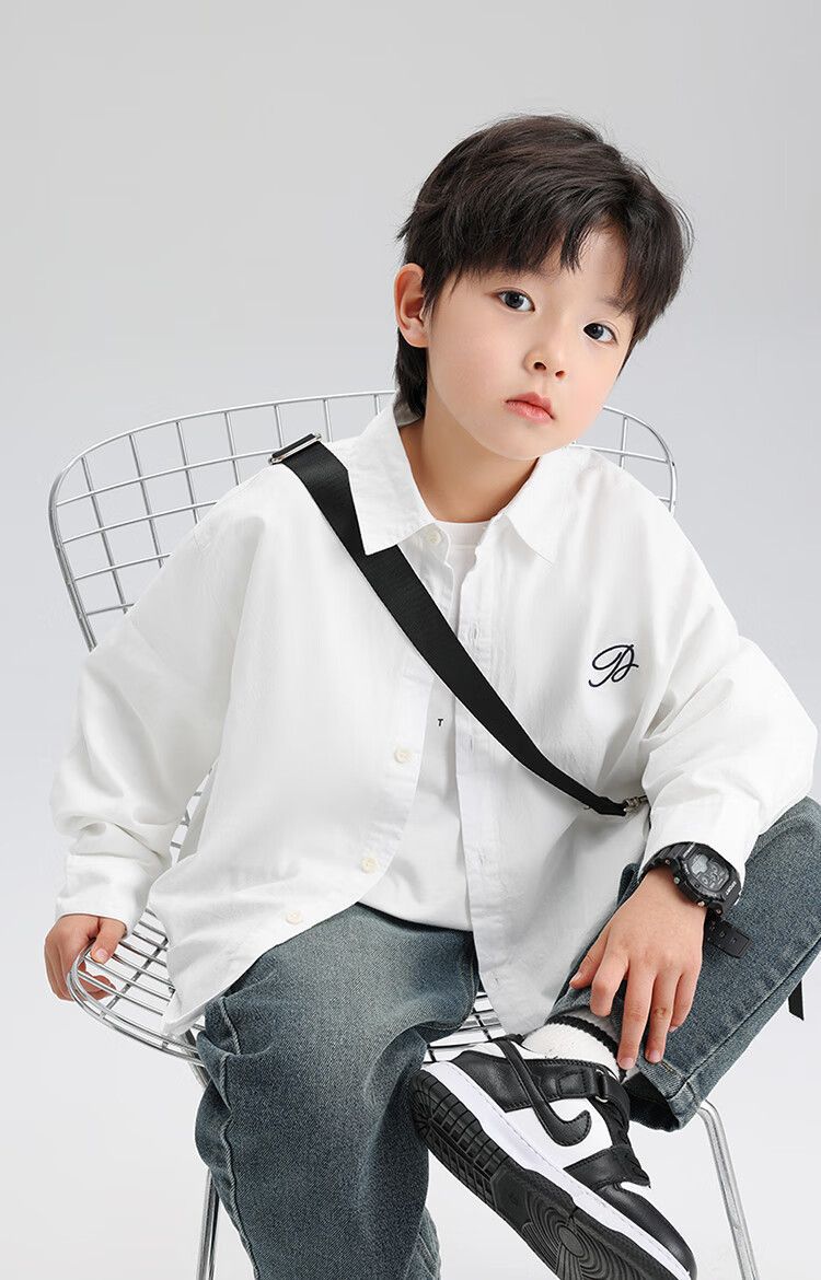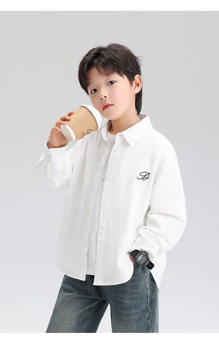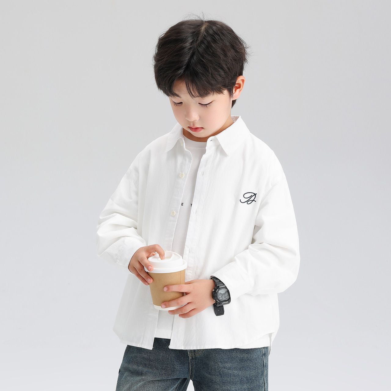 Zuoxi 아동 의류 소년 셔츠 아동 순면 2025 봄, 가을 새로운 흰색 셔츠 잘 생긴 소년 가을 재킷