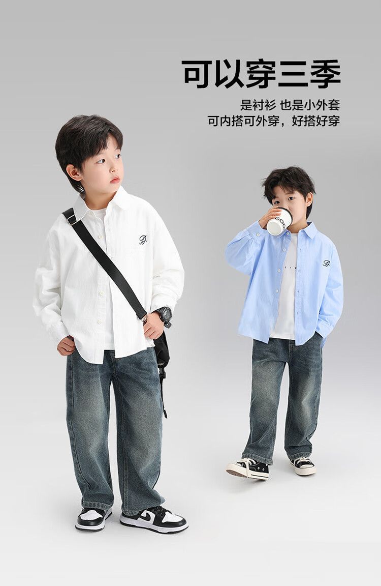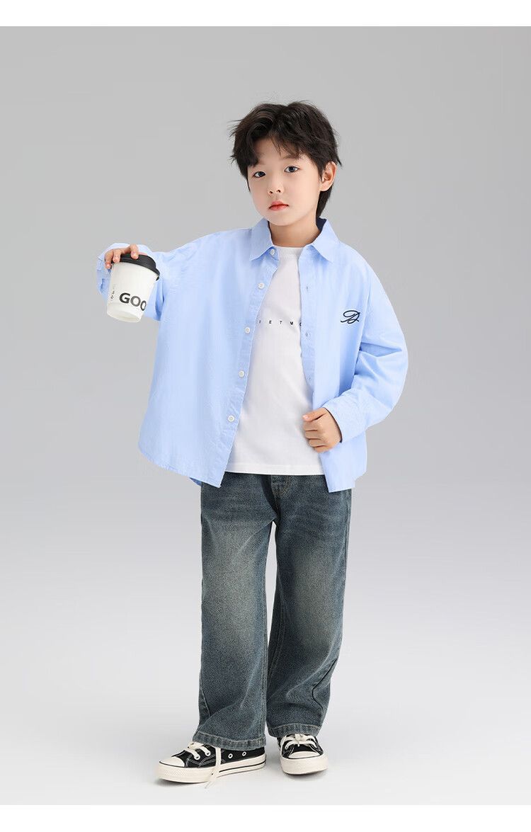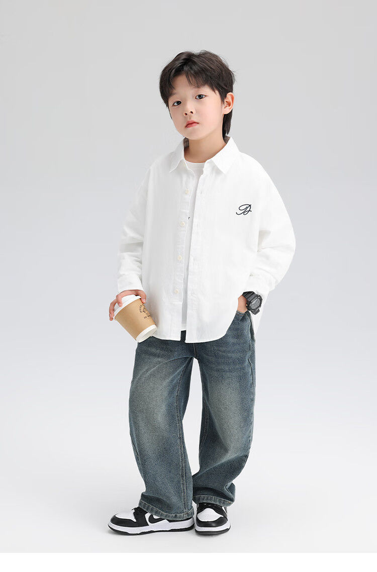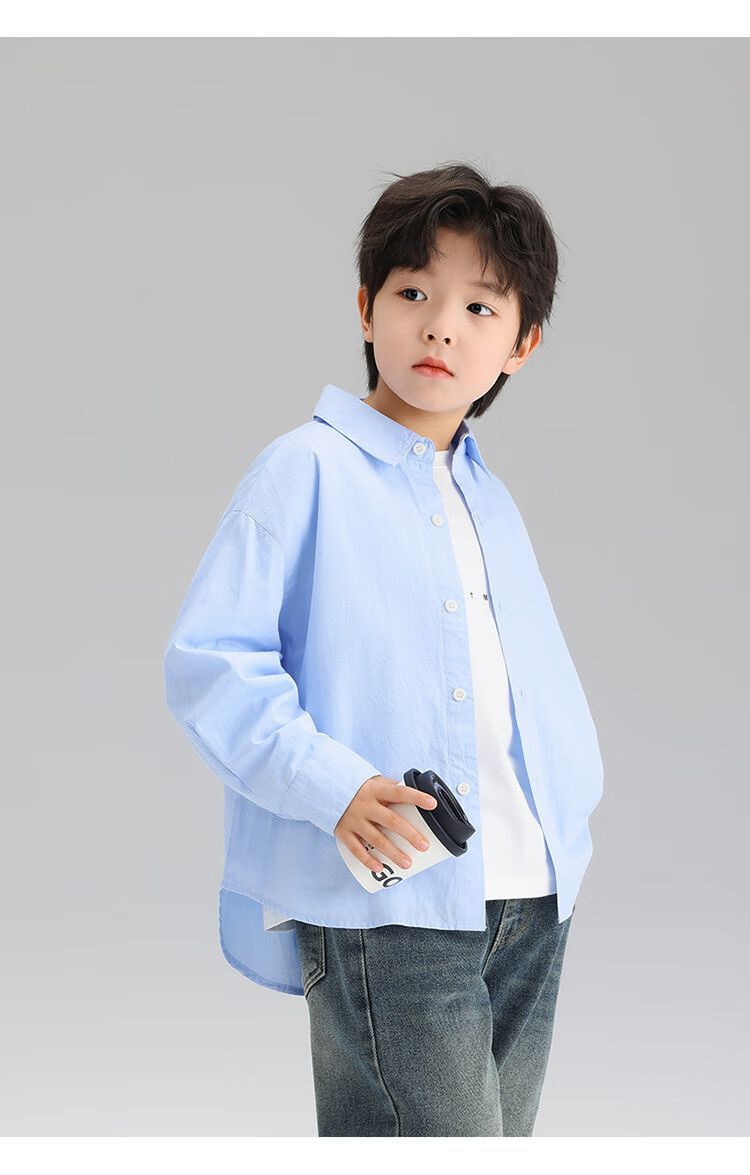 Zuoxi 아동 의류 소년 셔츠 아동 순면 2025 봄, 가을 새로운 흰색 셔츠 잘 생긴 소년 가을 재킷