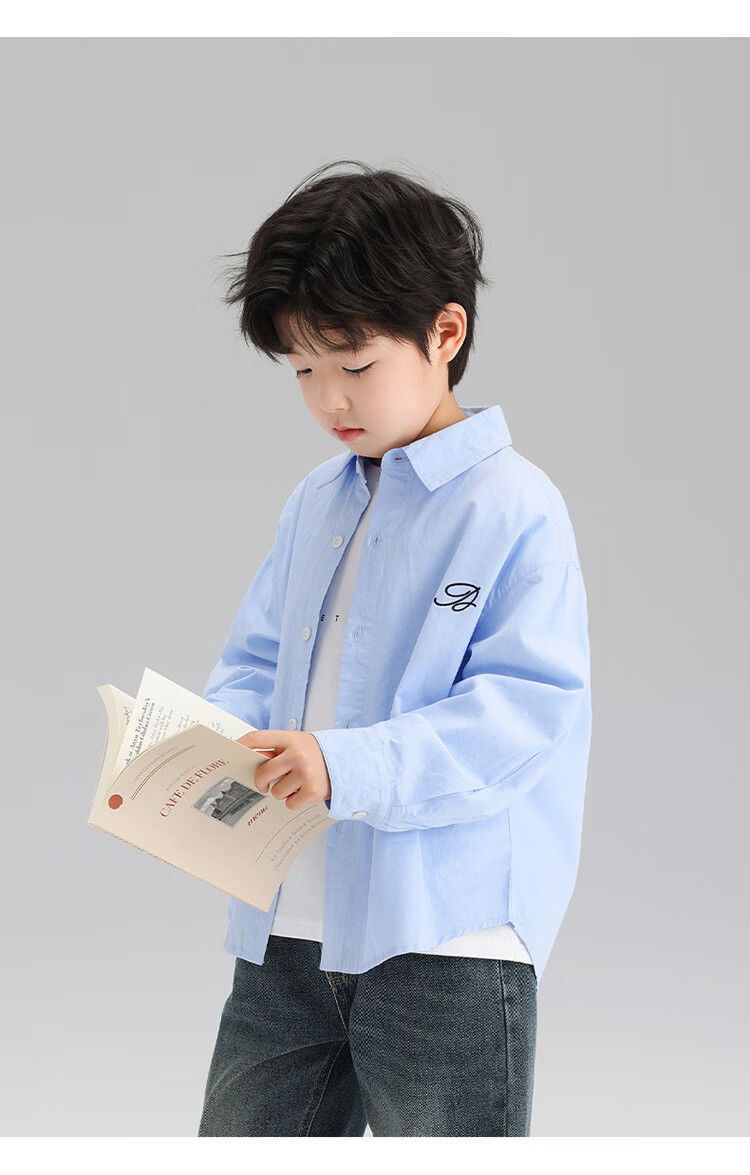 Zuoxi 아동 의류 소년 셔츠 아동 순면 2025 봄, 가을 새로운 흰색 셔츠 잘 생긴 소년 가을 재킷스토어 가기