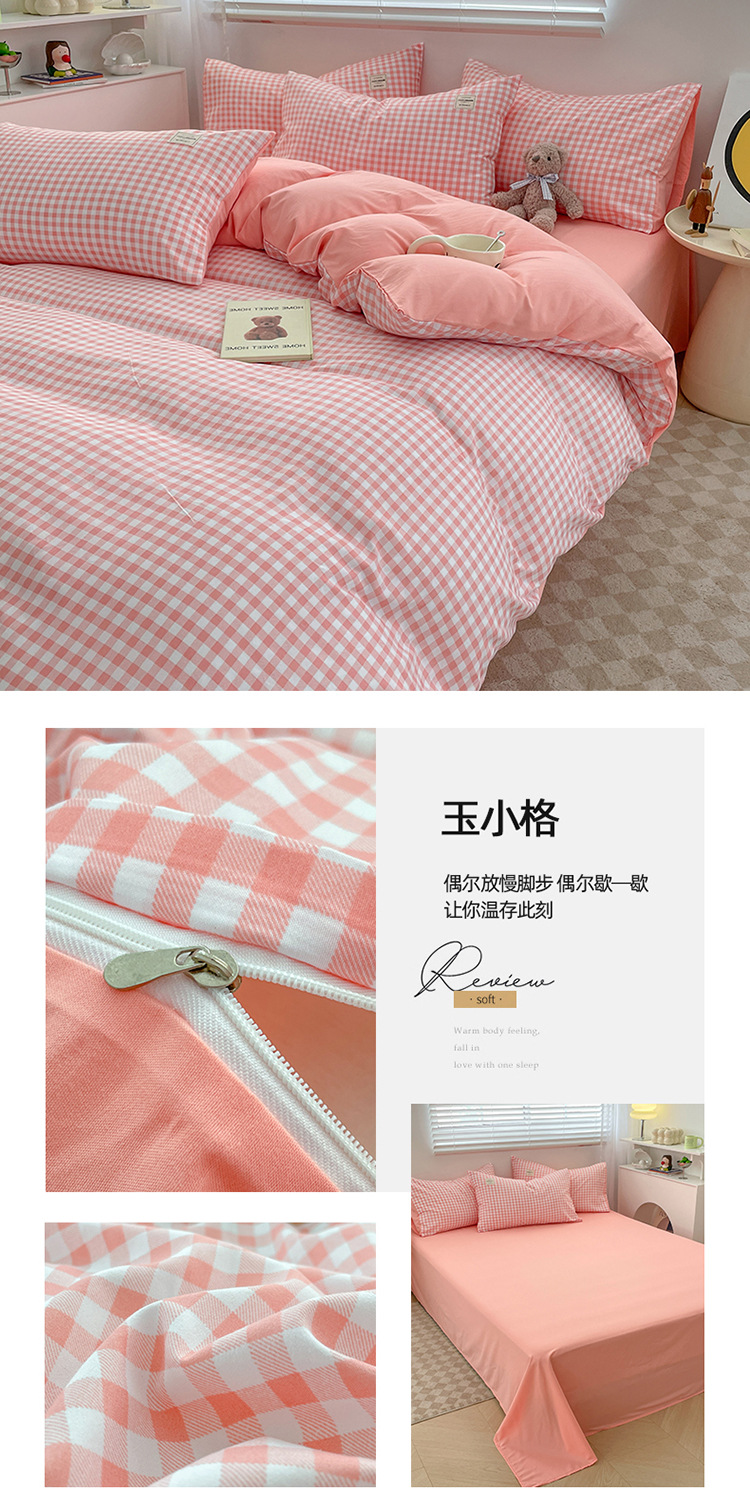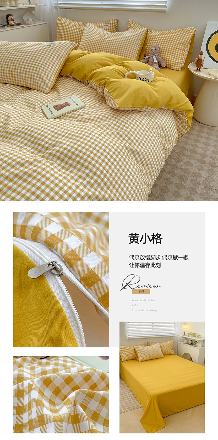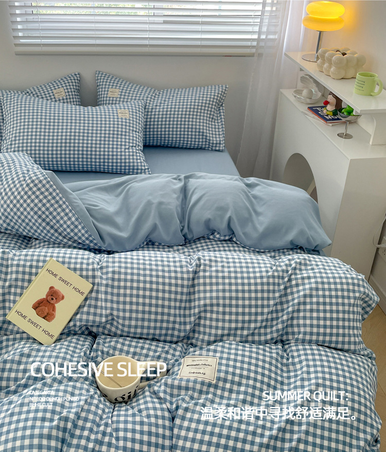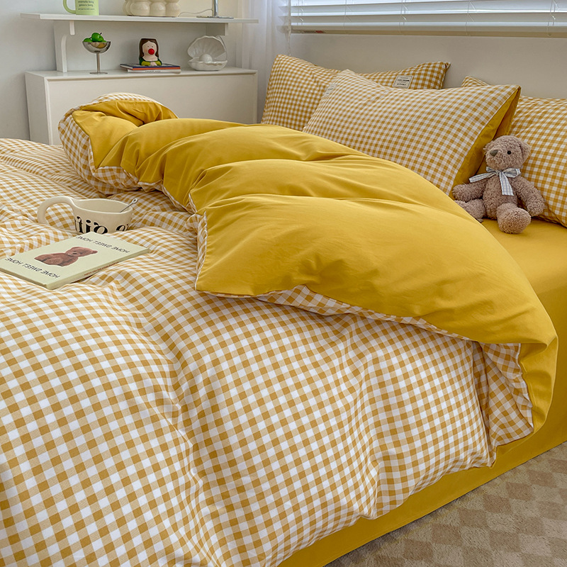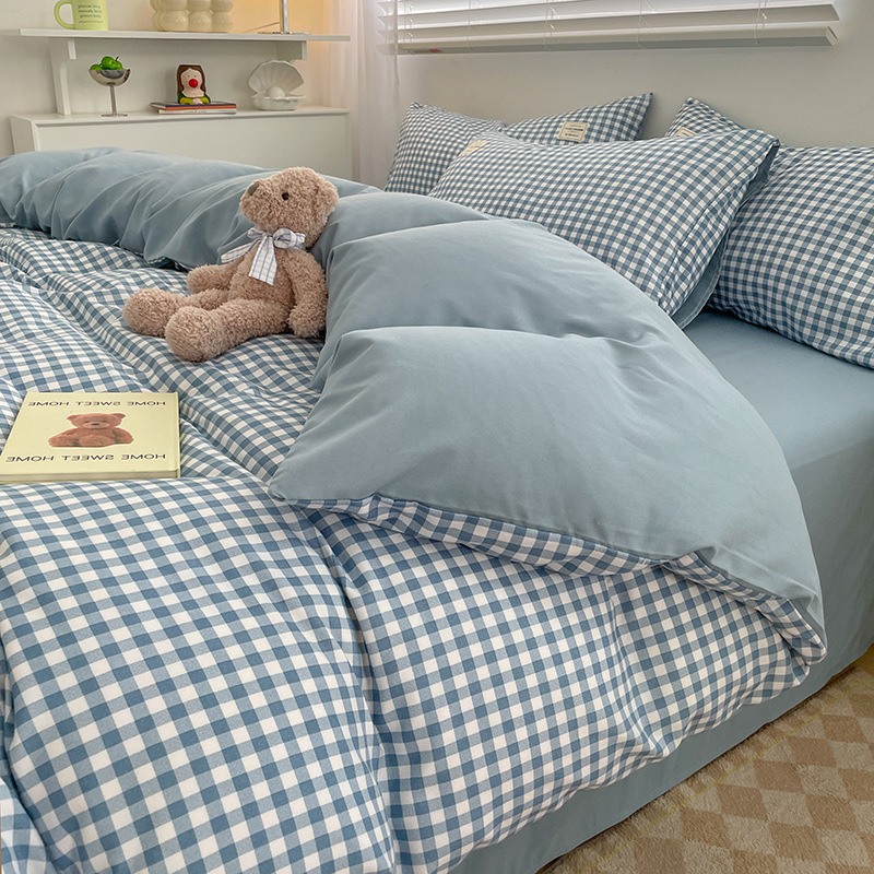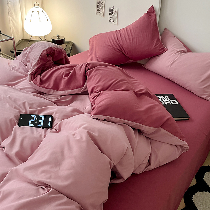 솔리드 컬러 퓨어 코튼 4 피스 세트 일본 스타일 간단한 세척 코튼 인 스타일 학생 3 피스 세트 모든면 싱글 퀼트 커버스토어 가기