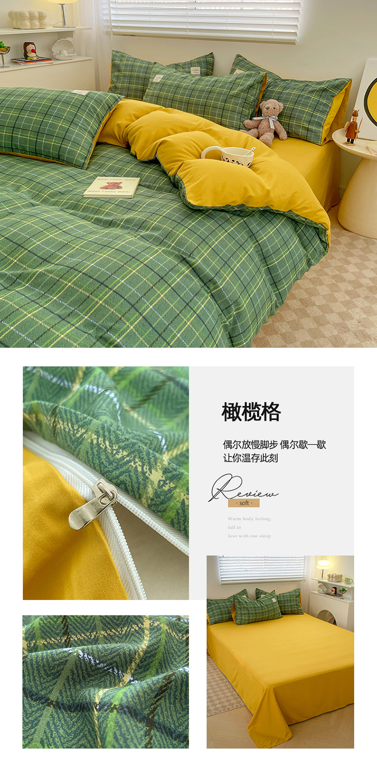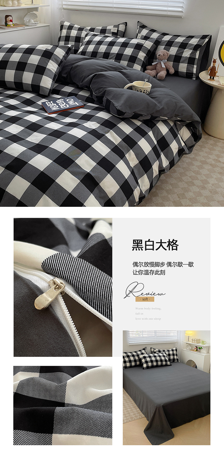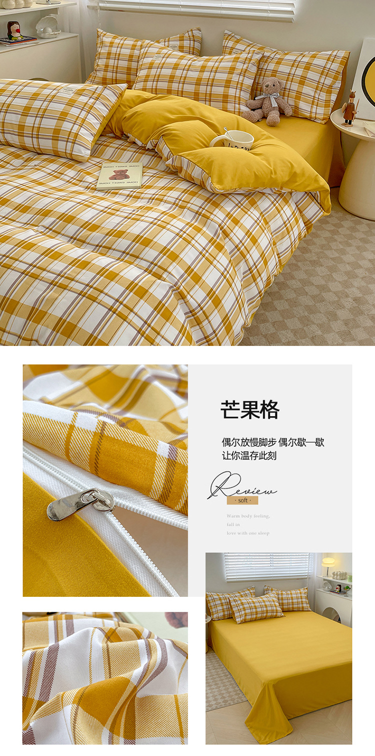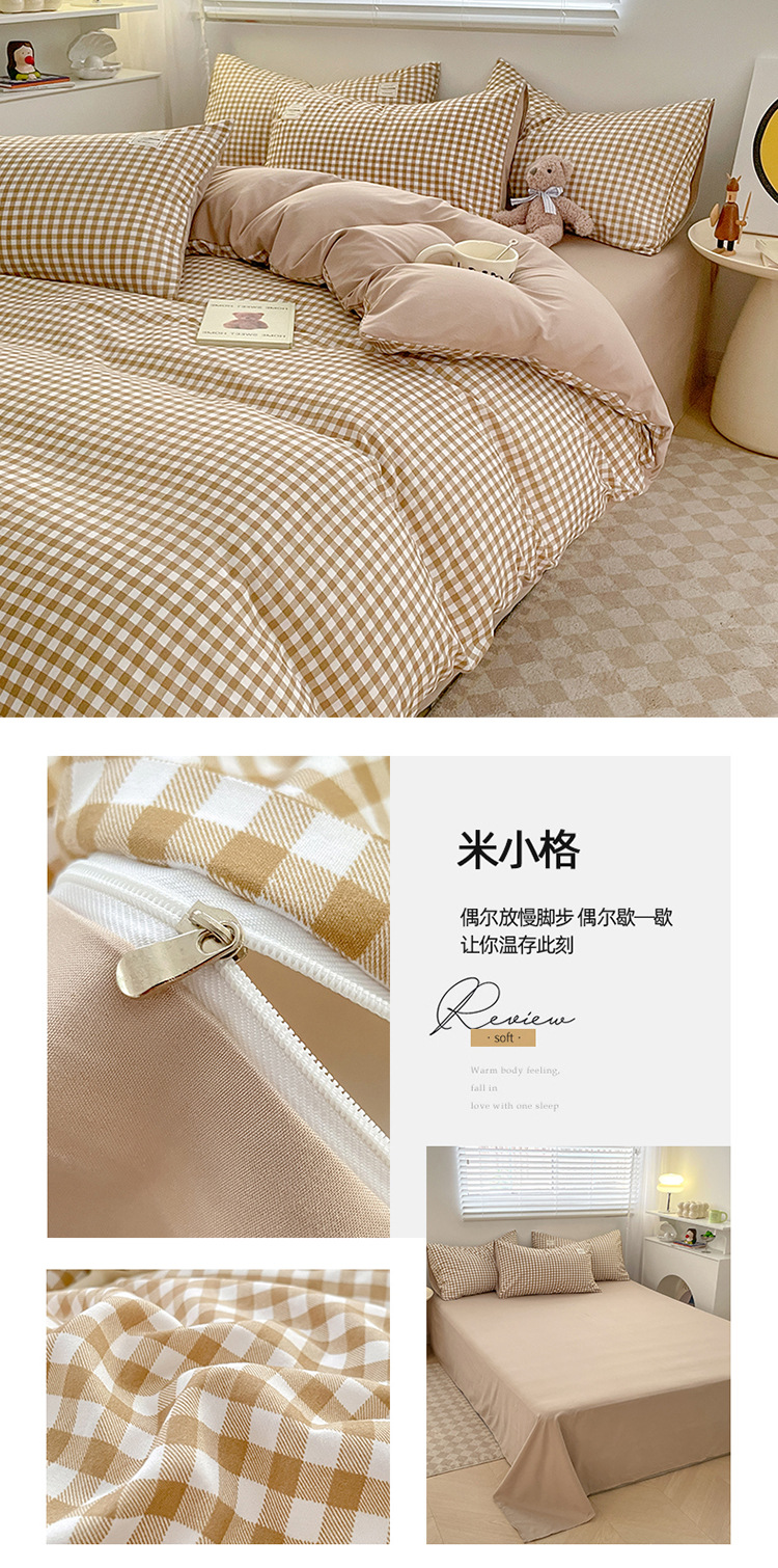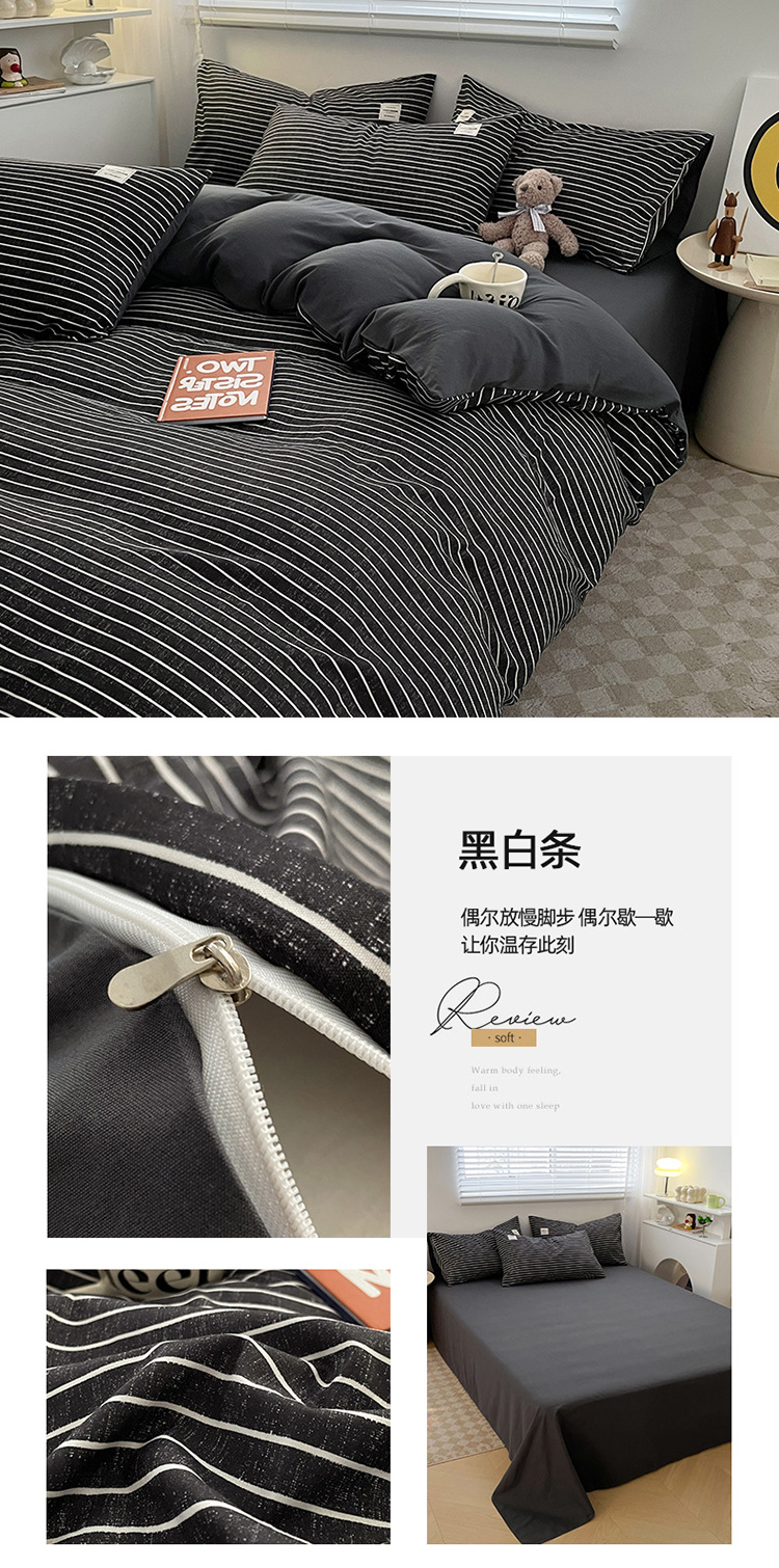 솔리드 컬러 퓨어 코튼 4 피스 세트 일본 스타일 간단한 세척 코튼 인 스타일 학생 3 피스 세트 모든면 싱글 퀼트 커버스토어 가기