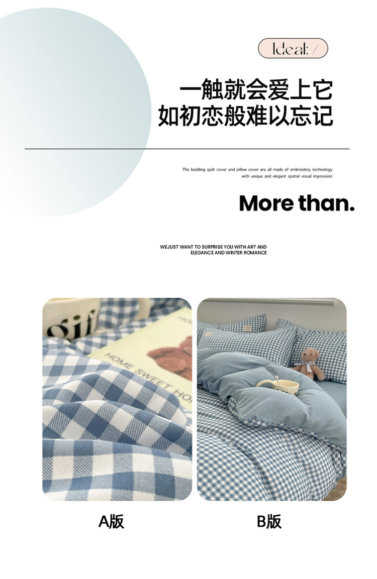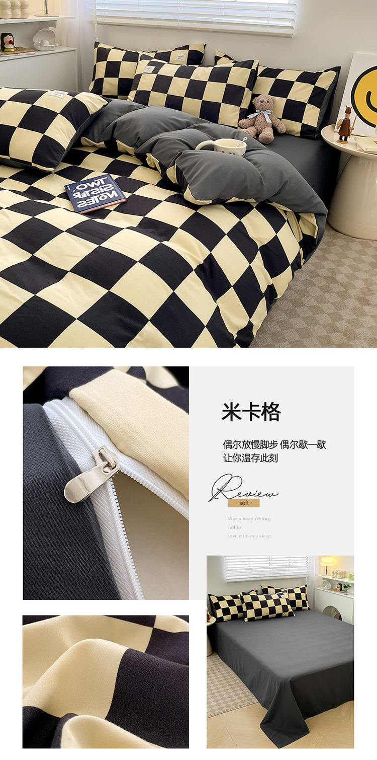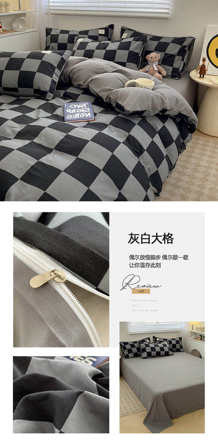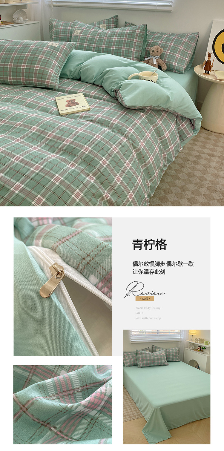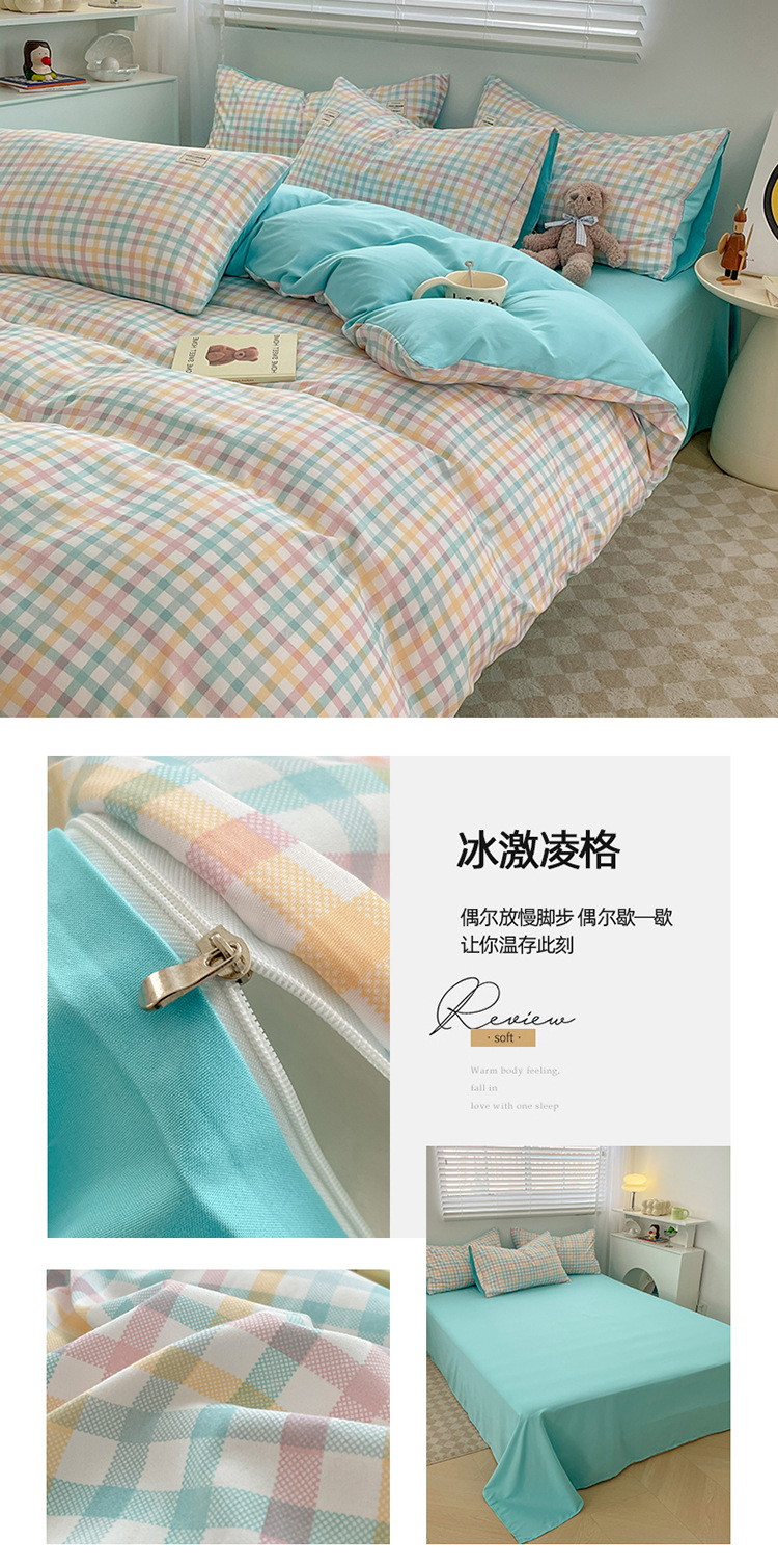 솔리드 컬러 퓨어 코튼 4 피스 세트 일본 스타일 간단한 세척 코튼 인 스타일 학생 3 피스 세트 모든면 싱글 퀼트 커버스토어 가기