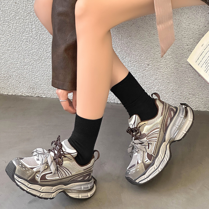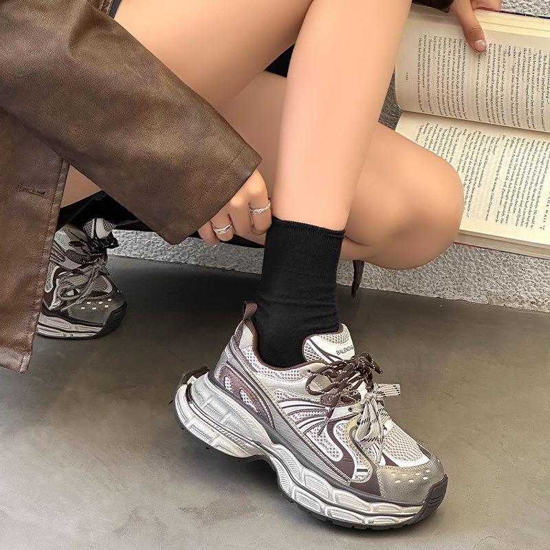 미끄럼 방지 증가 가죽 두꺼운 톱니 토르 신발 여성의 2024 가을 새로운 통기성 올 매치 피트 작은 캐주얼 운동화스토어 가기