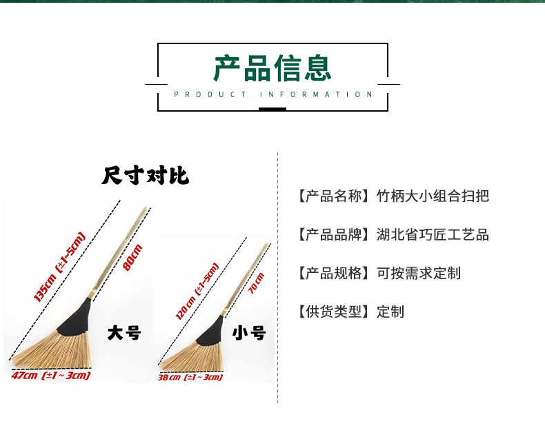 대나무 손잡이가 있는 대형 및 소형 조합형 빗자루, 대나무 섬유 빗자루, 정원 및 가정용 눈 청소용, 특허받은 디자인의 대나무 가정용 빗자루