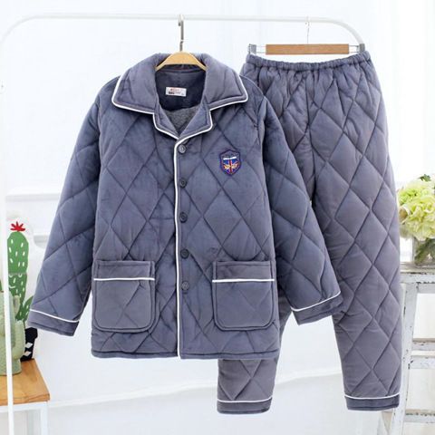 겨울 3 층 퀼트 파자마 남자 기모 두꺼운 느슨한 플러스 사이즈 조끼 중년 및 노인을위한 중장 플래 넬 파자마스토어 가기