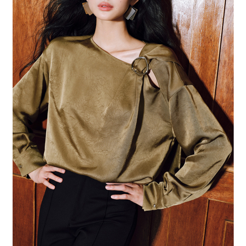 | 고급 품질의 양면 새틴 주름 | 손으로 반죽하는 기계 비스듬한 어깨 리본 금속 루프 셔츠스토어 가기