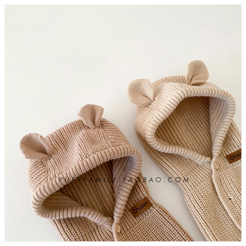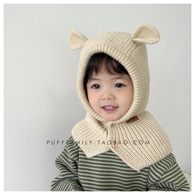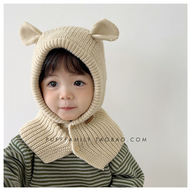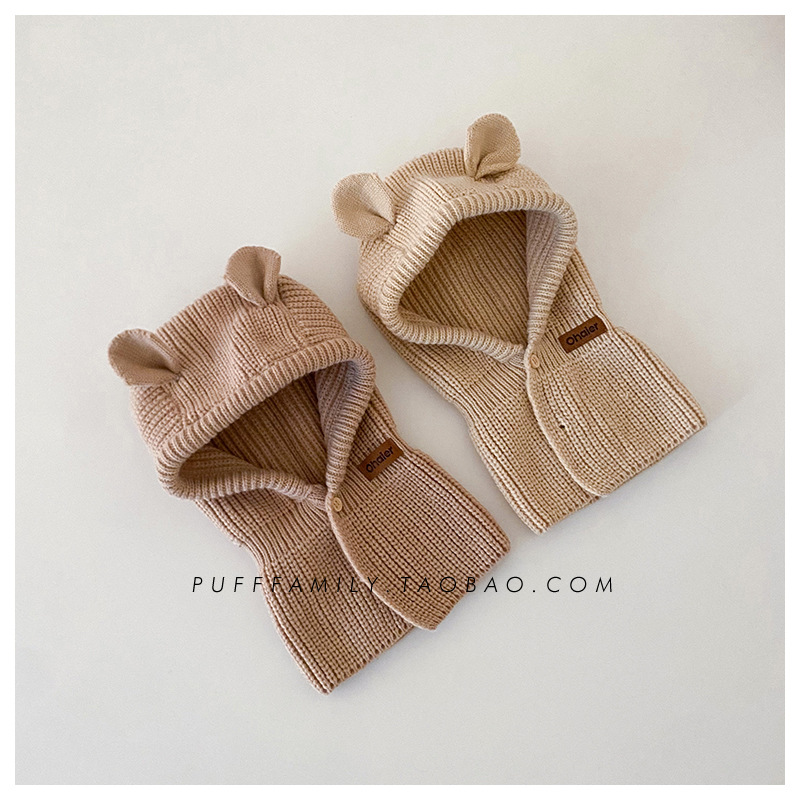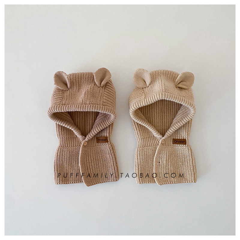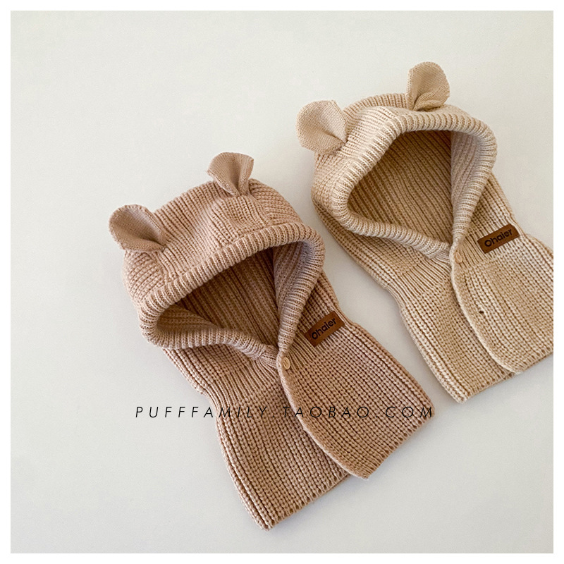 어린이 모자 스카프 원피스 슈퍼 귀여운 귀여운 곰 귀 어깨 모자 가을과 겨울 한국 스타일 따뜻한 니트 모자 패션스토어 가기