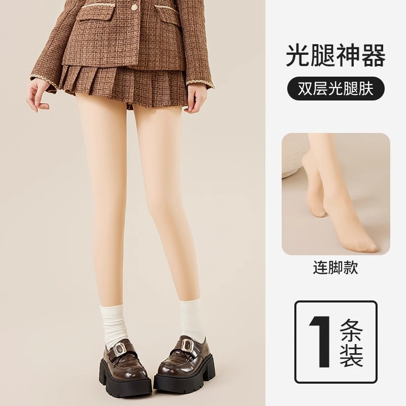 오렌지 더블 레이어 교체 가능한 베어 다리 아티팩트 여성 가을 및 겨울 알몸 기모 팬티 스타킹베이스 양말 찾는 Ono Mo