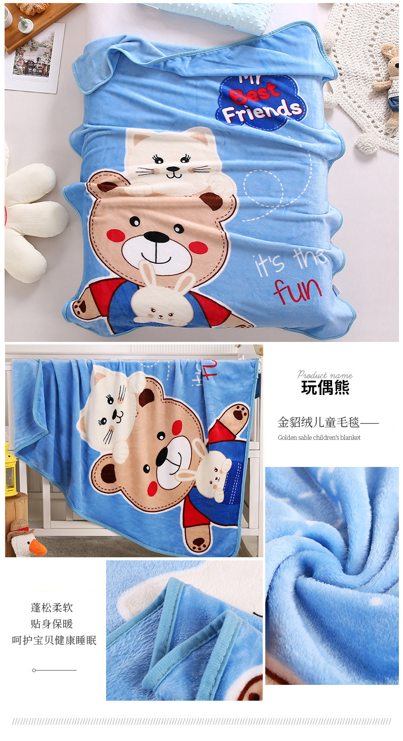 跨境儿童毛毯午睡盖毯单层法兰绒小毯子空调毯珊瑚绒卡通婴儿毯