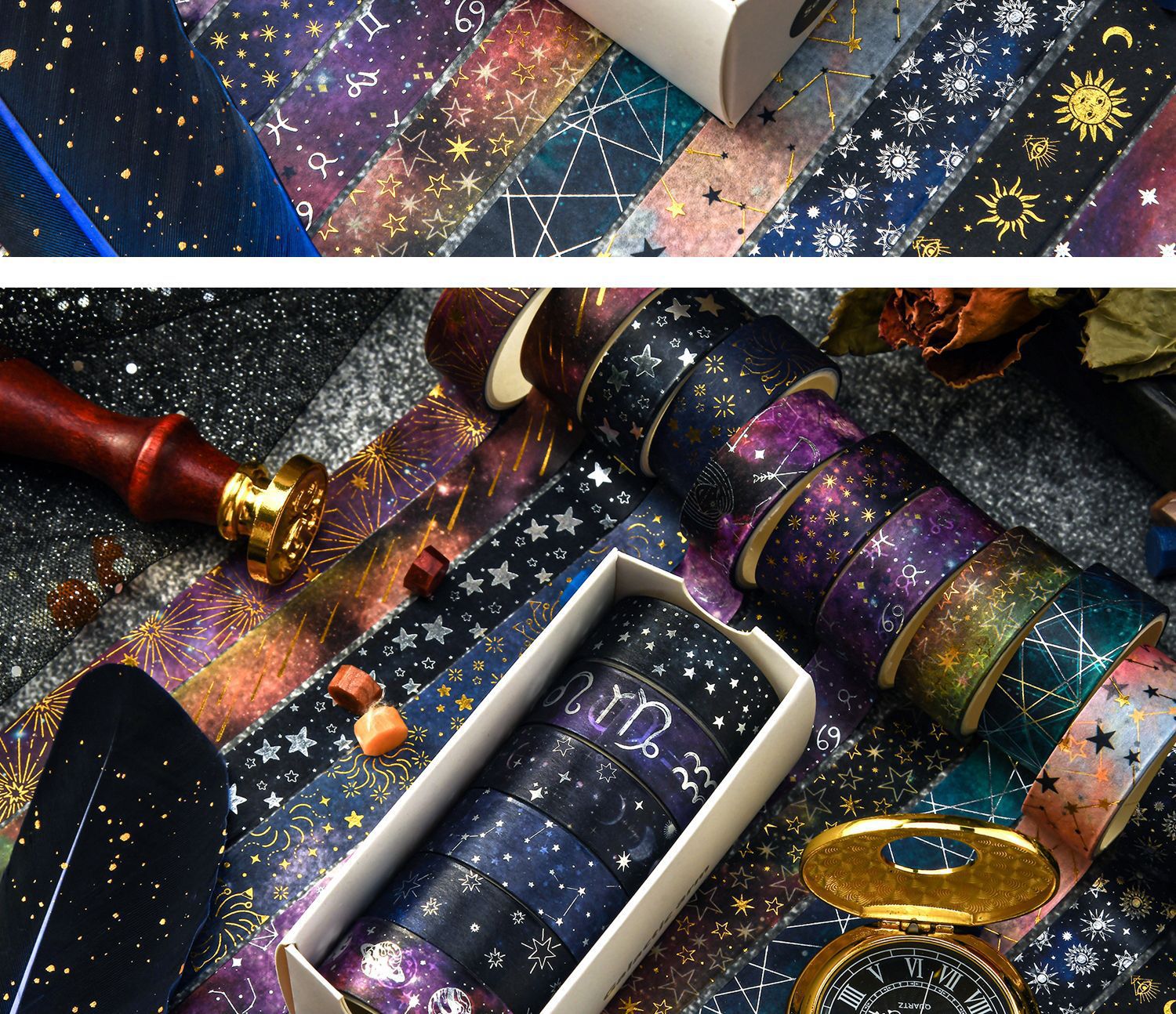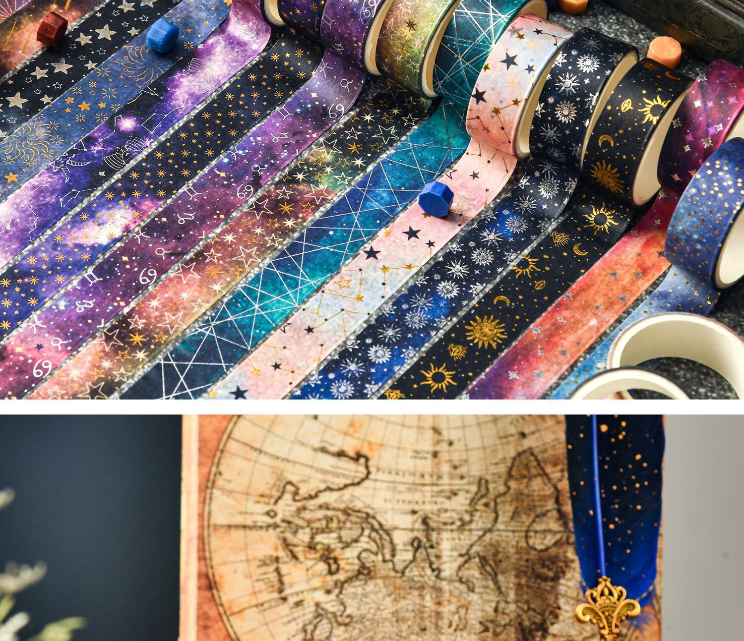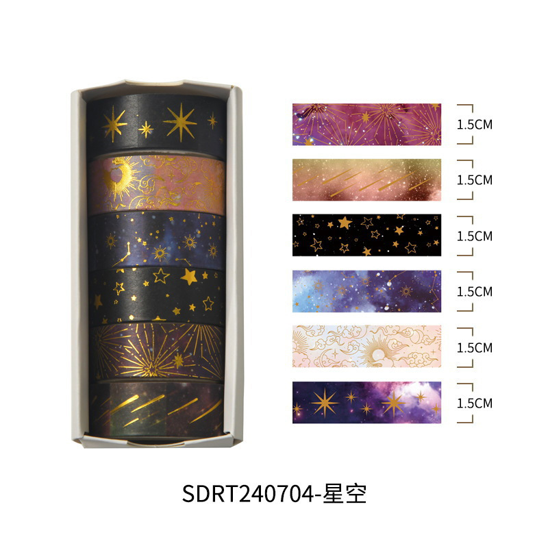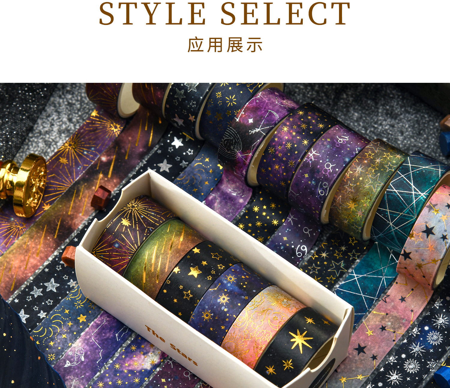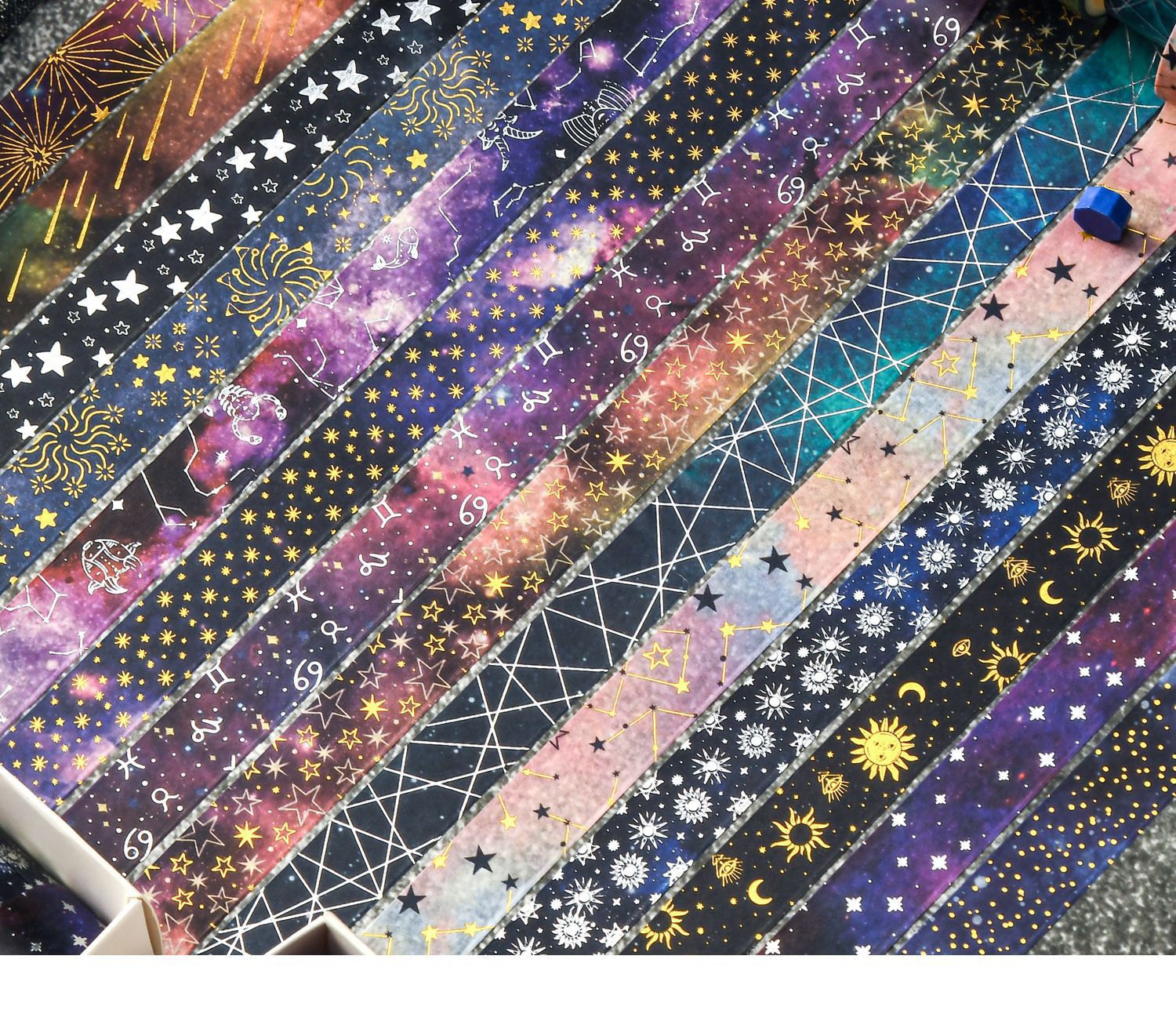 별이 빛나는 하늘 조각과 종이 테이프 신비한 별 달 해바라기 DIY 수제 스티커 인기있는 불꽃 테이프스토어 가기