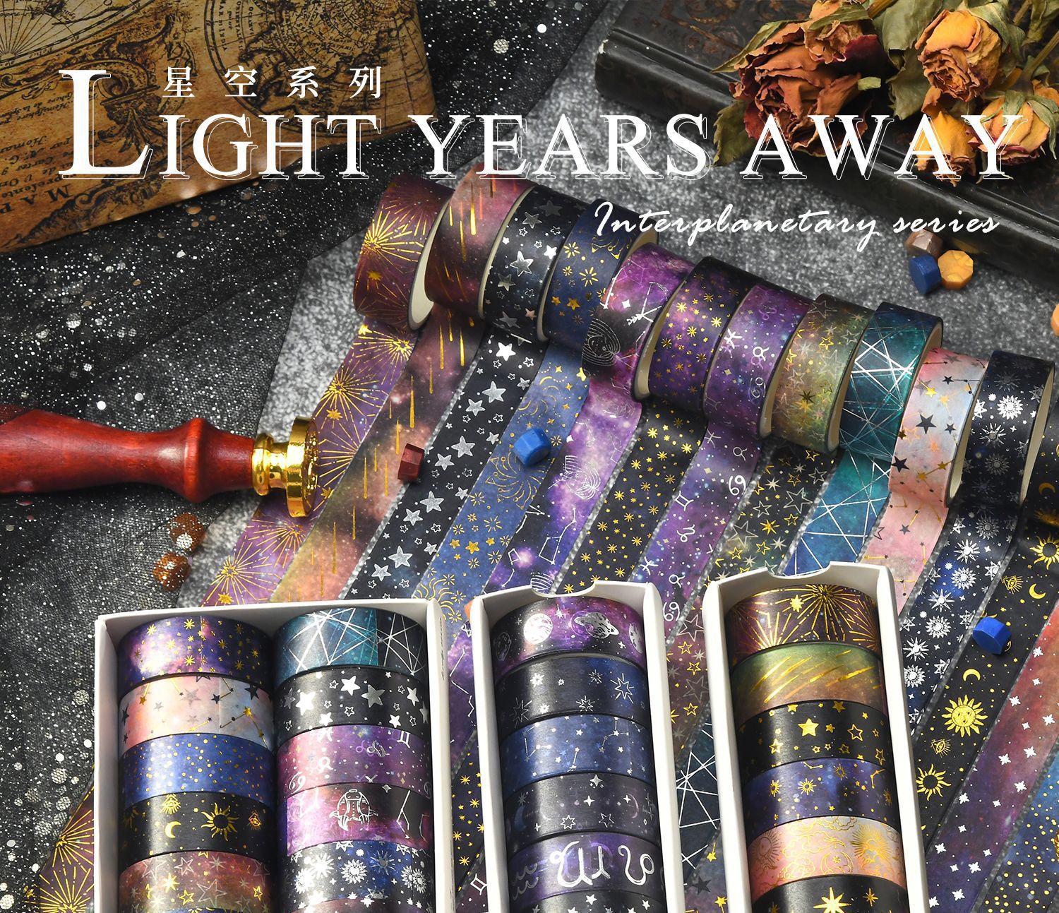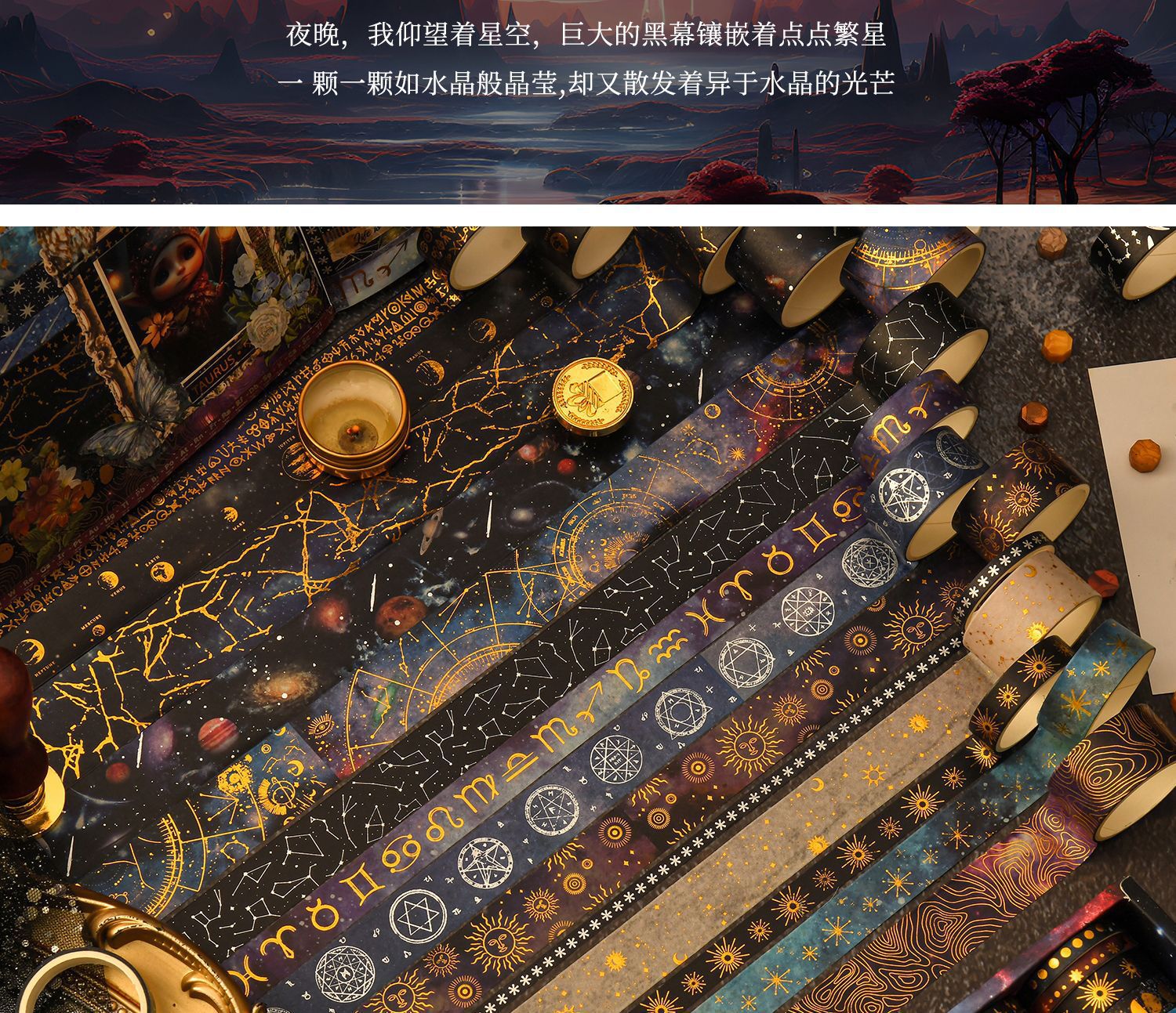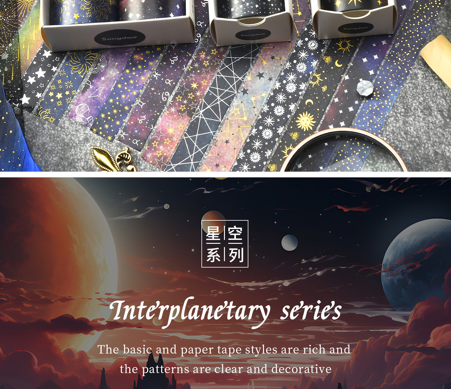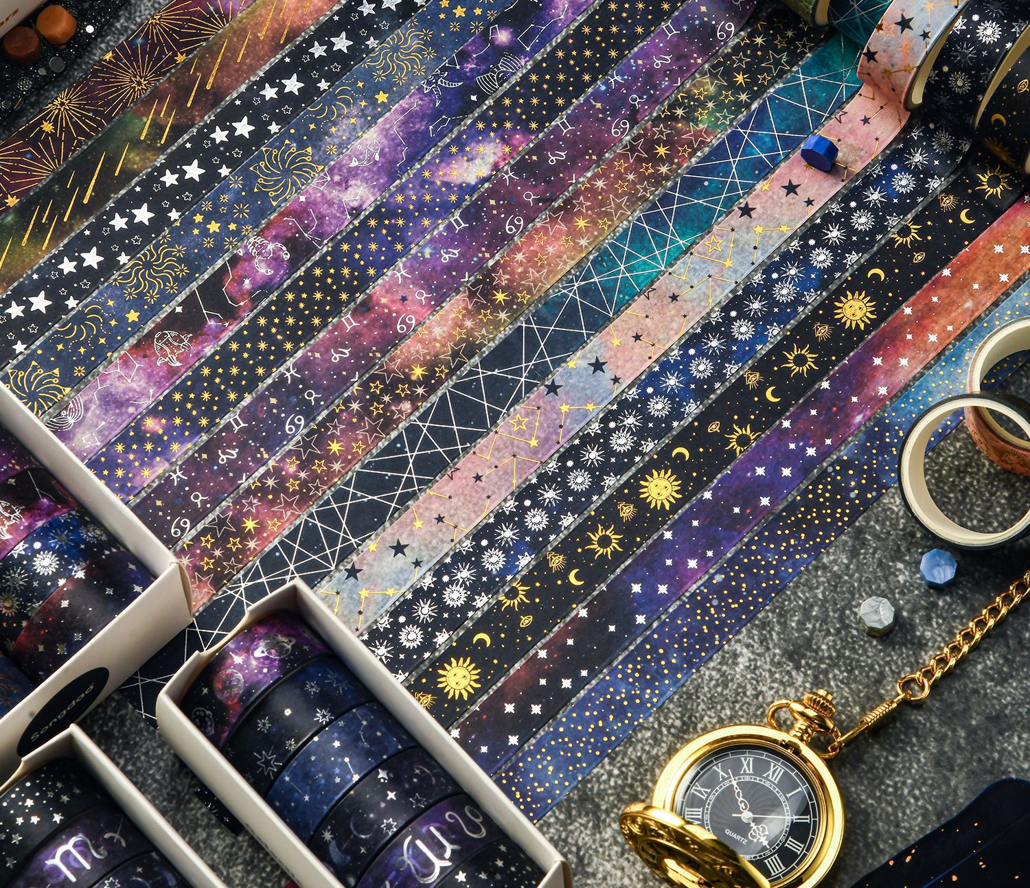 별이 빛나는 하늘 조각과 종이 테이프 신비한 별 달 해바라기 DIY 수제 스티커 인기있는 불꽃 테이프스토어 가기