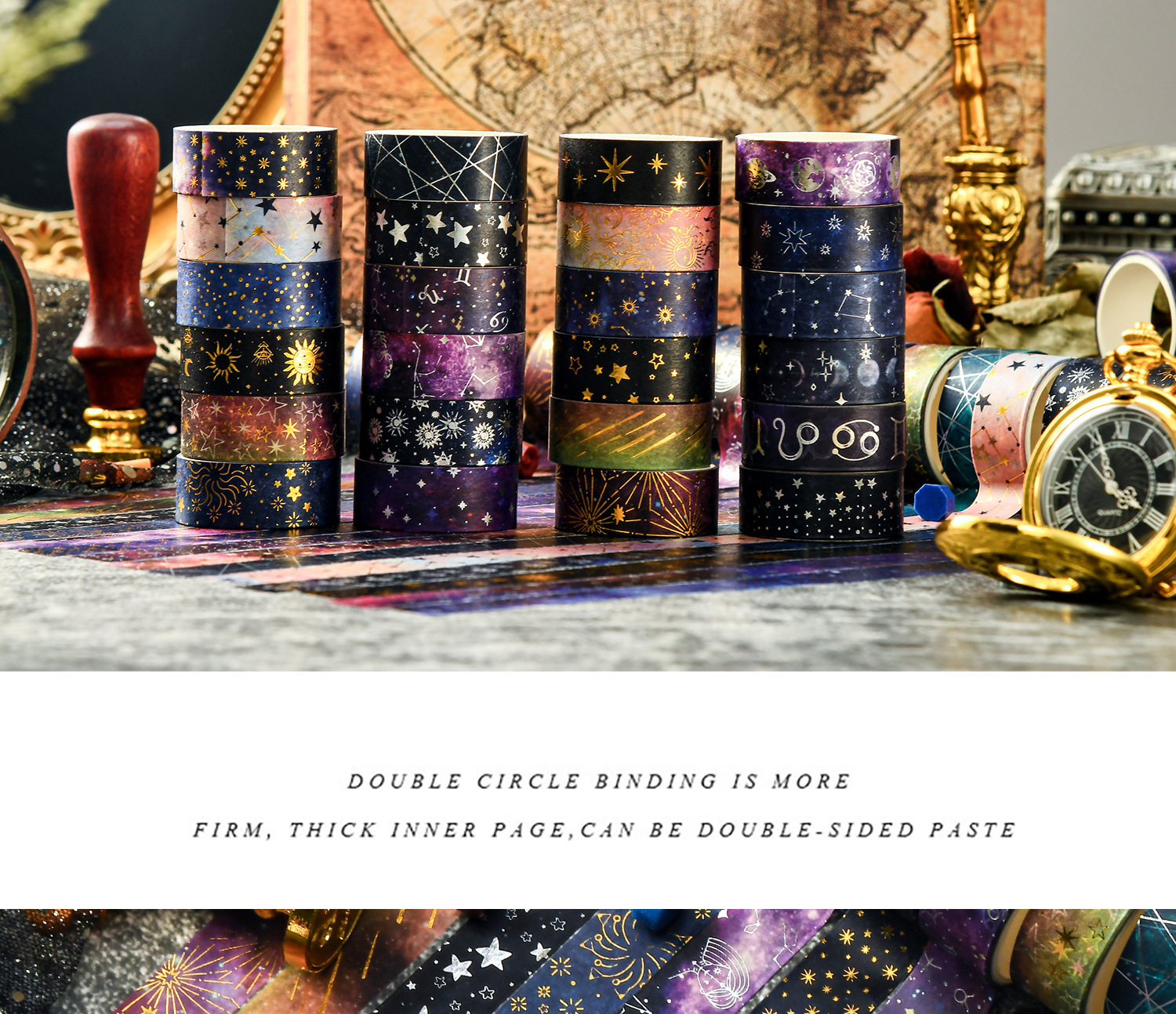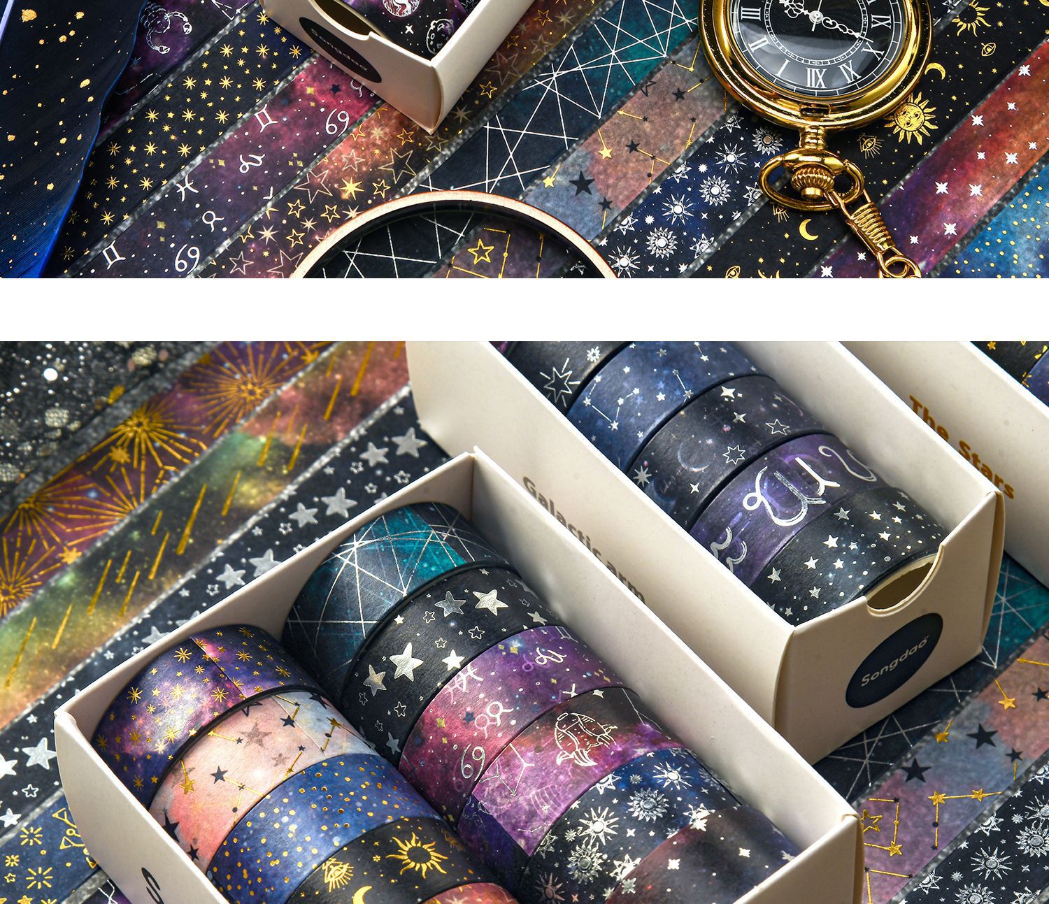 별이 빛나는 하늘 조각과 종이 테이프 신비한 별 달 해바라기 DIY 수제 스티커 인기있는 불꽃 테이프
