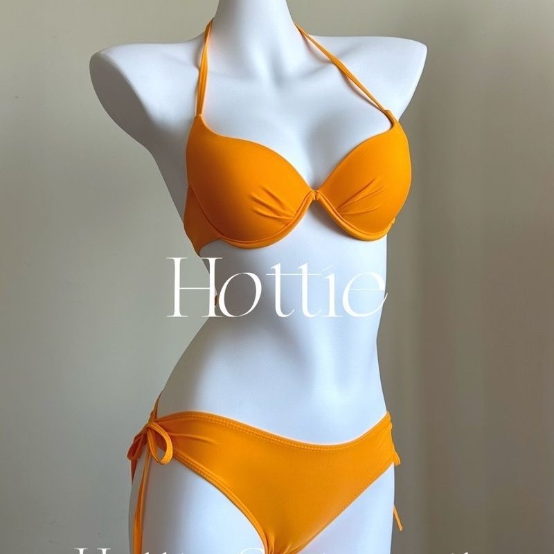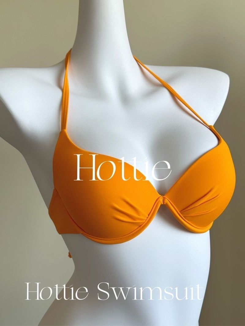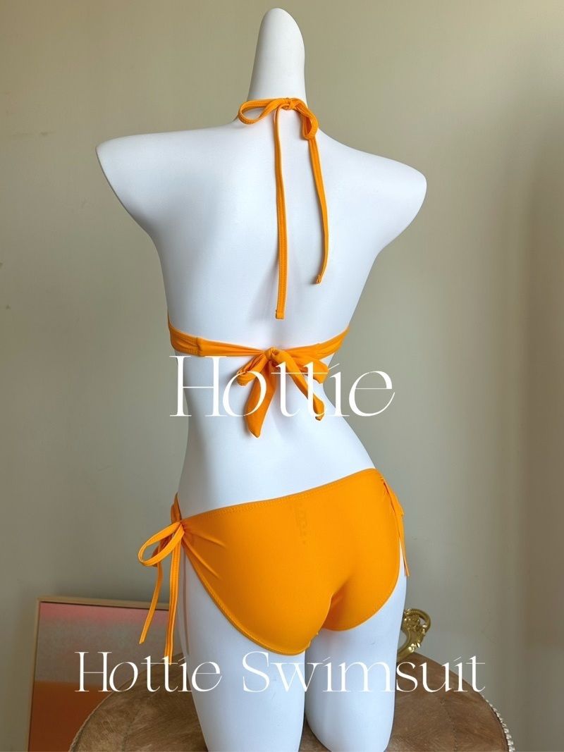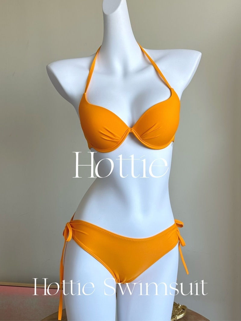 작은 가슴 강철 브래킷 가슴 패드 섹시 비키니 오렌지 소녀 솔리드 컬러 휴가 슬리밍 백리스 온천 수영복 여성 수집스토어 가기