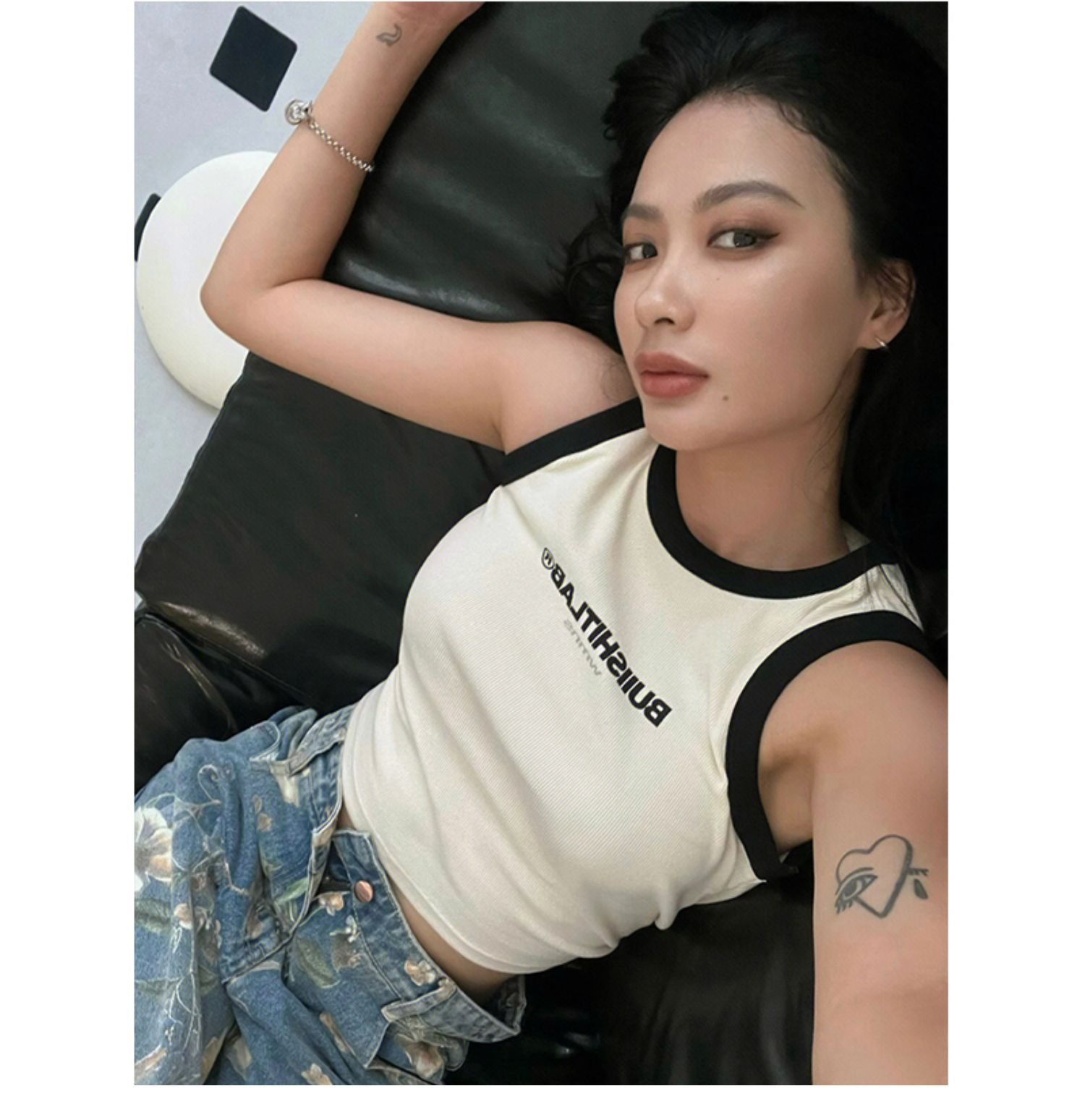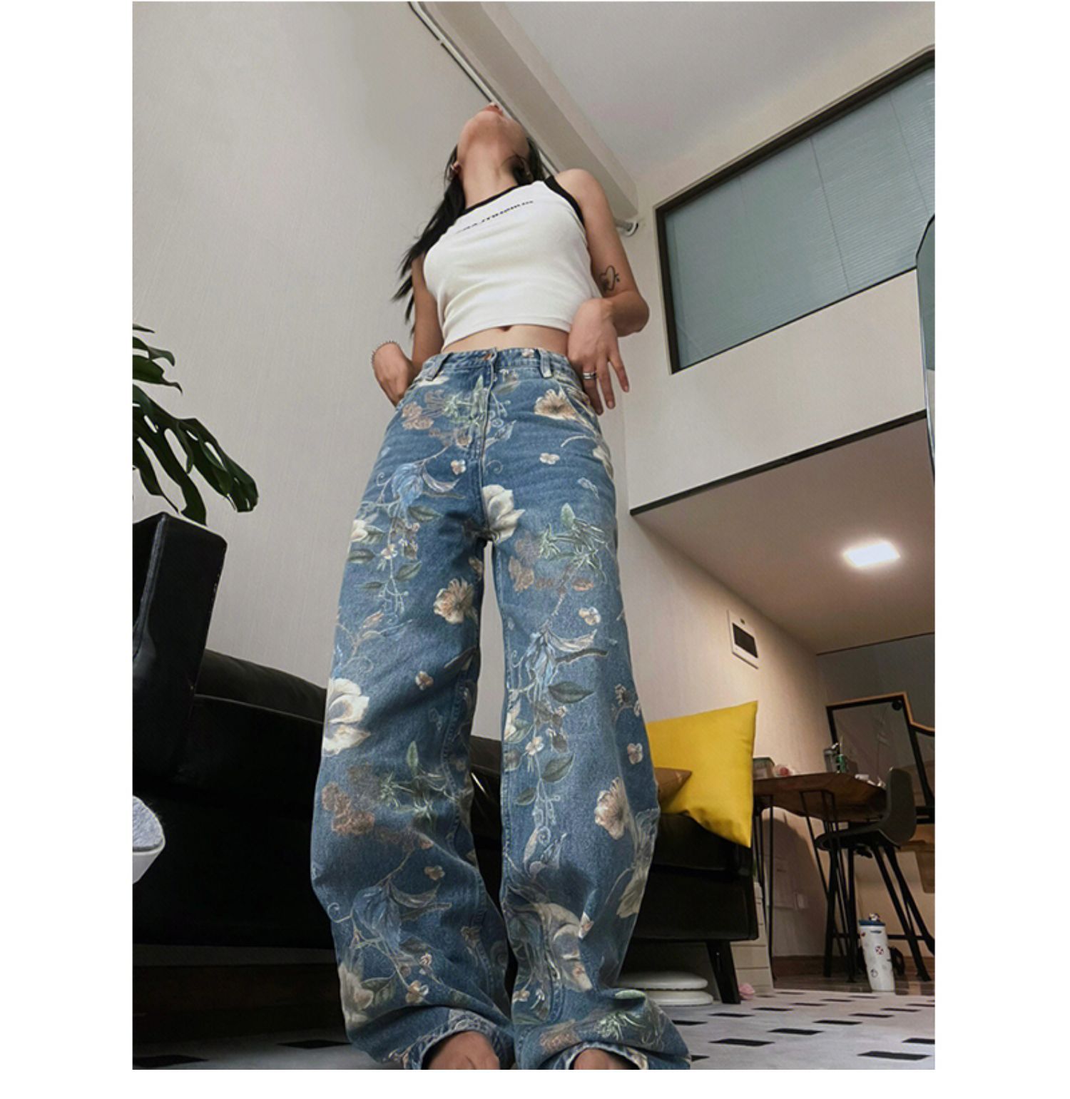 빈티지 프린트 청바지 여성의 트렌디 한 느슨한 넓은 다리 틈새 트랙 2024 년 봄과 가을 슬림 느슨한 넓은 다리 바지스토어 가기